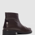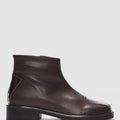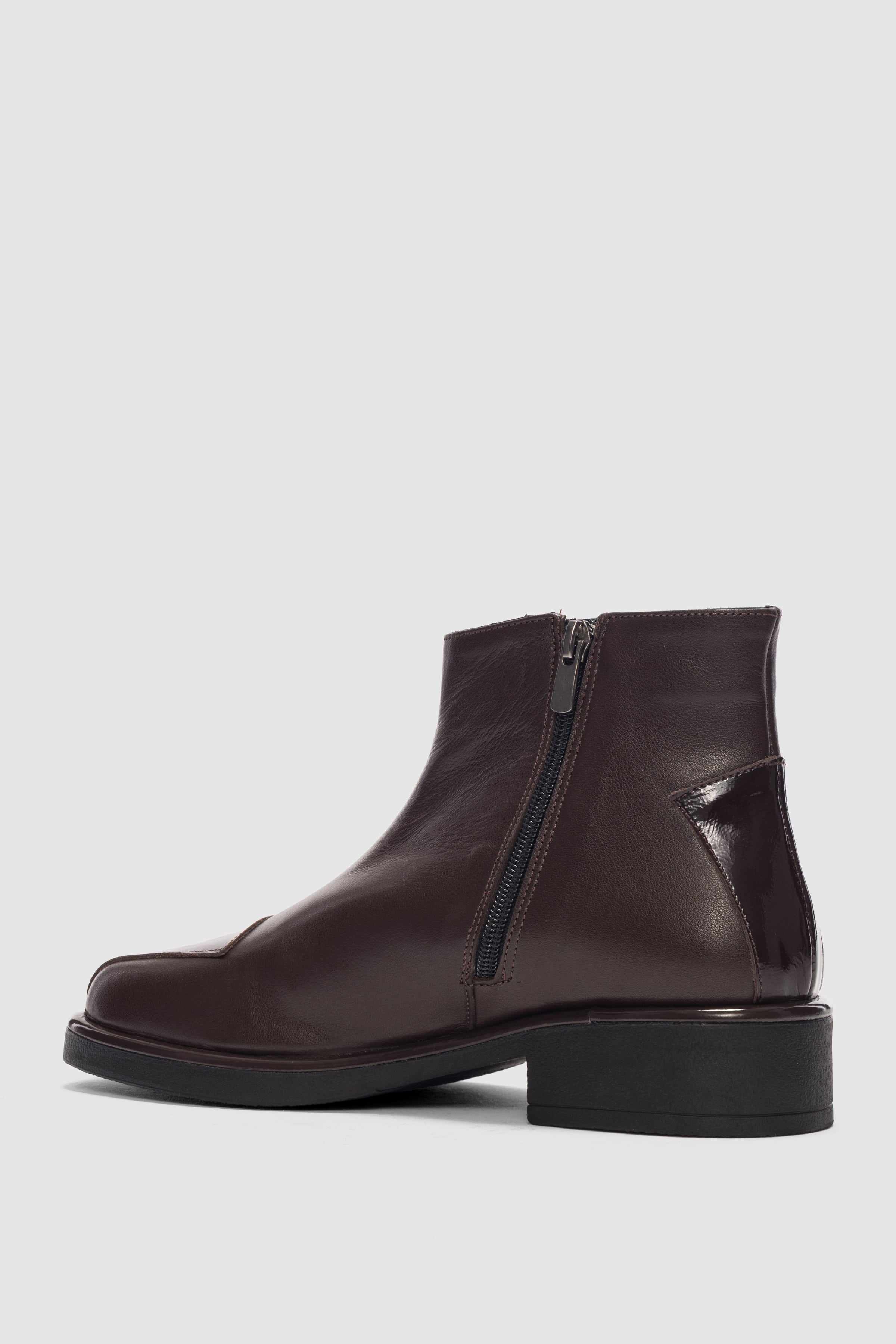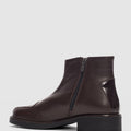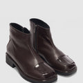 Aureine Hakiki Deri Yandan Fermuarlı Küt Burun Kadın Bot- KAHVERENGİ