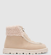 Bruve Ön Fermuar Detaylı Kürklü Hakiki Deri Süet Kadın Bot