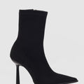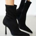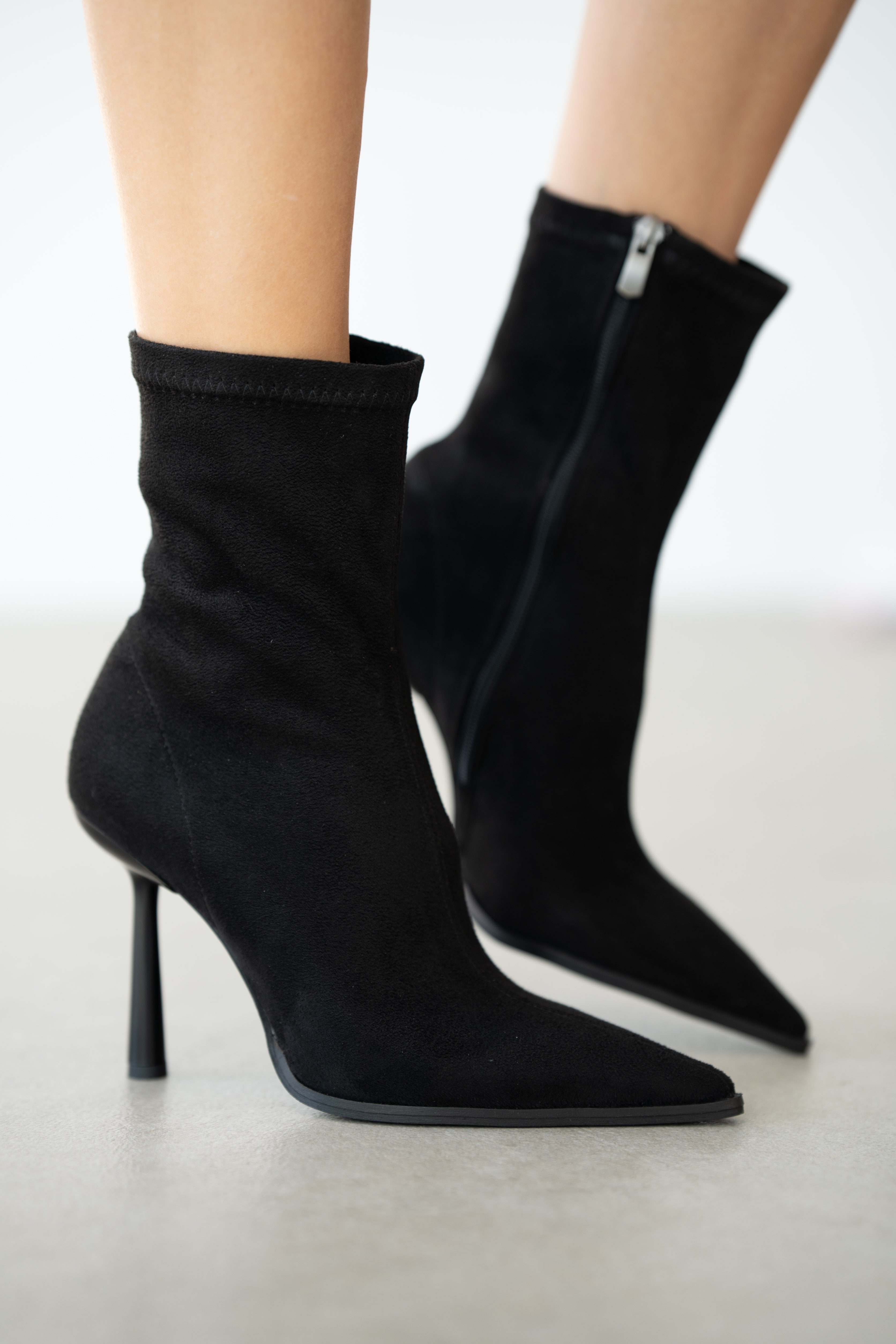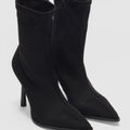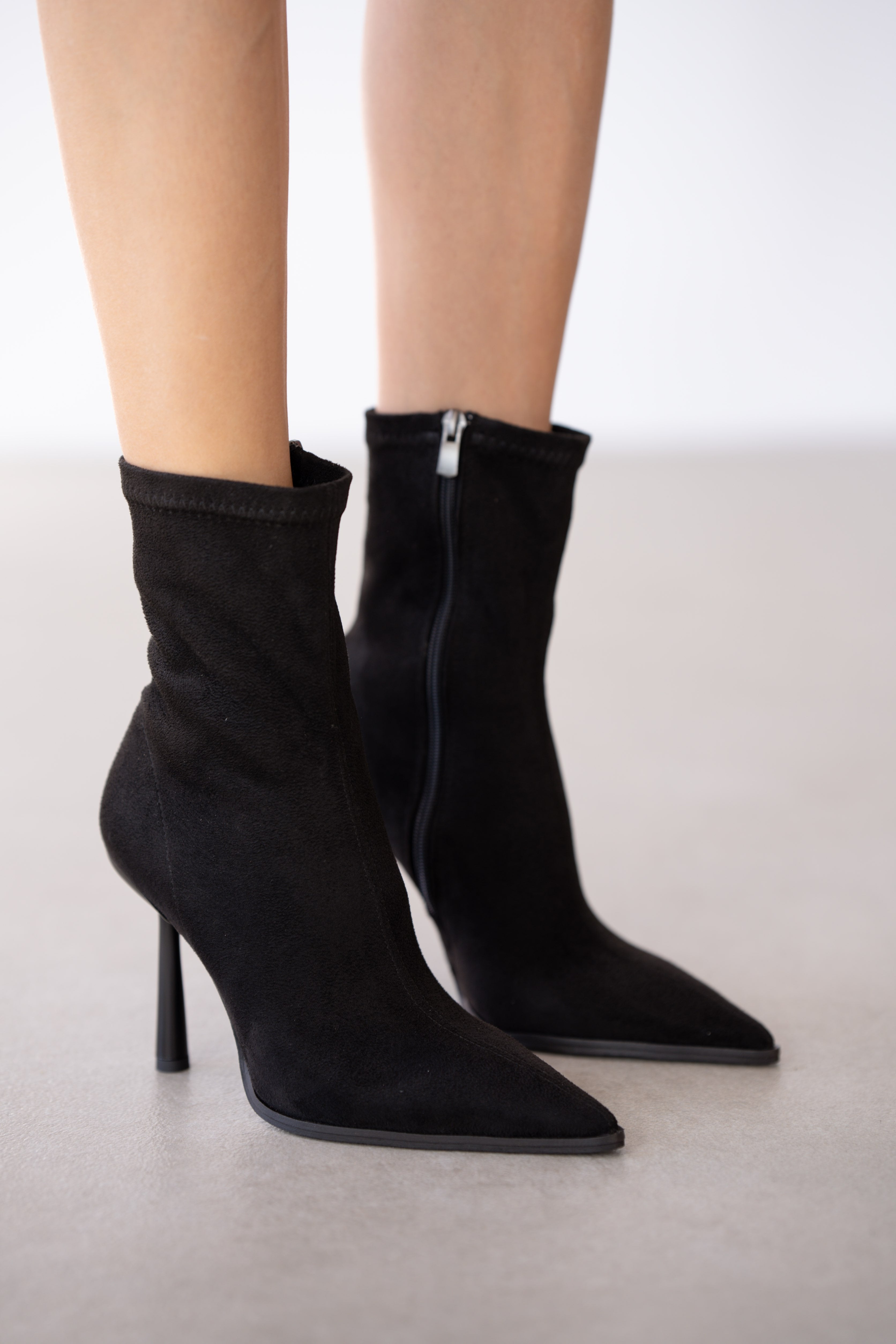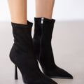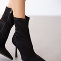 Loran İnce Topuklu Sivri Burun Streç Kadın Bot- SİYAH SÜET