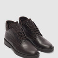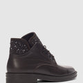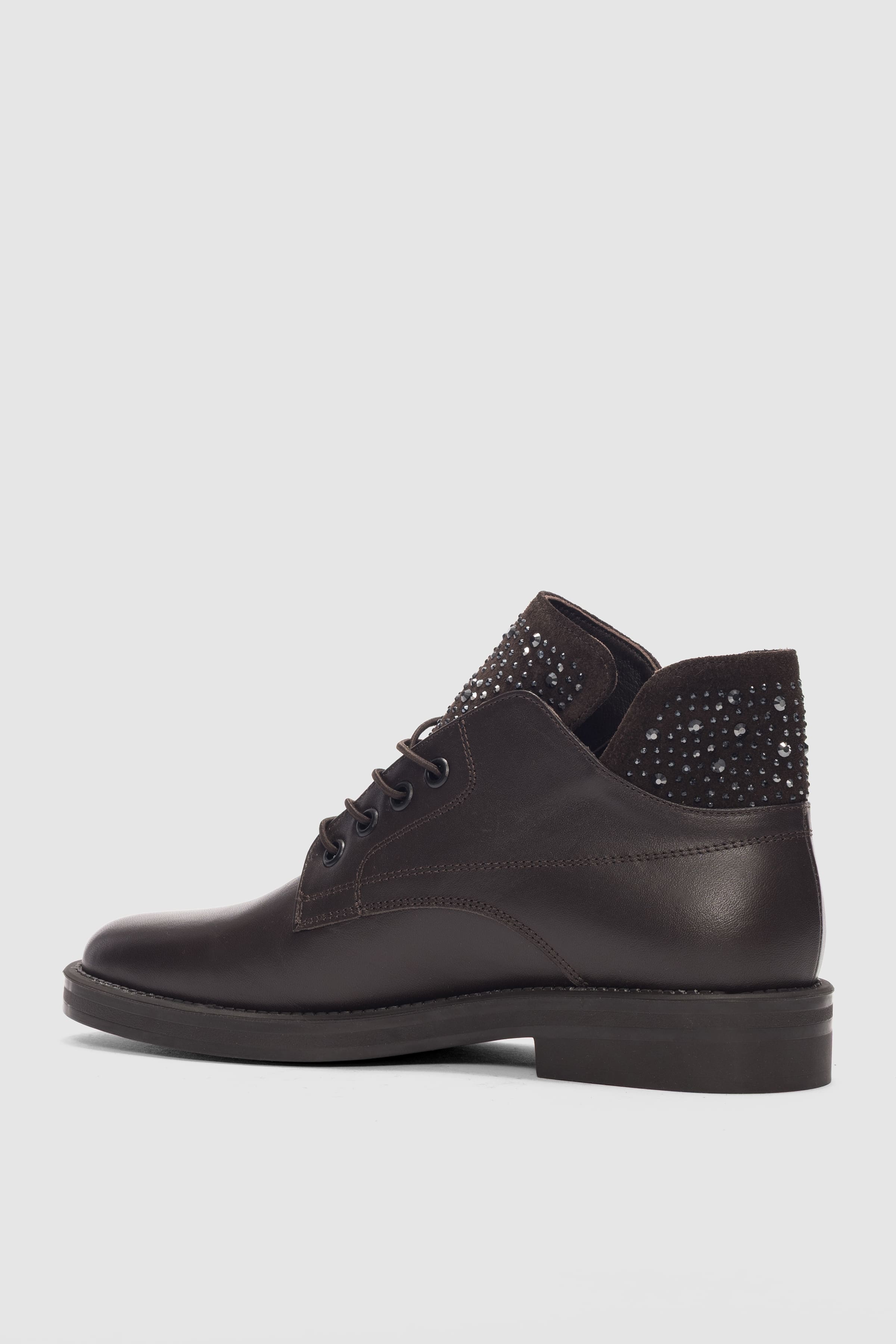 Navin Hakiki Deri Taş Detaylı Bağcıklı Kadın Ayakkabı- ACI KAHVE