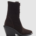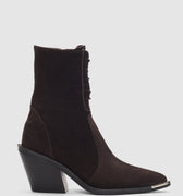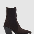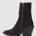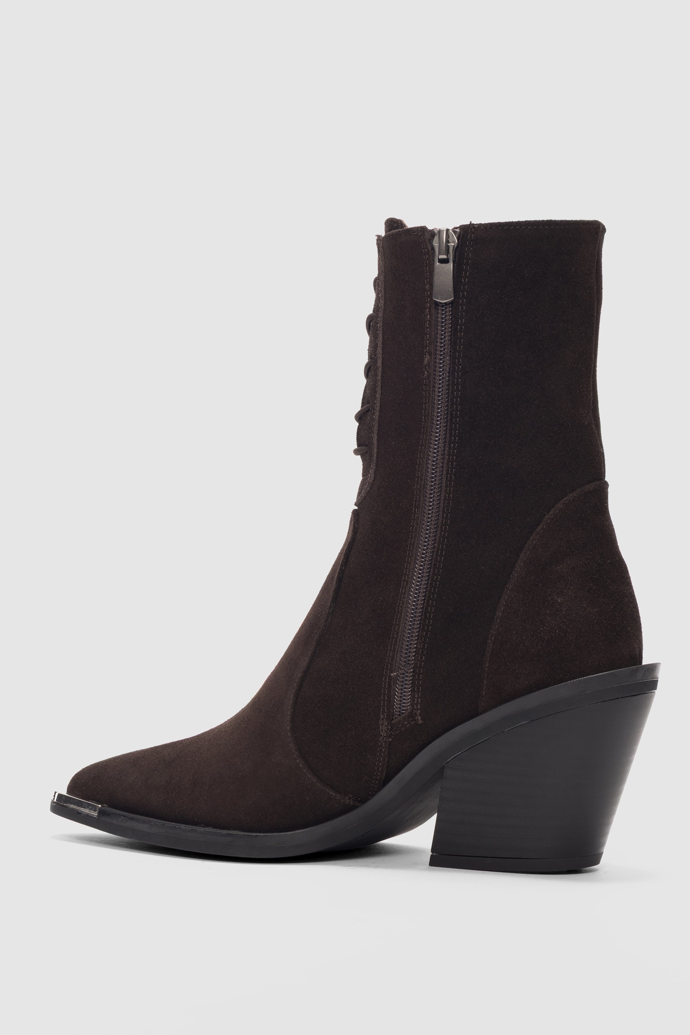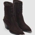 Novira Hakiki Deri Bağcıklı ve Yandan Fermuarlı Sivri Burun Kadın Bot- KAHVE SÜET