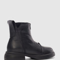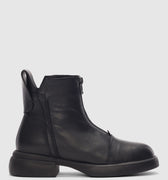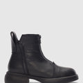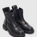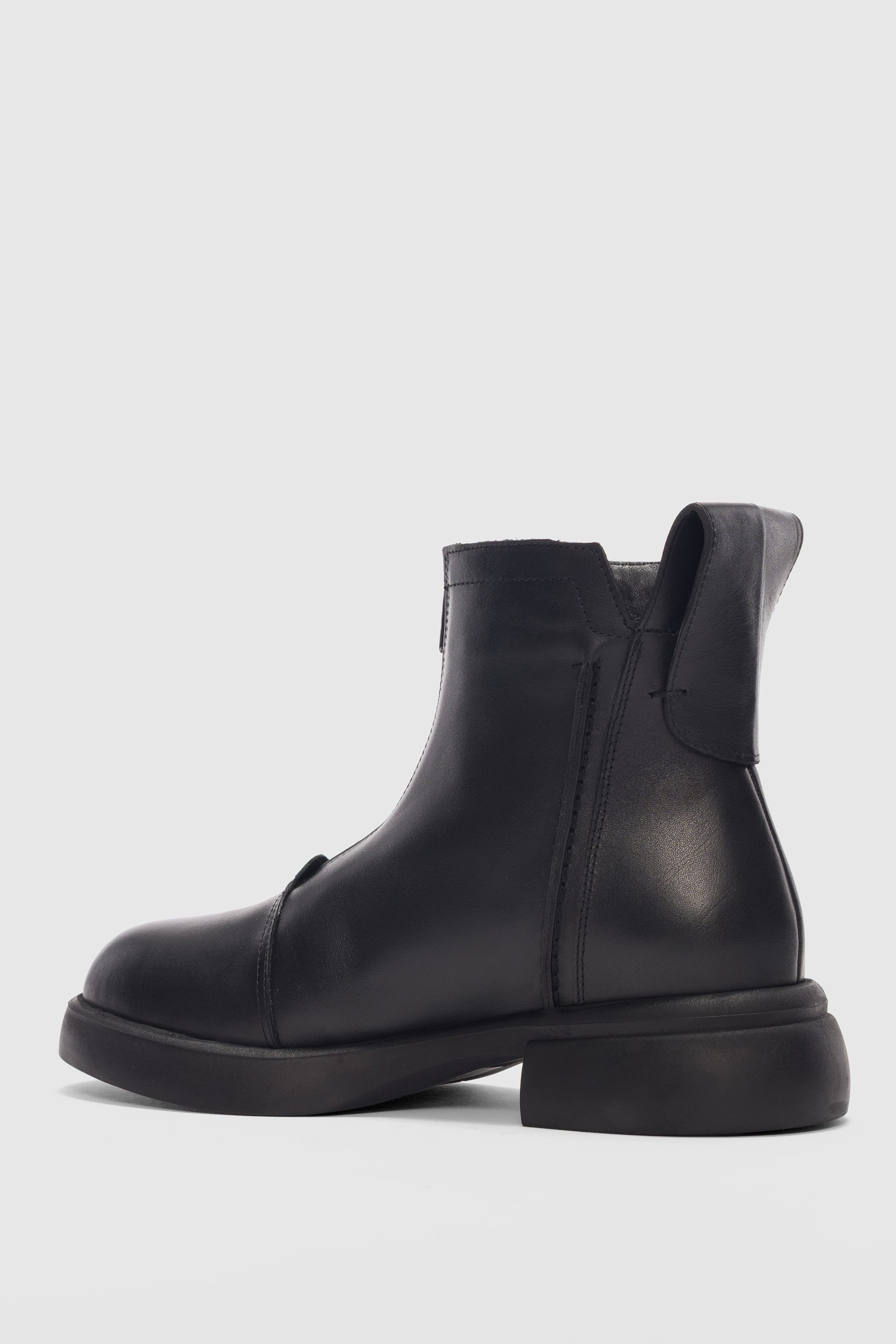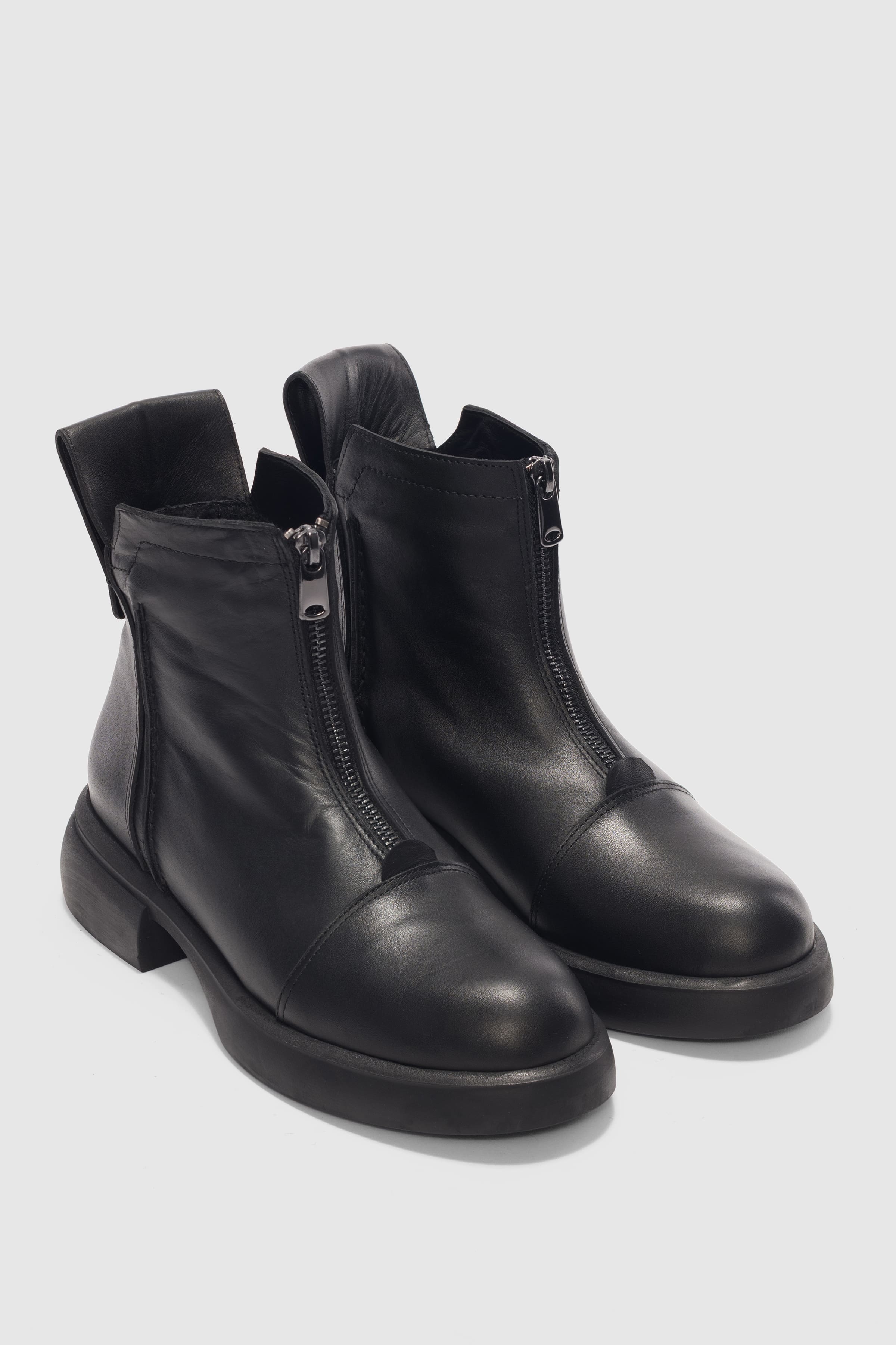 Belos Hakiki Deri Bağcık Detaylı Yandan Fermuarlı Kadın Bot- SİYAH