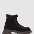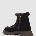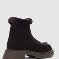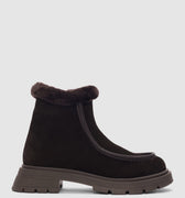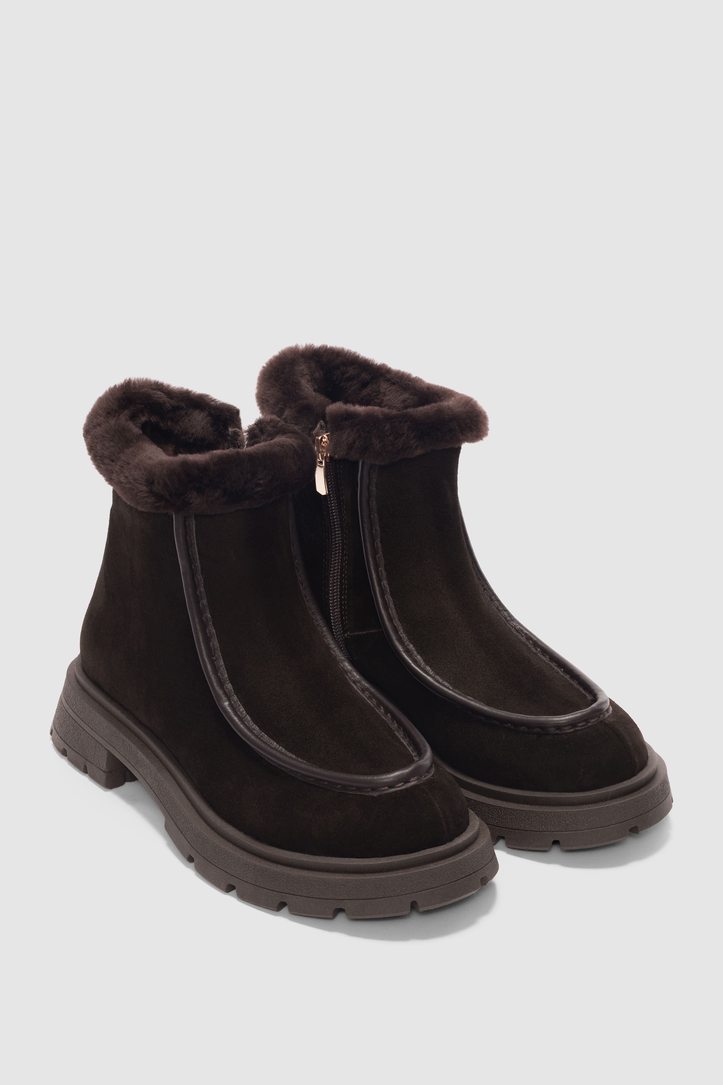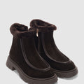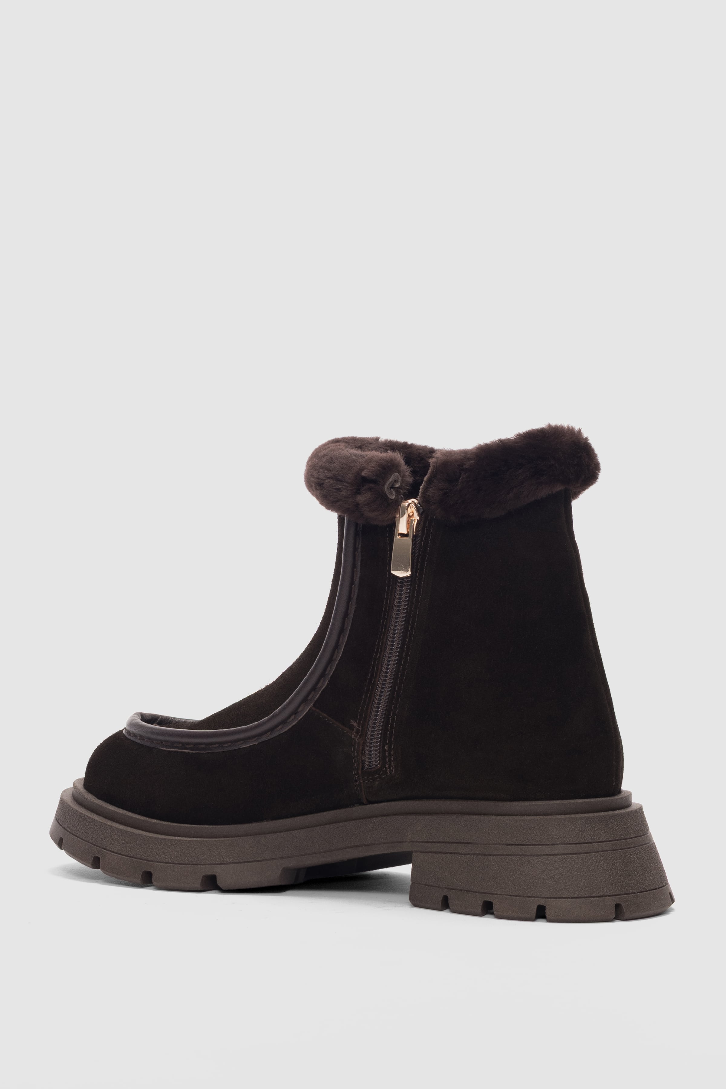 Corine Hakiki Deri Kürk Detaylı Yandan Fermuarlı Kadın Bot- KAHVE SÜET