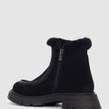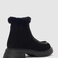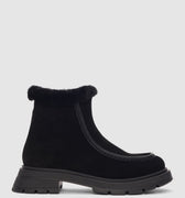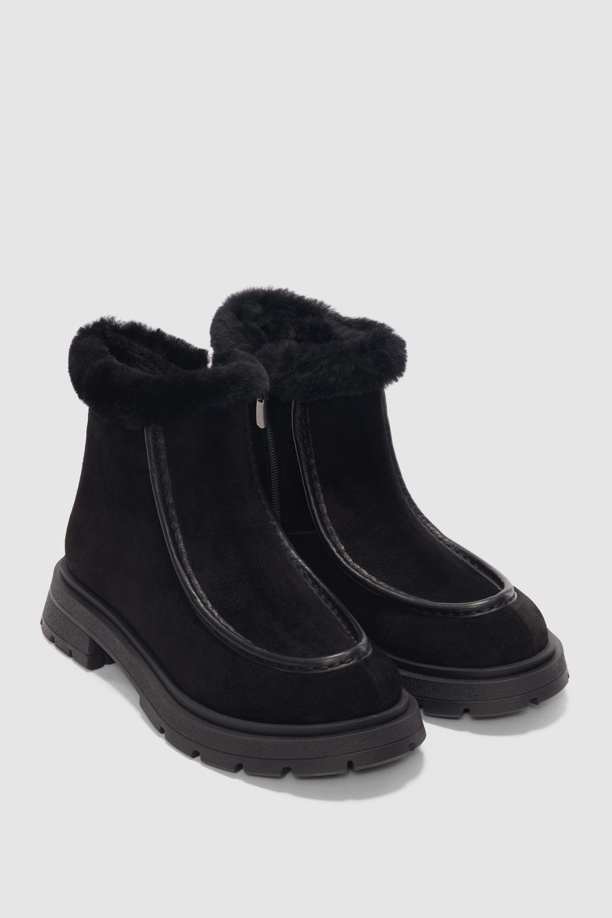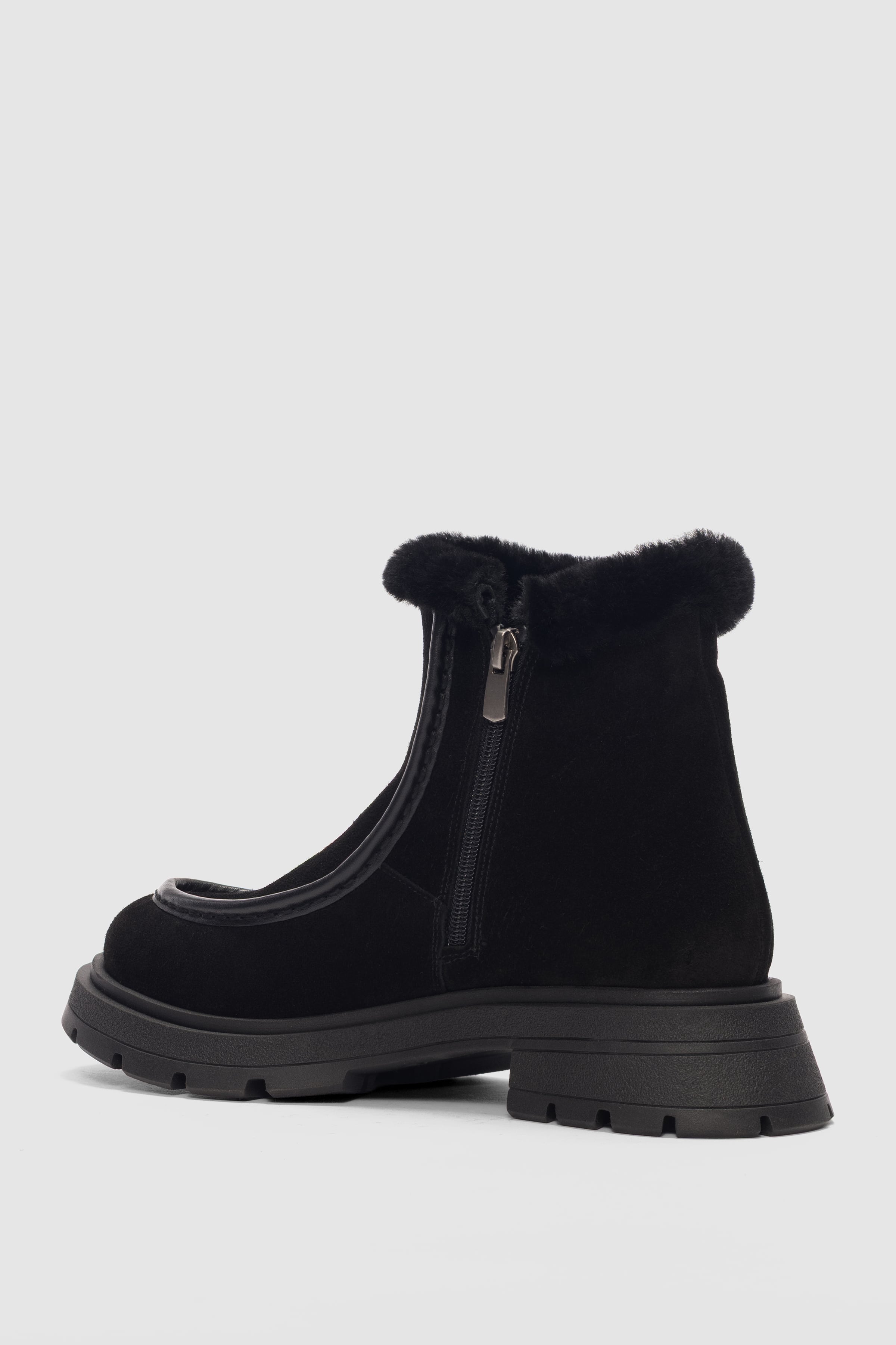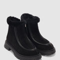 Corine Hakiki Deri Kürk Detaylı Yandan Fermuarlı Kadın Bot- SİYAH SÜET