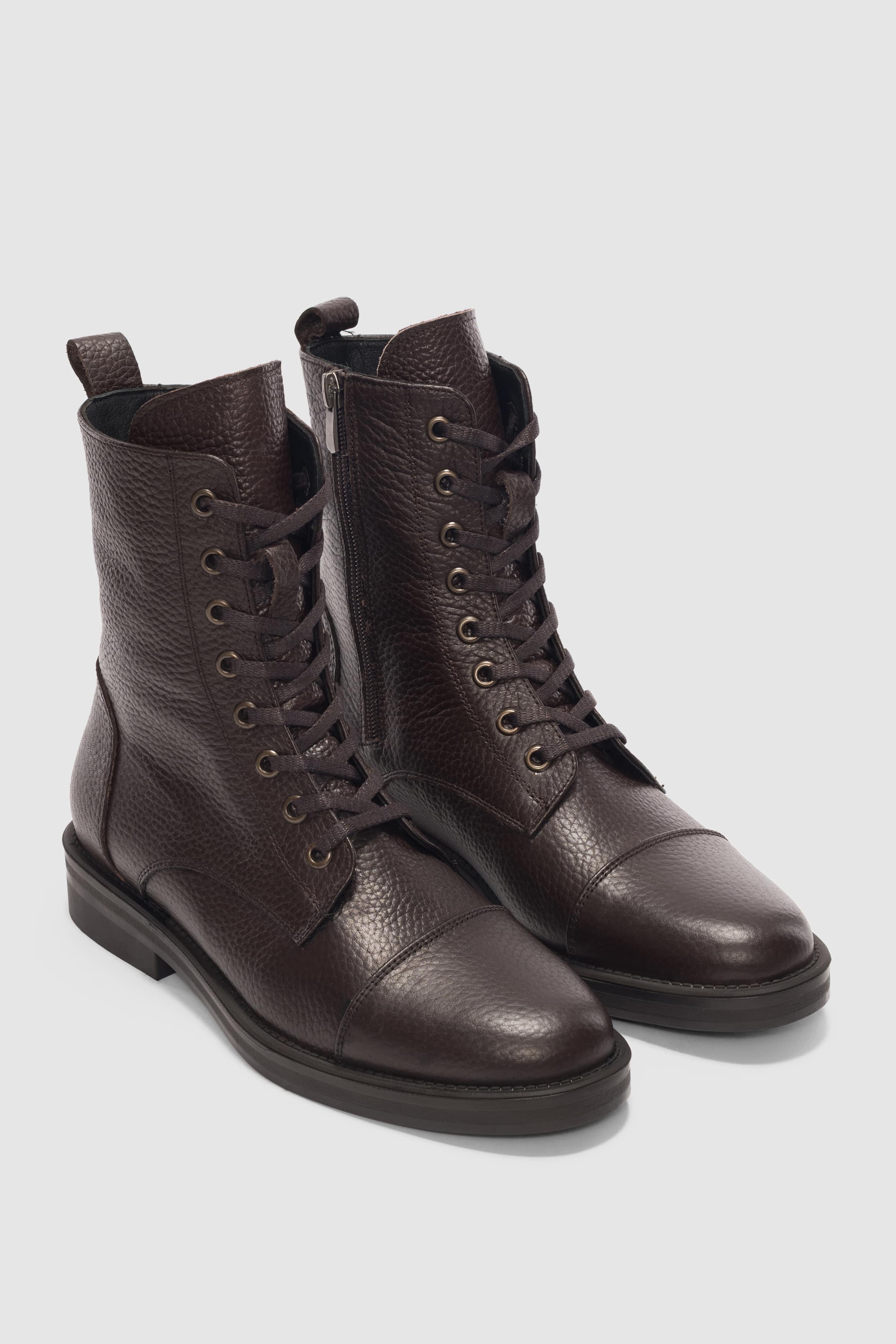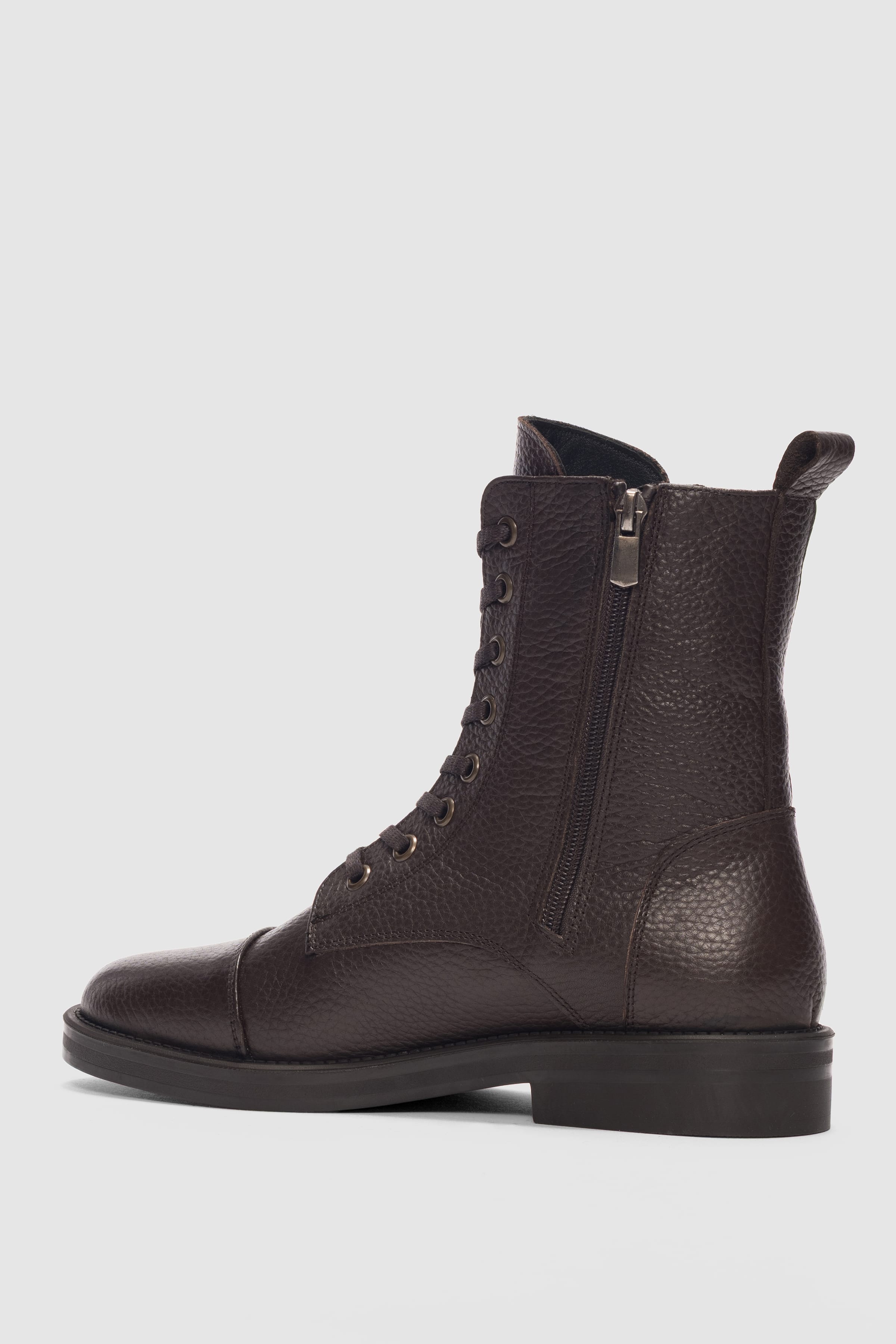 Navira Hakiki Deri Bağcıklı ve Yandan Fermuarlı Kadın Bot