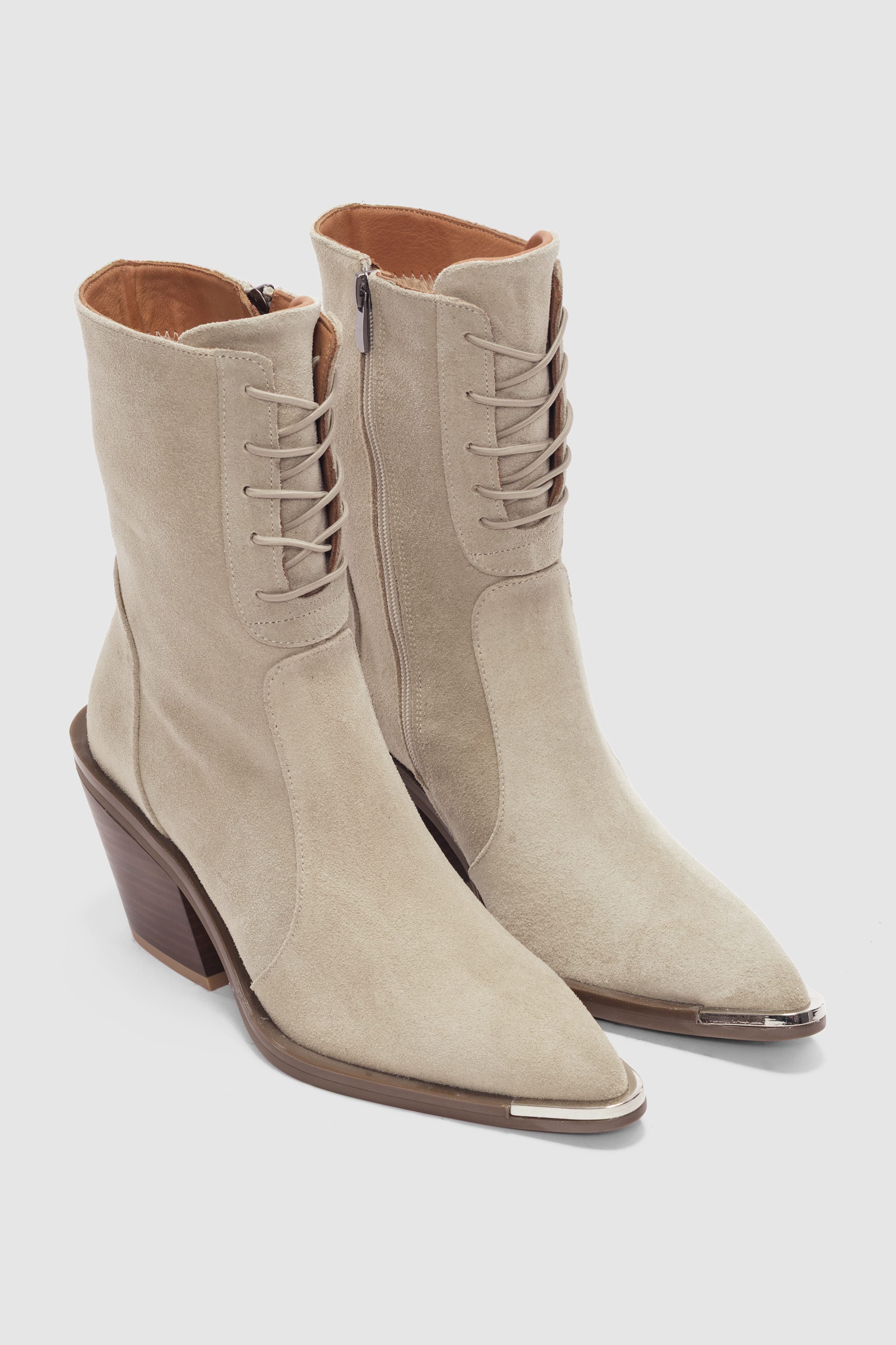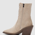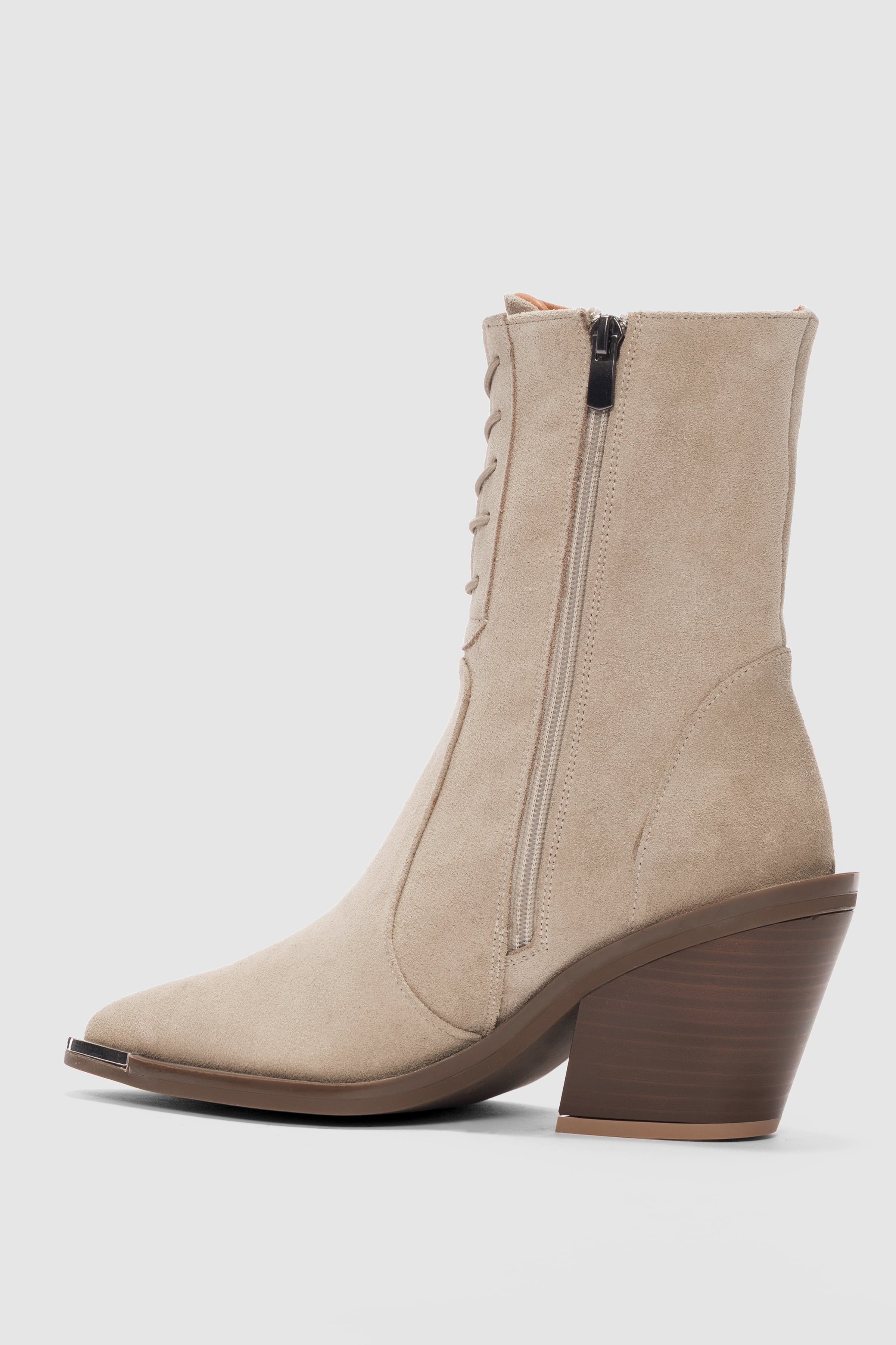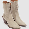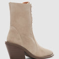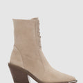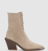 Novira Hakiki Deri Bağcıklı ve Yandan Fermuarlı Sivri Burun Kadın Bot- BEJ SÜET