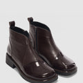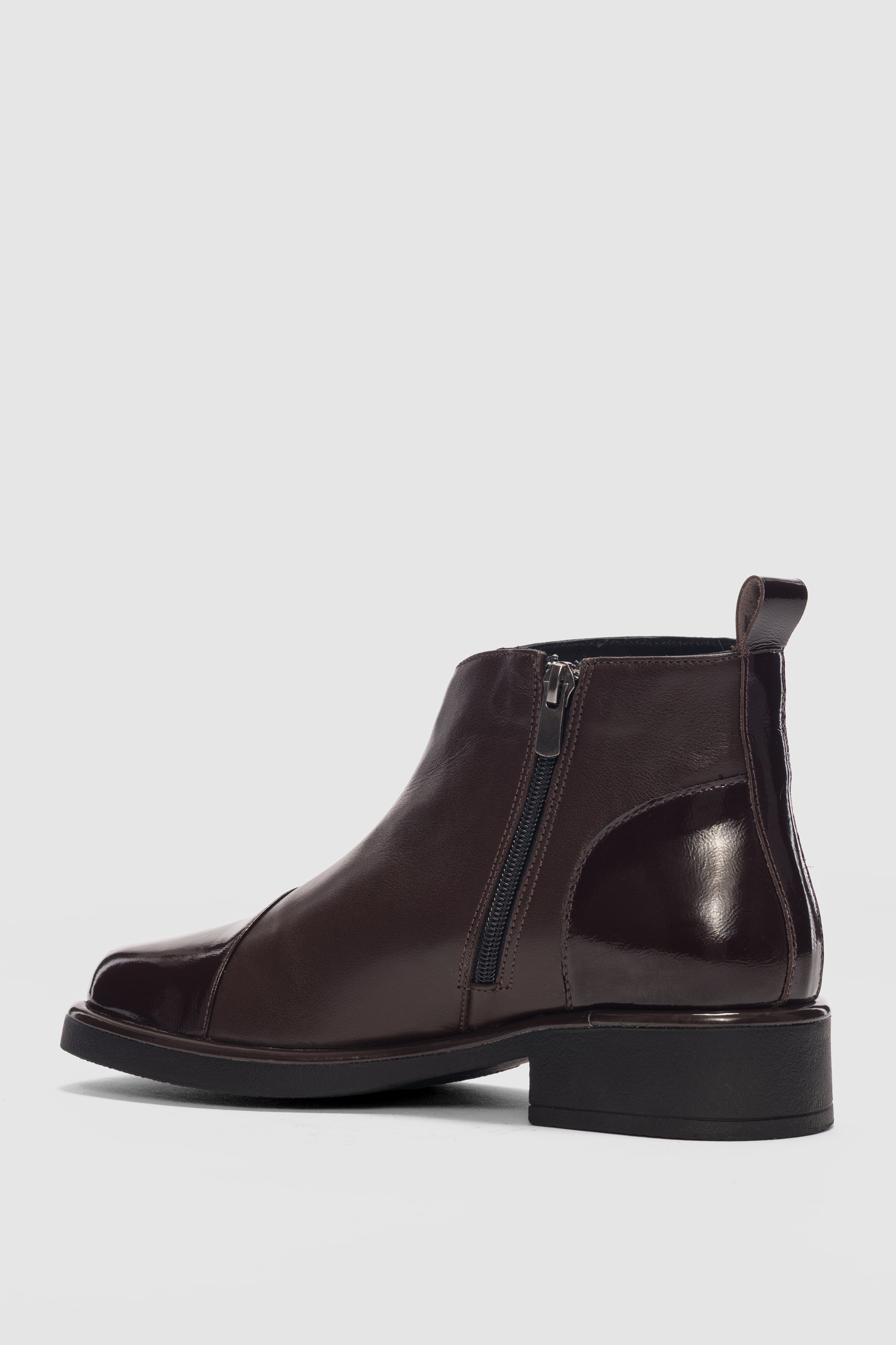Varein Hakiki Deri Yandan Fermuarlı Küt Burun Kadın Bot