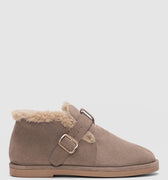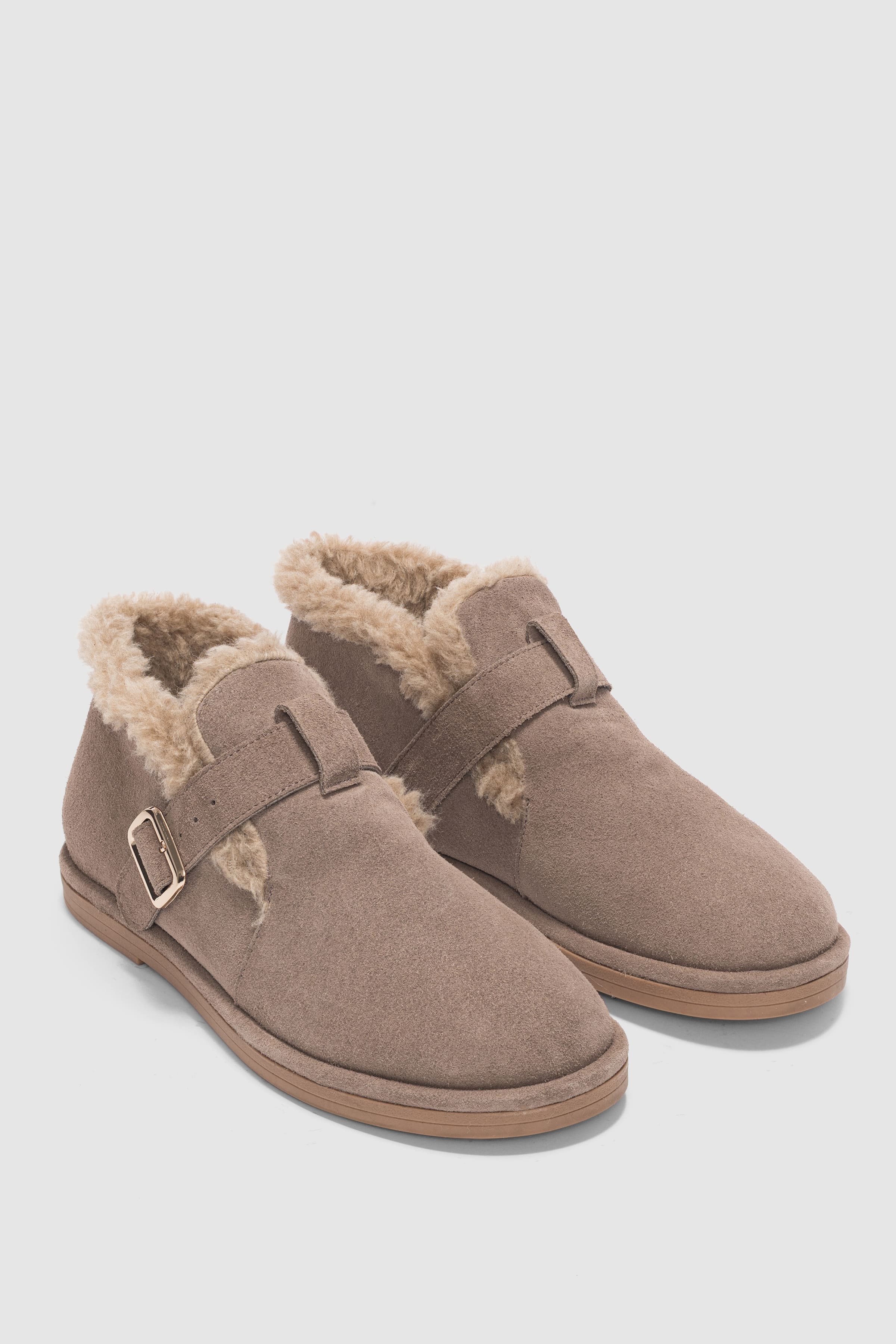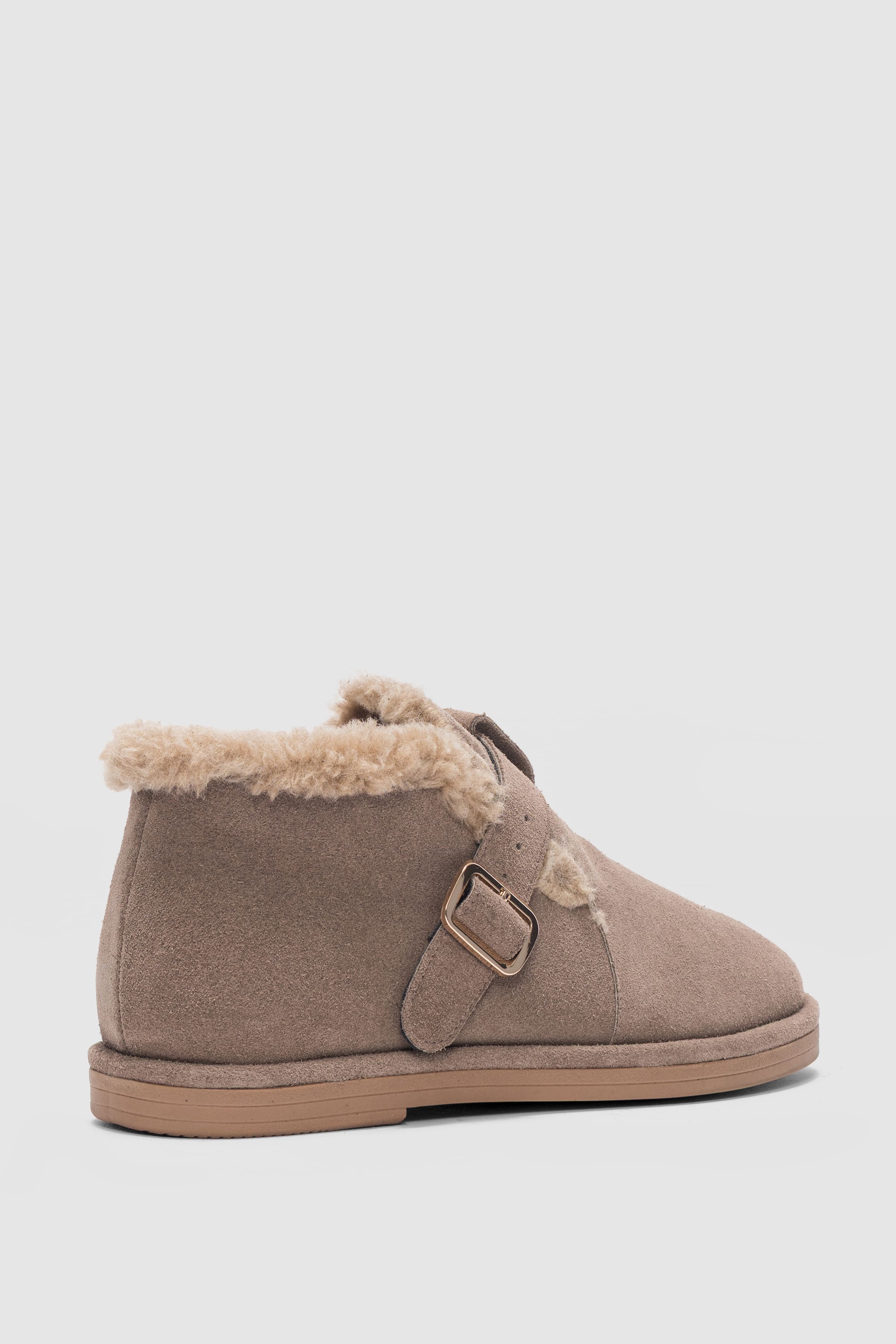 Velmora Hakiki Deri İçi Kürklü Ayarlanabilir Toka Detaylı Kadın Bot- VİZON SÜET