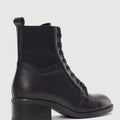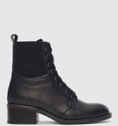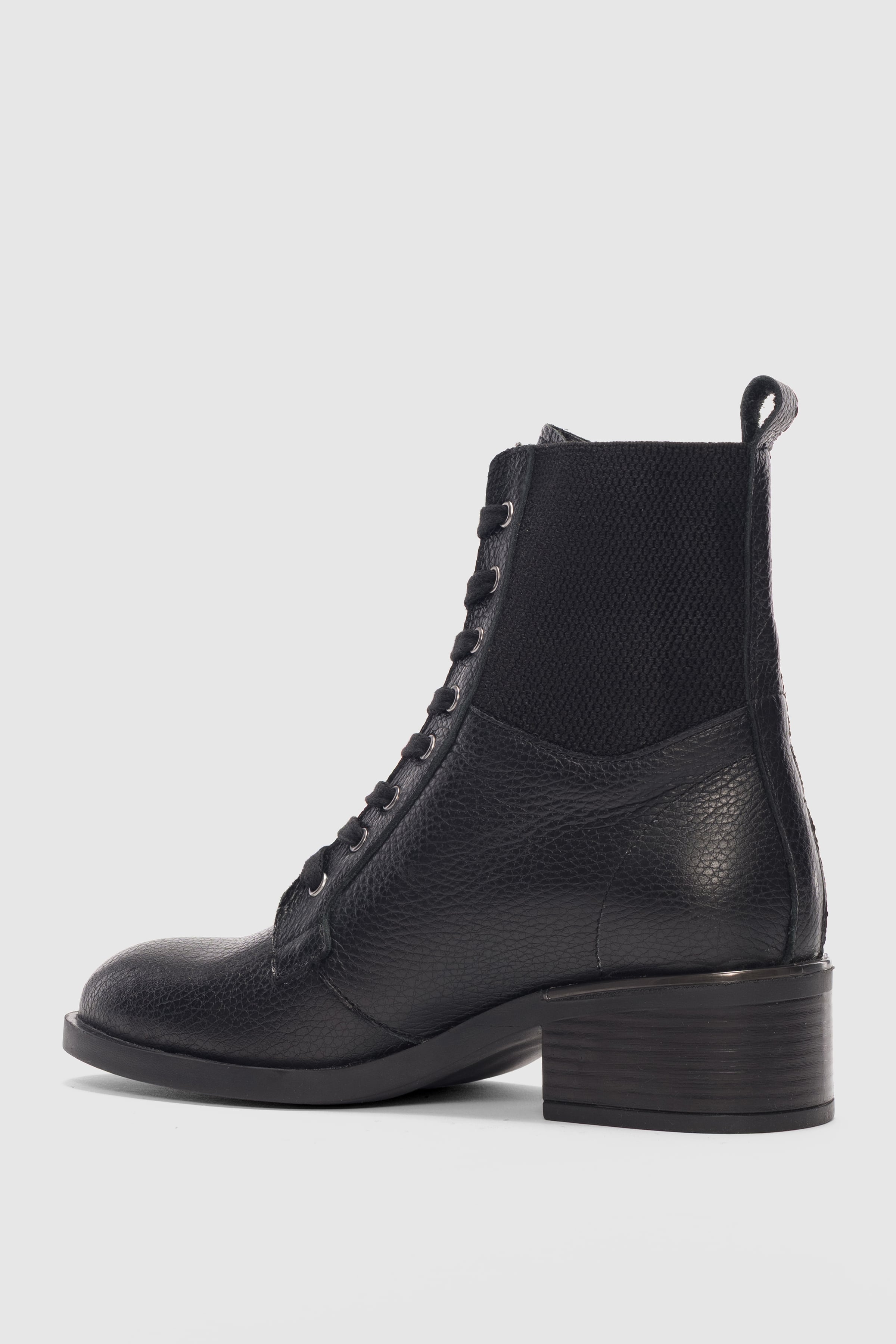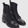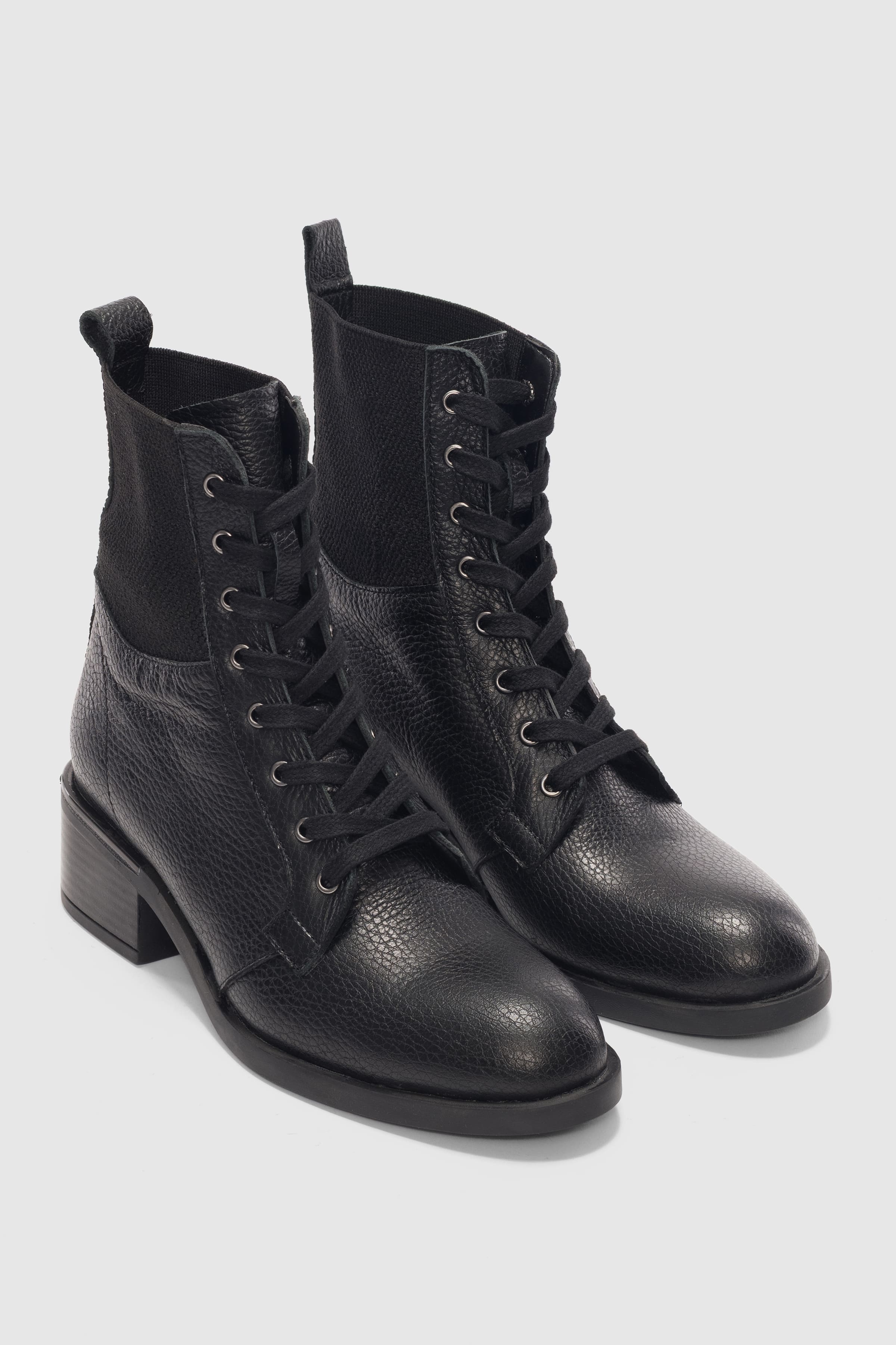 Veyora Hakiki Deri Bağcıklı Kadın Bot- SİYAH