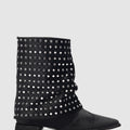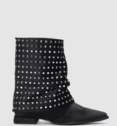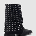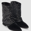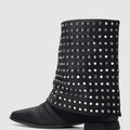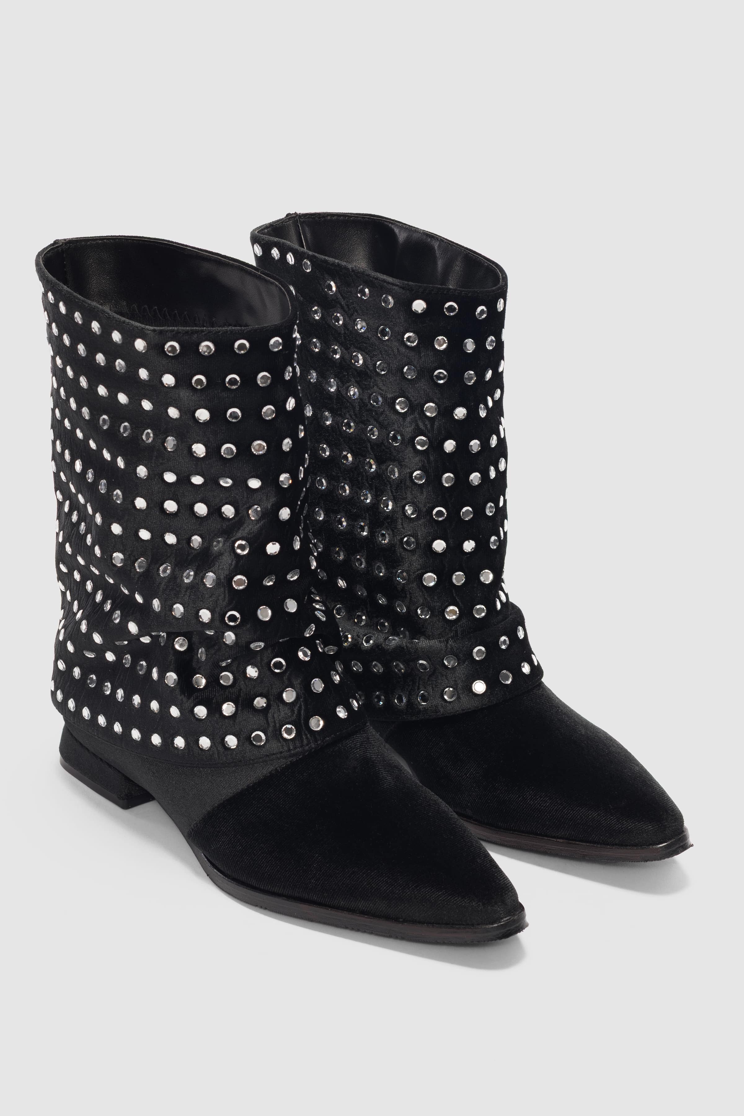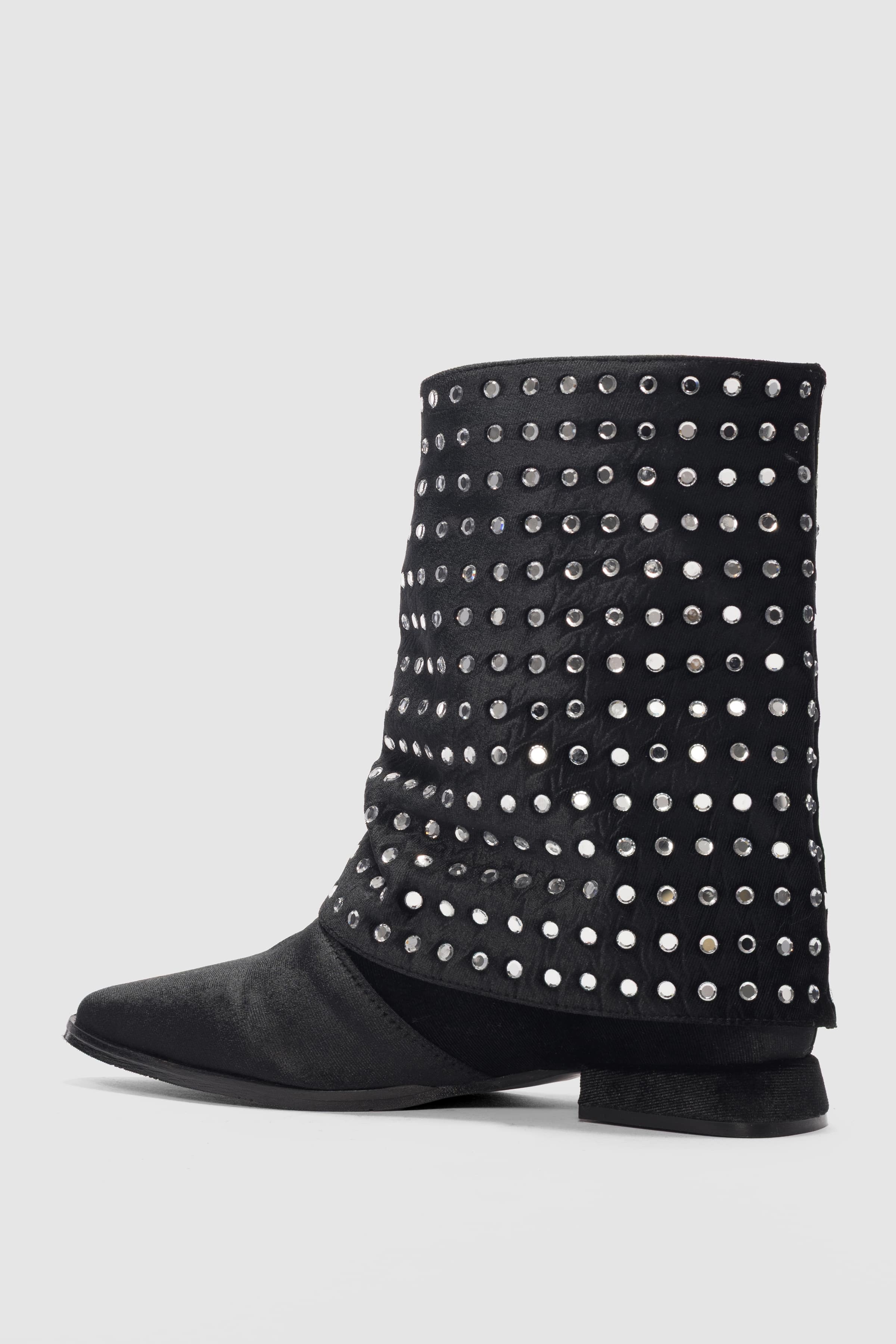 Vionne Kadife Kumaş Üzerine Siyah Taş Detaylı Alçak Topuklu Kadın Bot