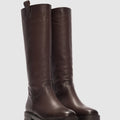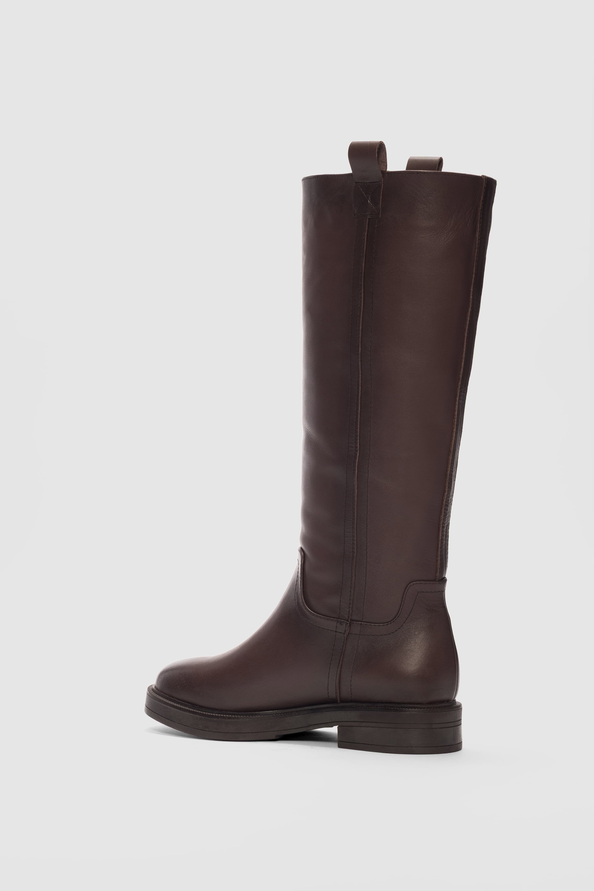 Nordea Hakiki Deri Oval Burun Kadın Çizme- KAHVERENGİ