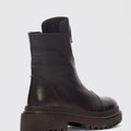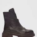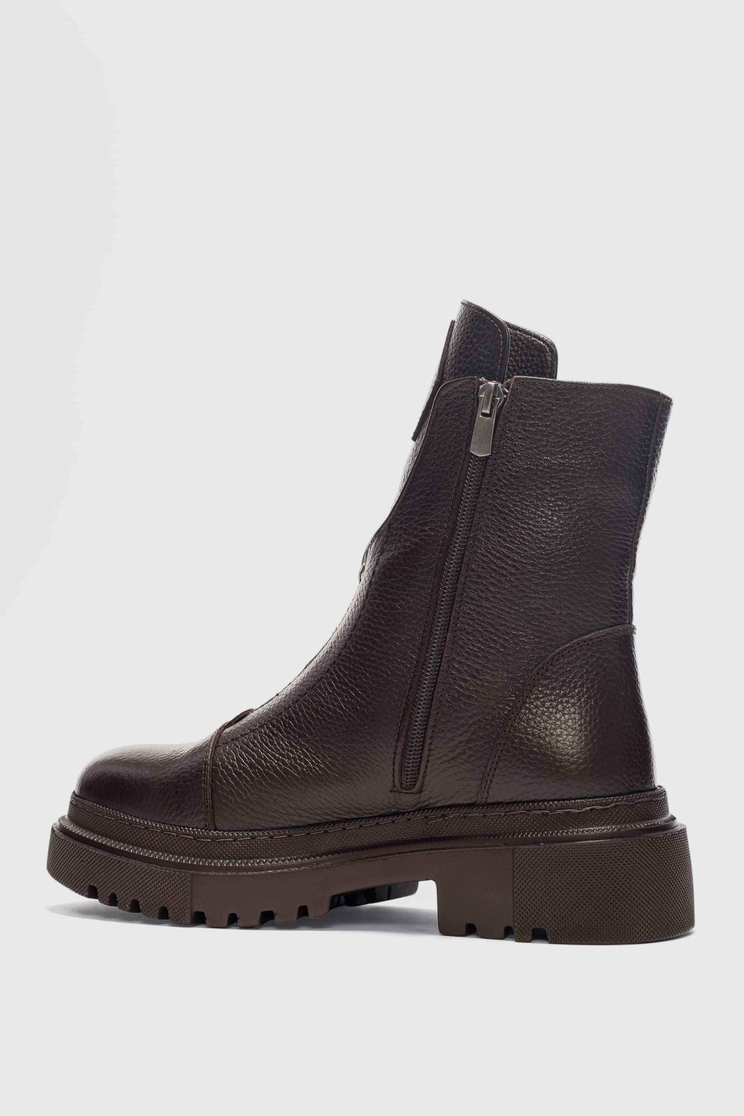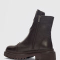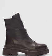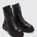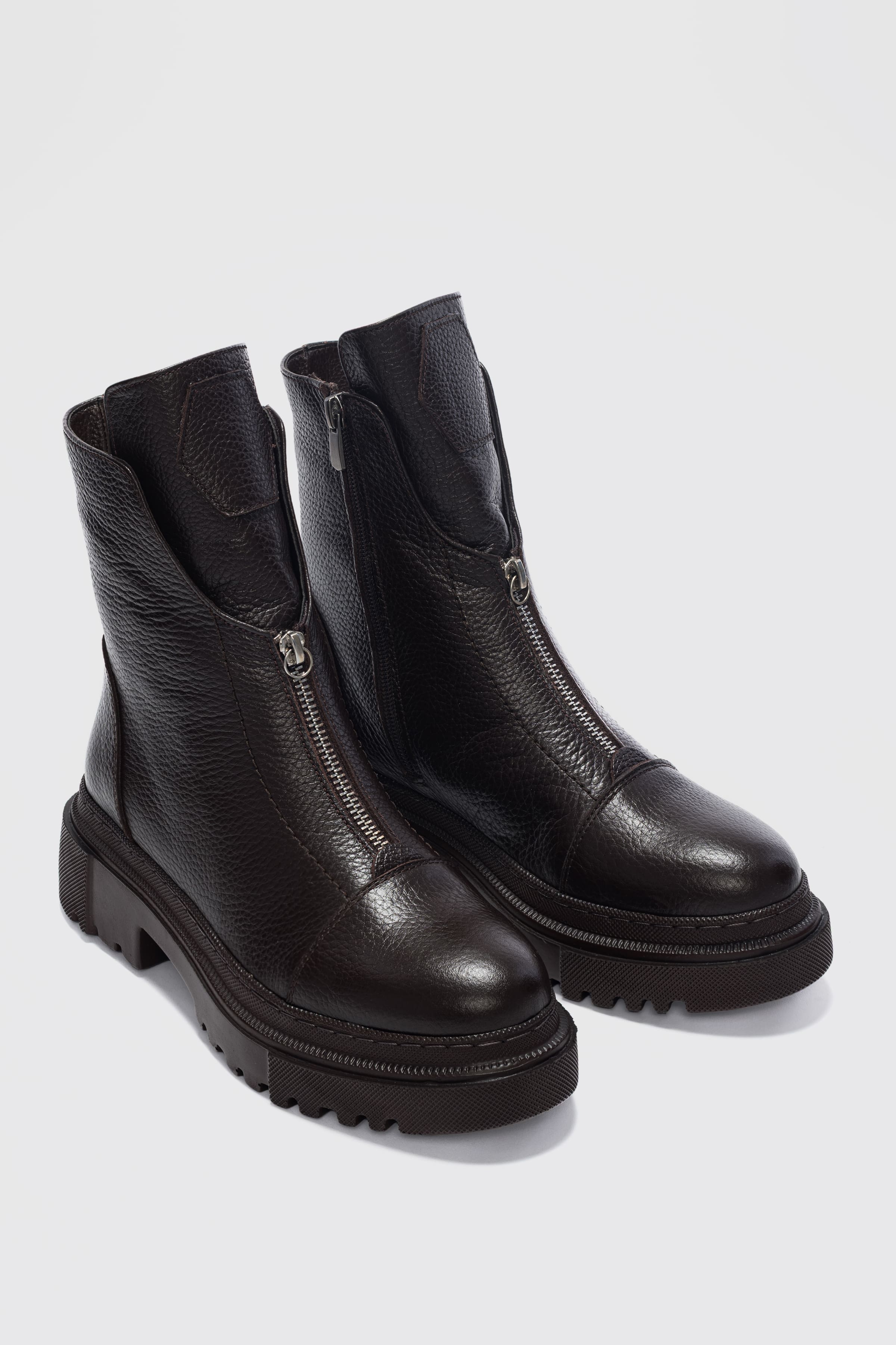 Mena Hakiki Deri Küt Burunlu Ön Kısımda Fermuar Aksesuarlı Kadın Bot