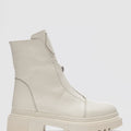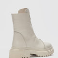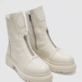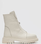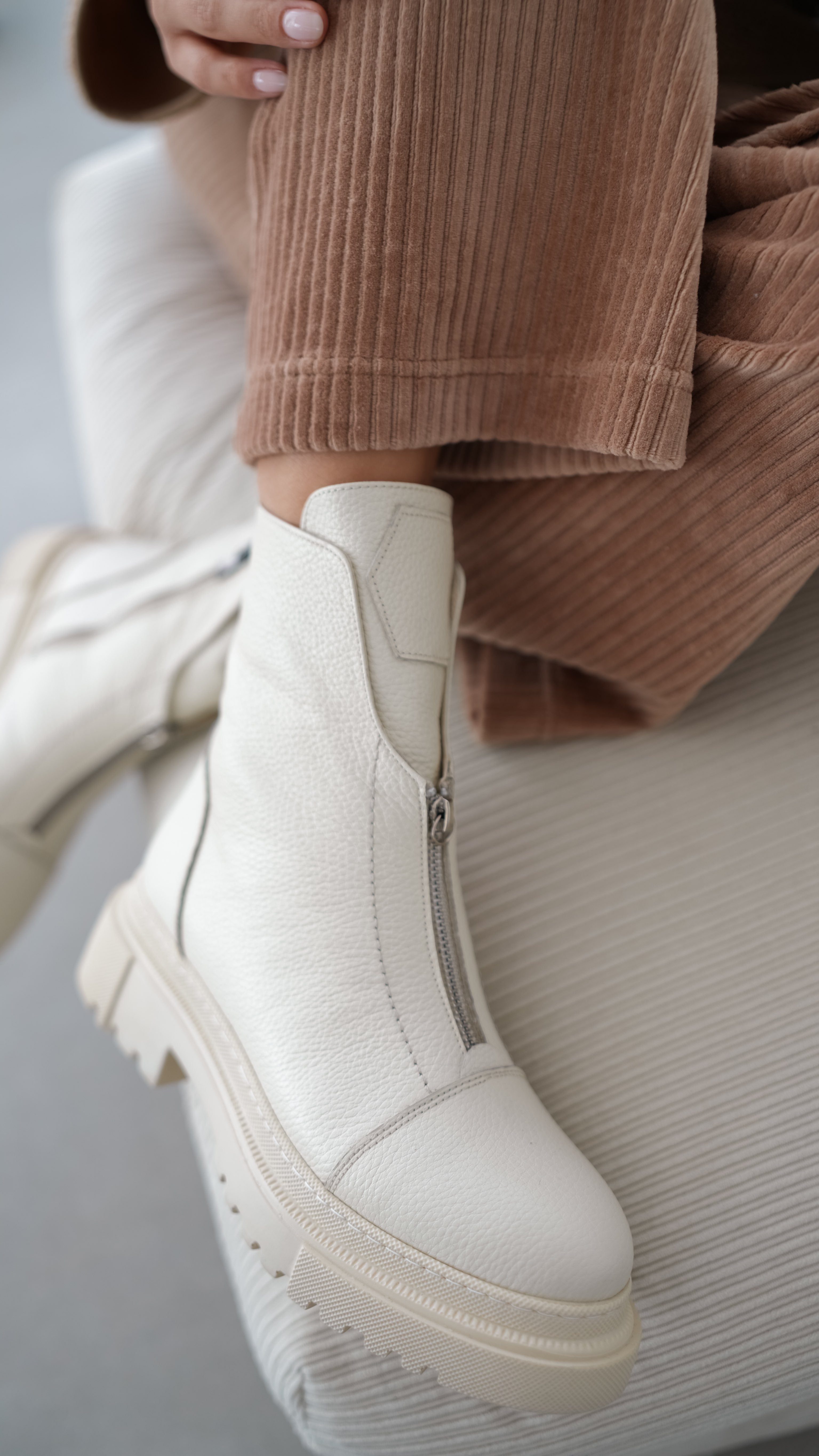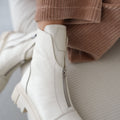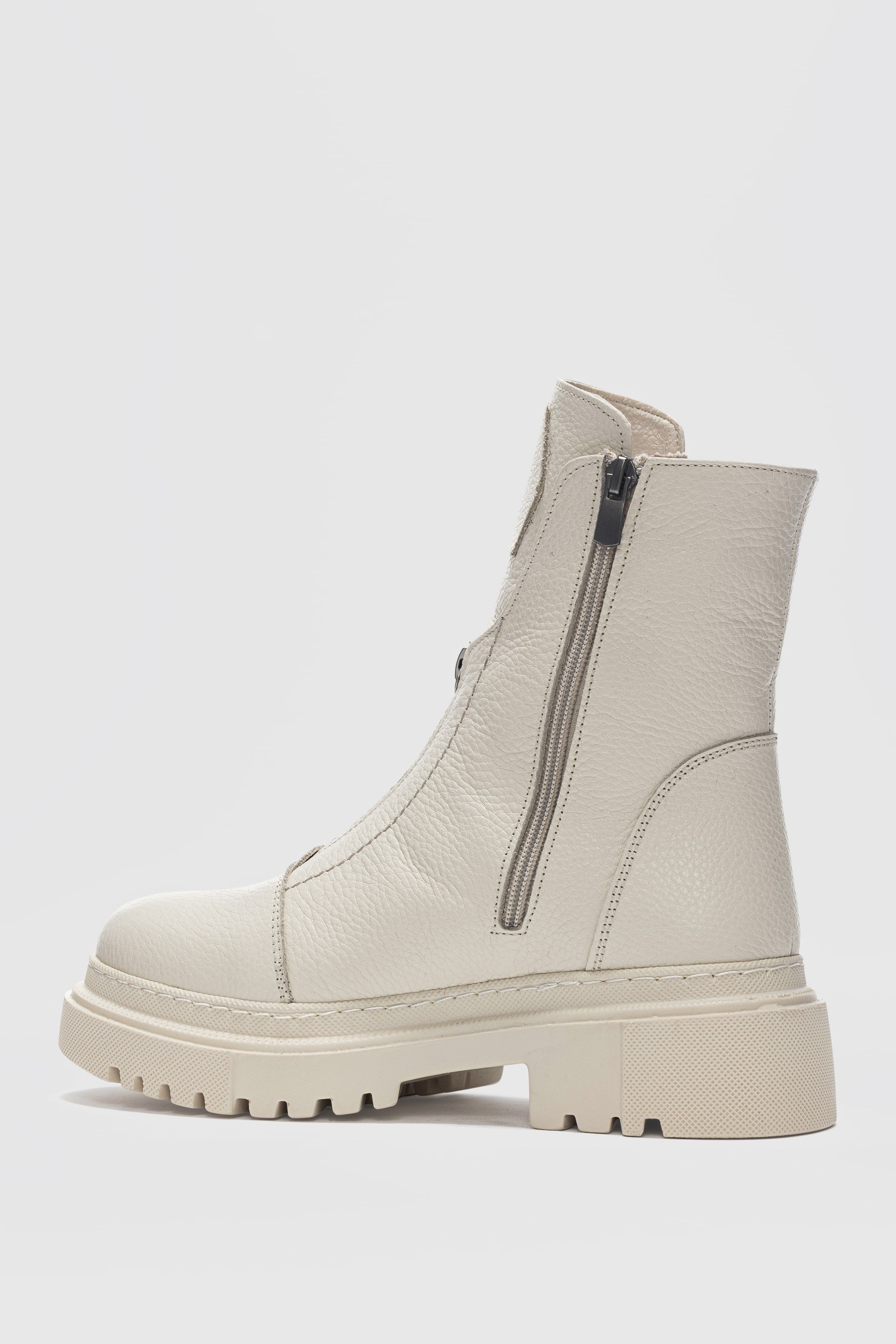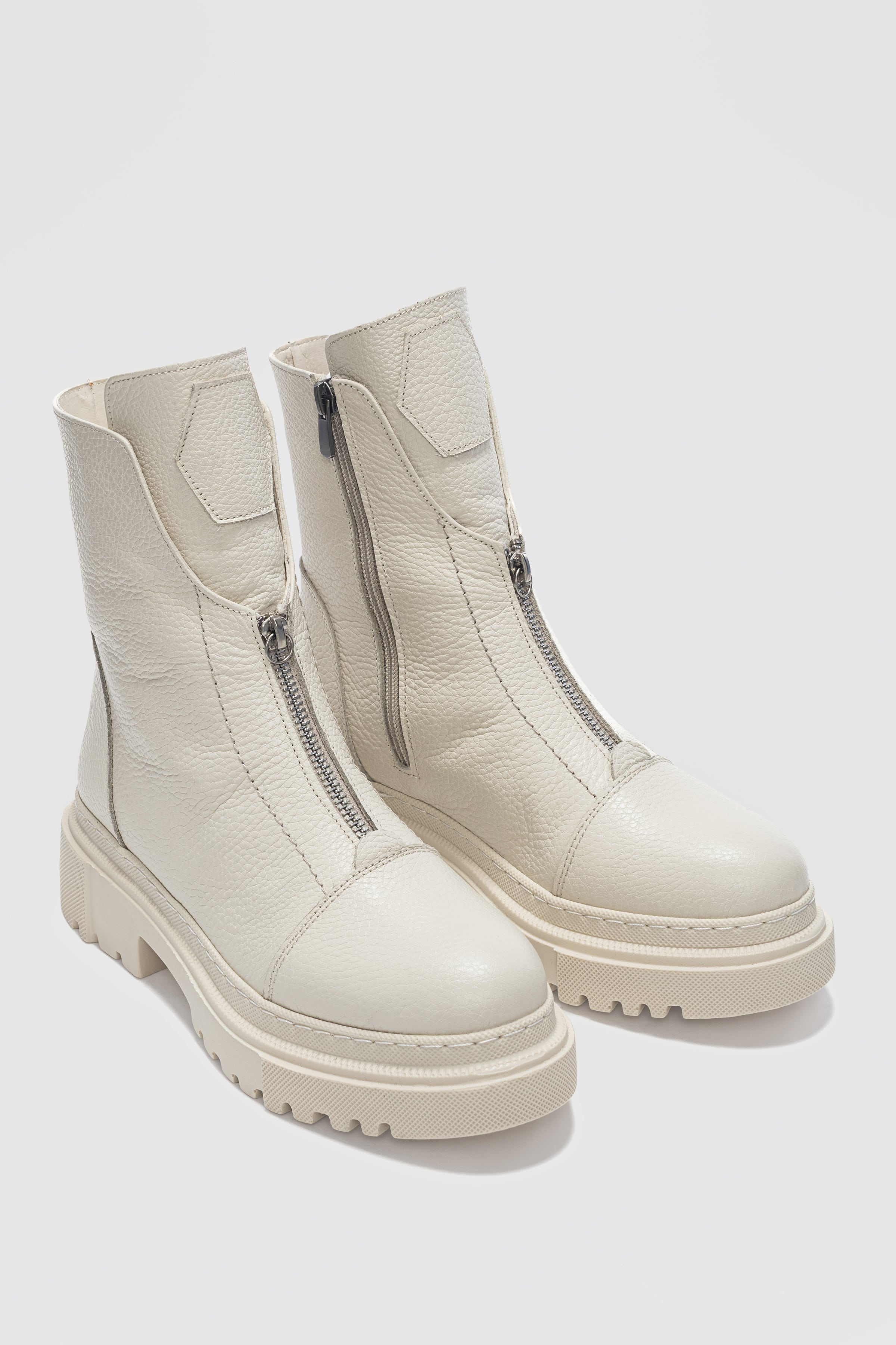 Mena Hakiki Deri Küt Burunlu Ön Kısımda Fermuar Aksesuarlı Kadın Bot