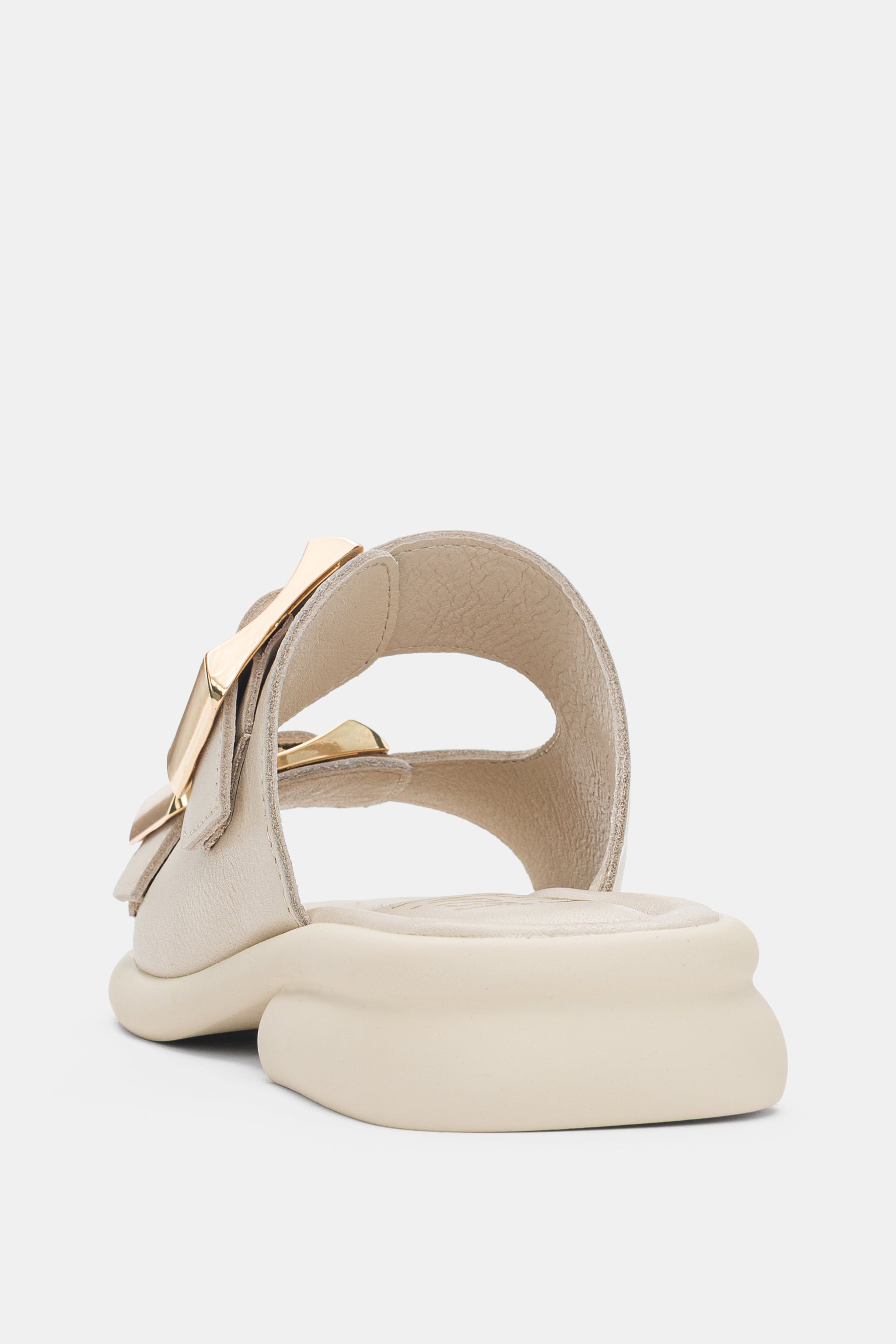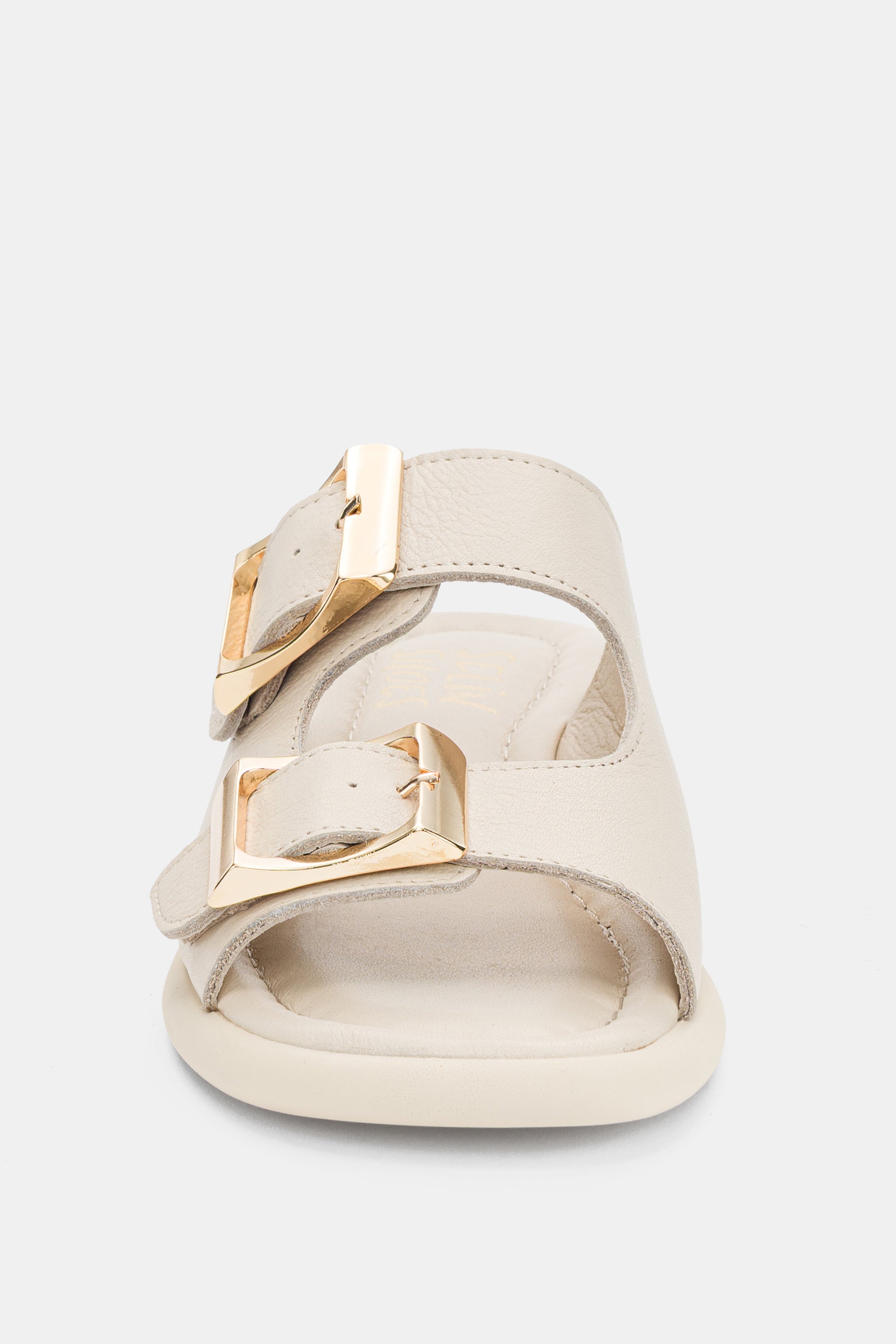 Orlise Hakiki Deri Ayarlanabilir Gold Toka Detaylı Topuklu Kadın Terlik- EKRU ( 0486 )