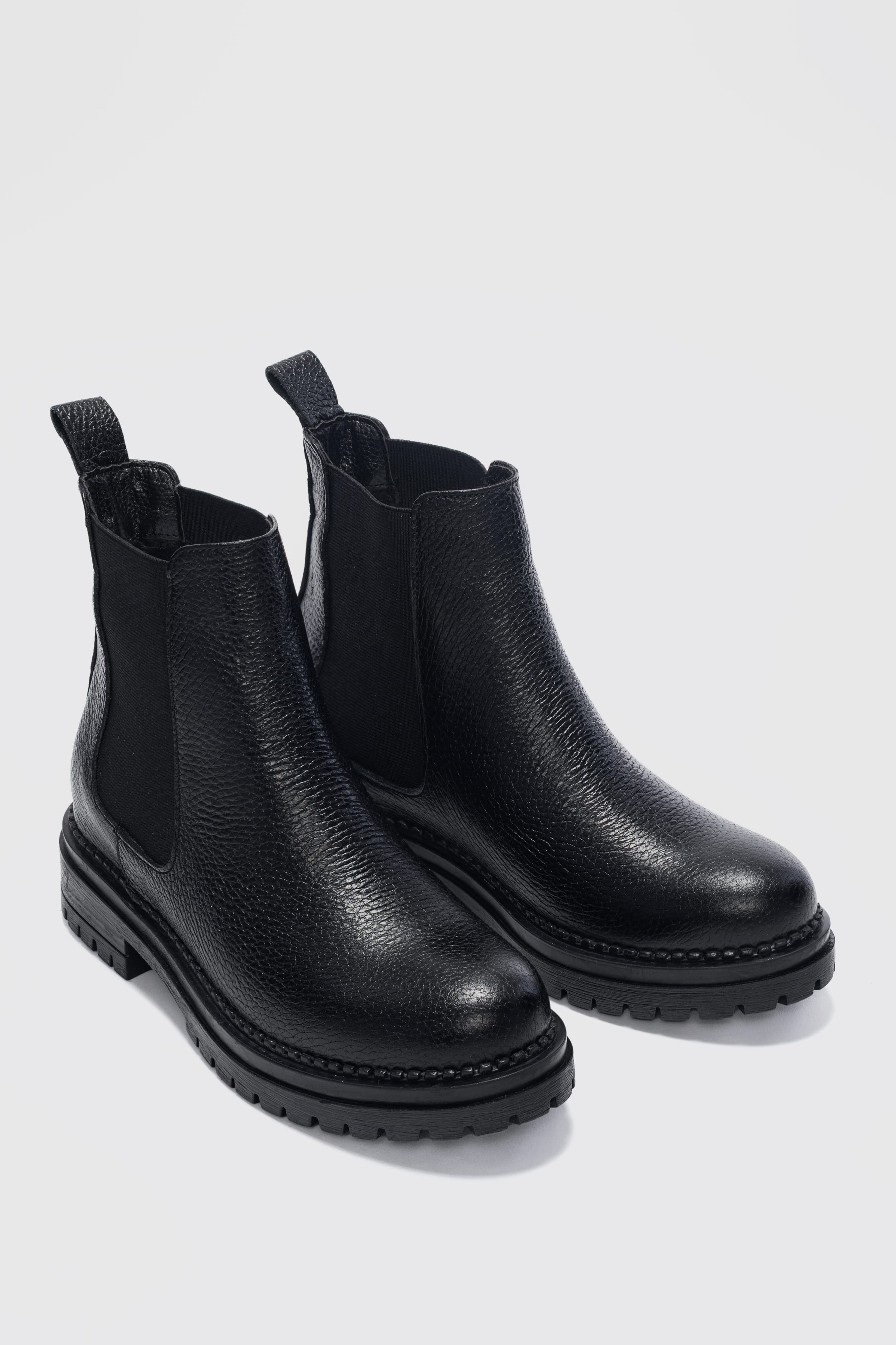 Whitney Hakiki Deri Lastikli Kadın Kısa Bot