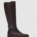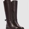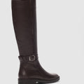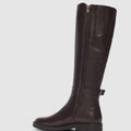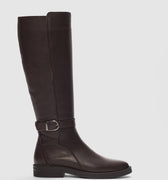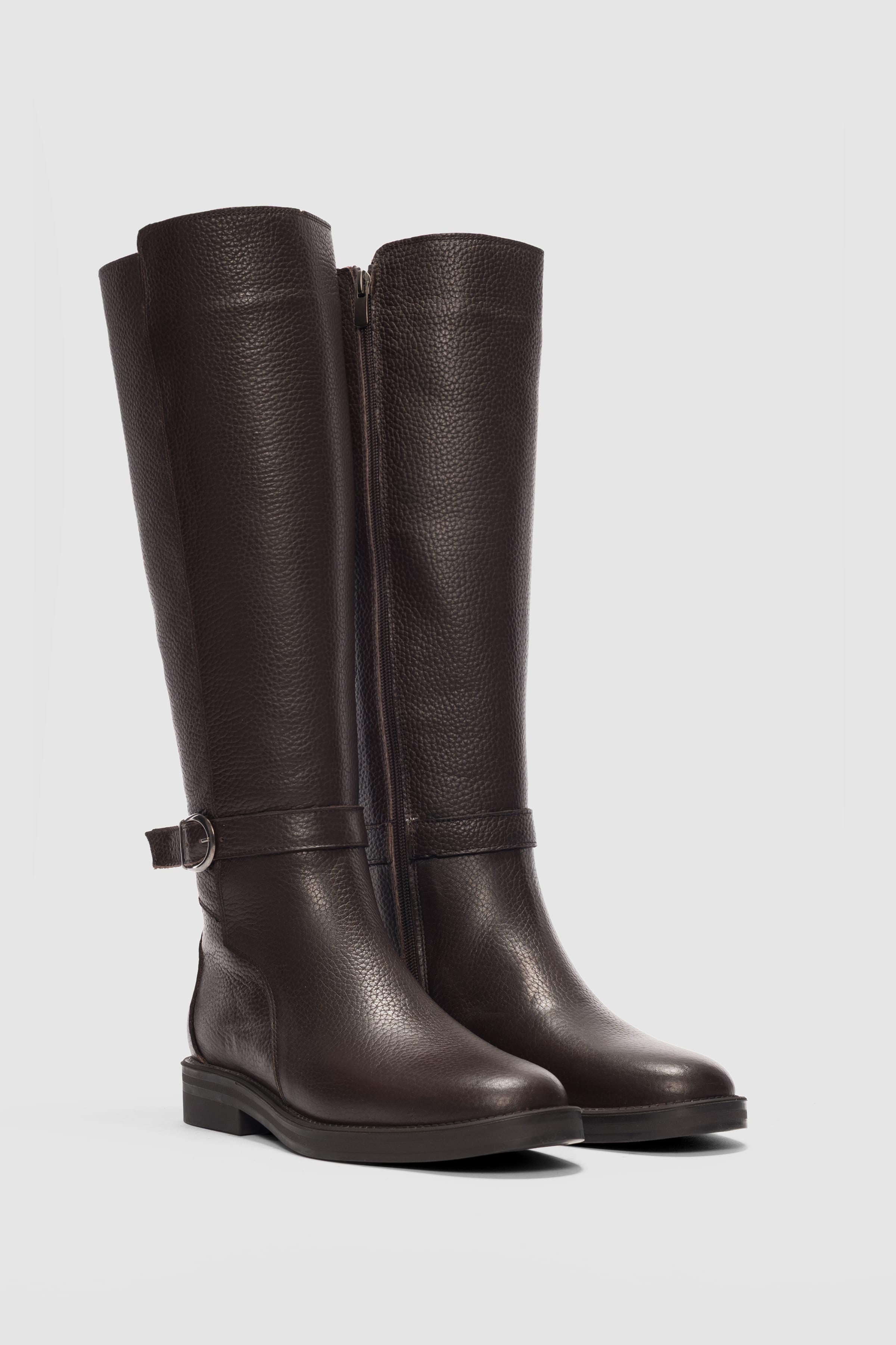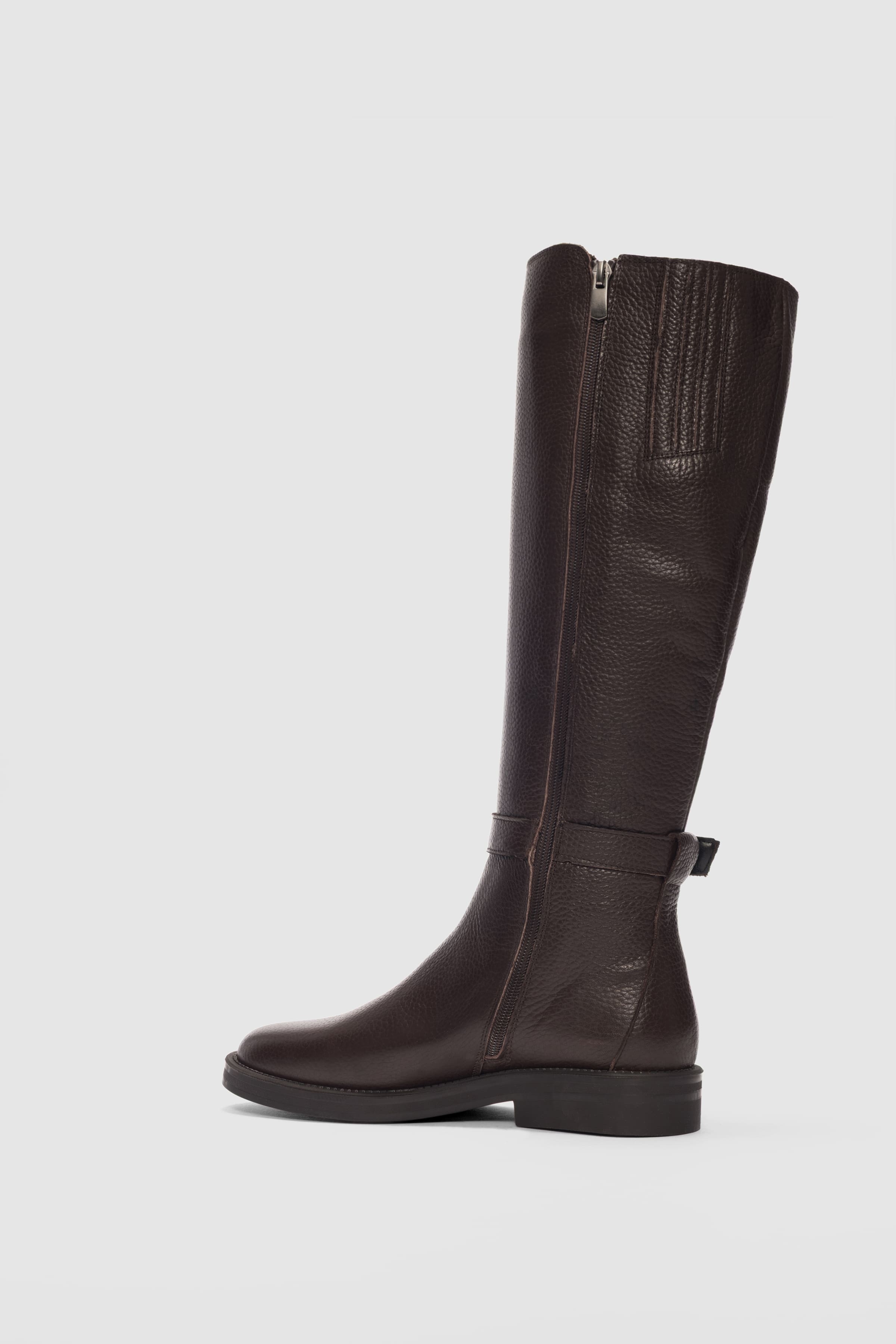 Zevon Hakiki Deri Yandan Fermuarlı Bilekten Ayarlanabilir Toka Detaylı Kadın Çizme- KAHVERENGİ