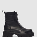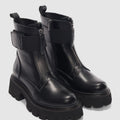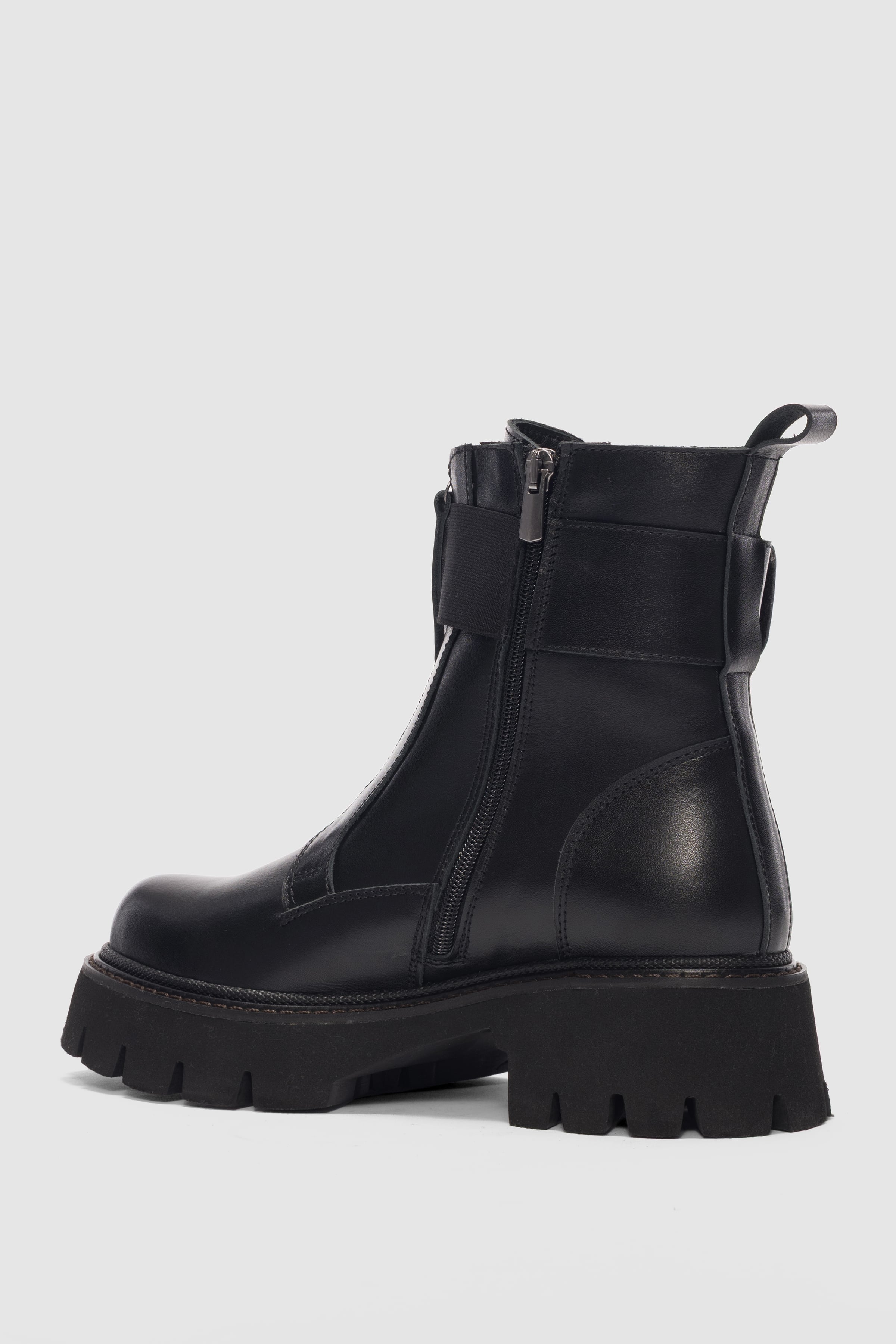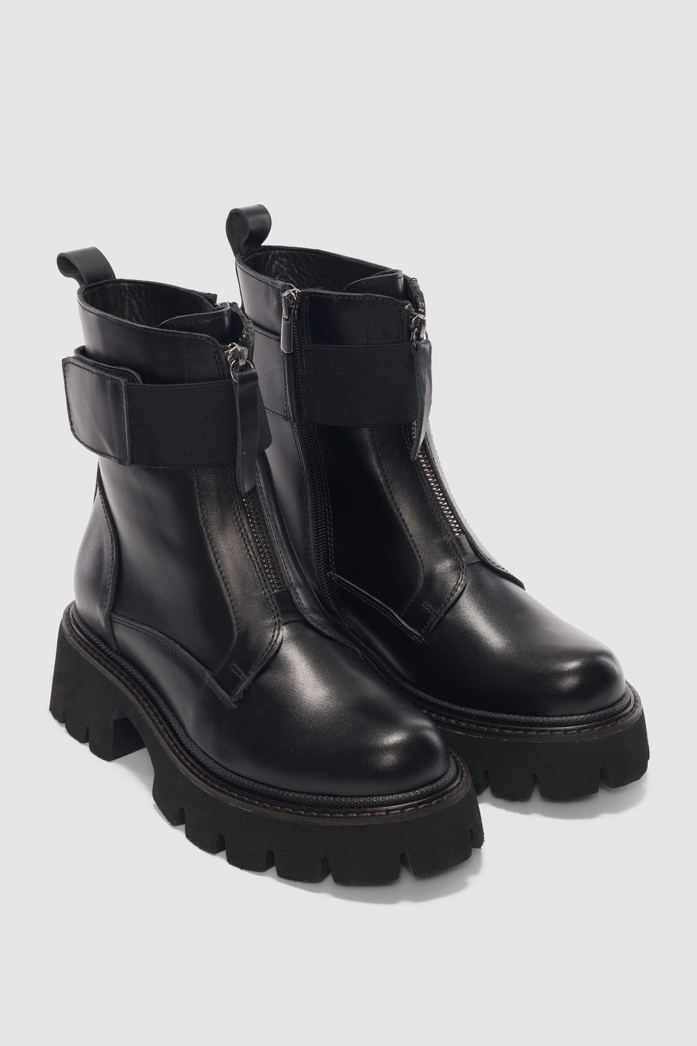 Dorelle Hakiki Deri Cırt Detaylı Çift Fermuarlı Kadın Bot- SİYAH