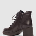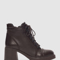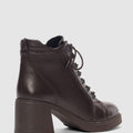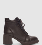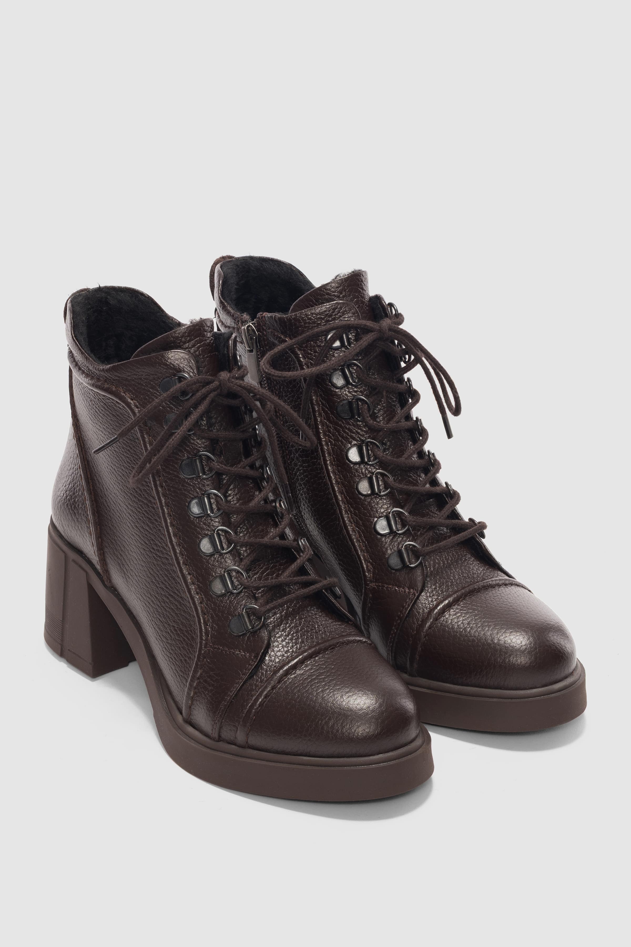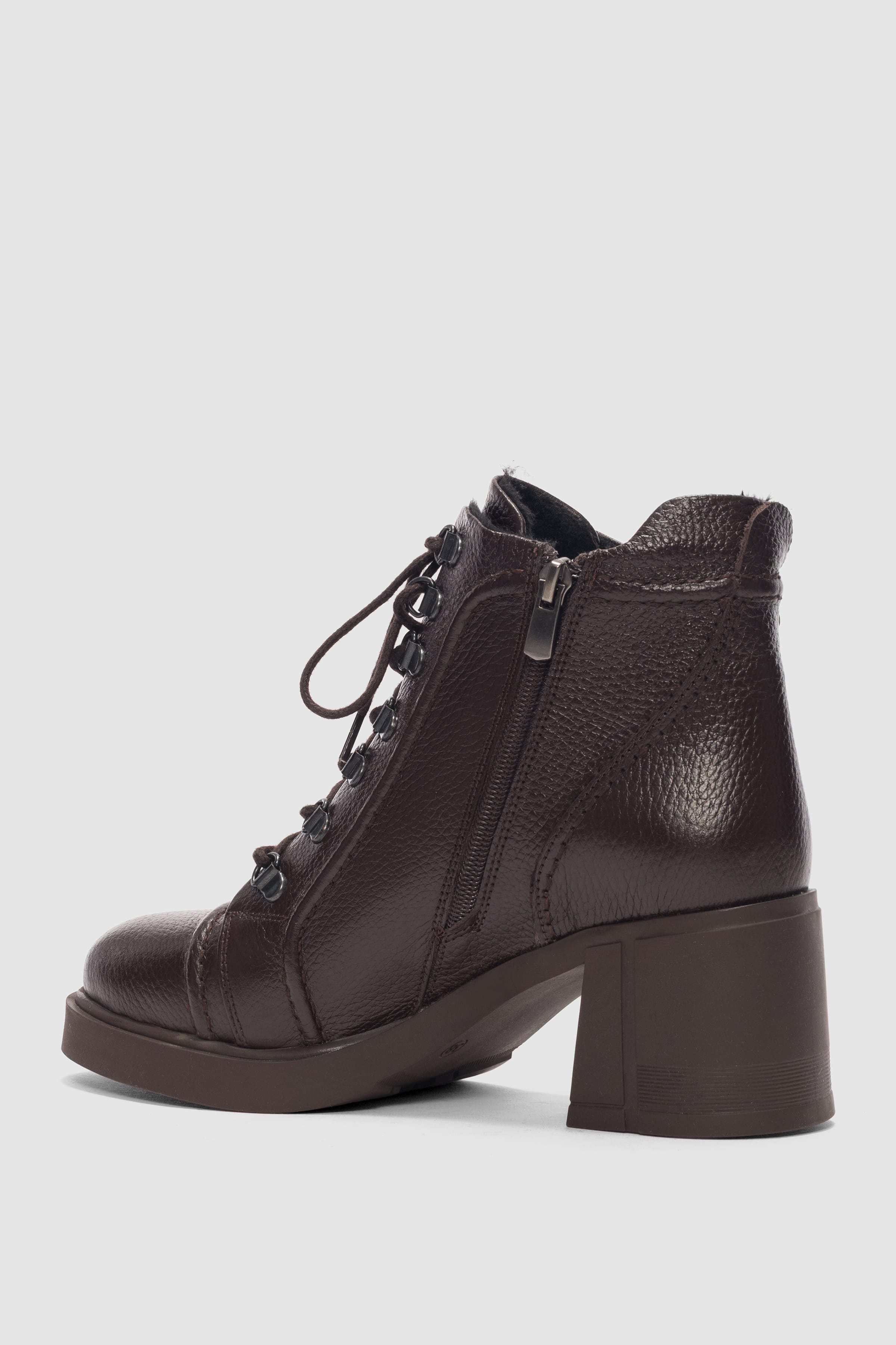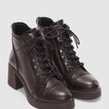 Nuvee Hakiki Deri Bağcıklı ve Yandan Fermuarlı Kadın Bot- KAHVERENGİ