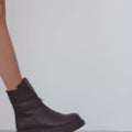 Mena Hakiki Deri Küt Burunlu Ön Kısımda Fermuar Aksesuarlı Kadın Bot