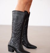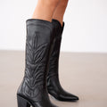 Arlina Sivri Burun İşlemeli Kadın Çizme- SİYAH