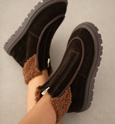 Bruve Ön Fermuar Detaylı Kürklü Hakiki Deri Süet Kadın Bot