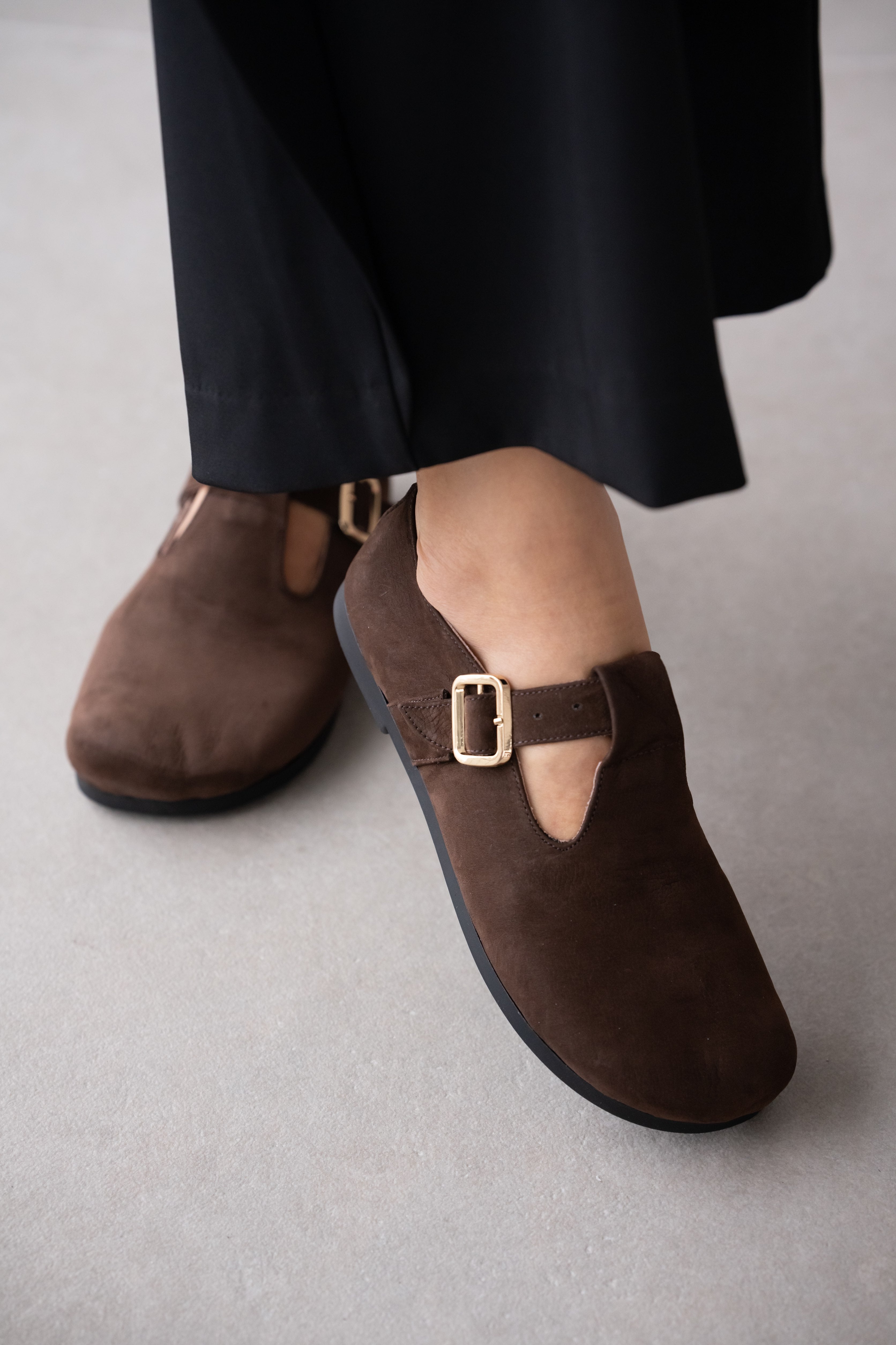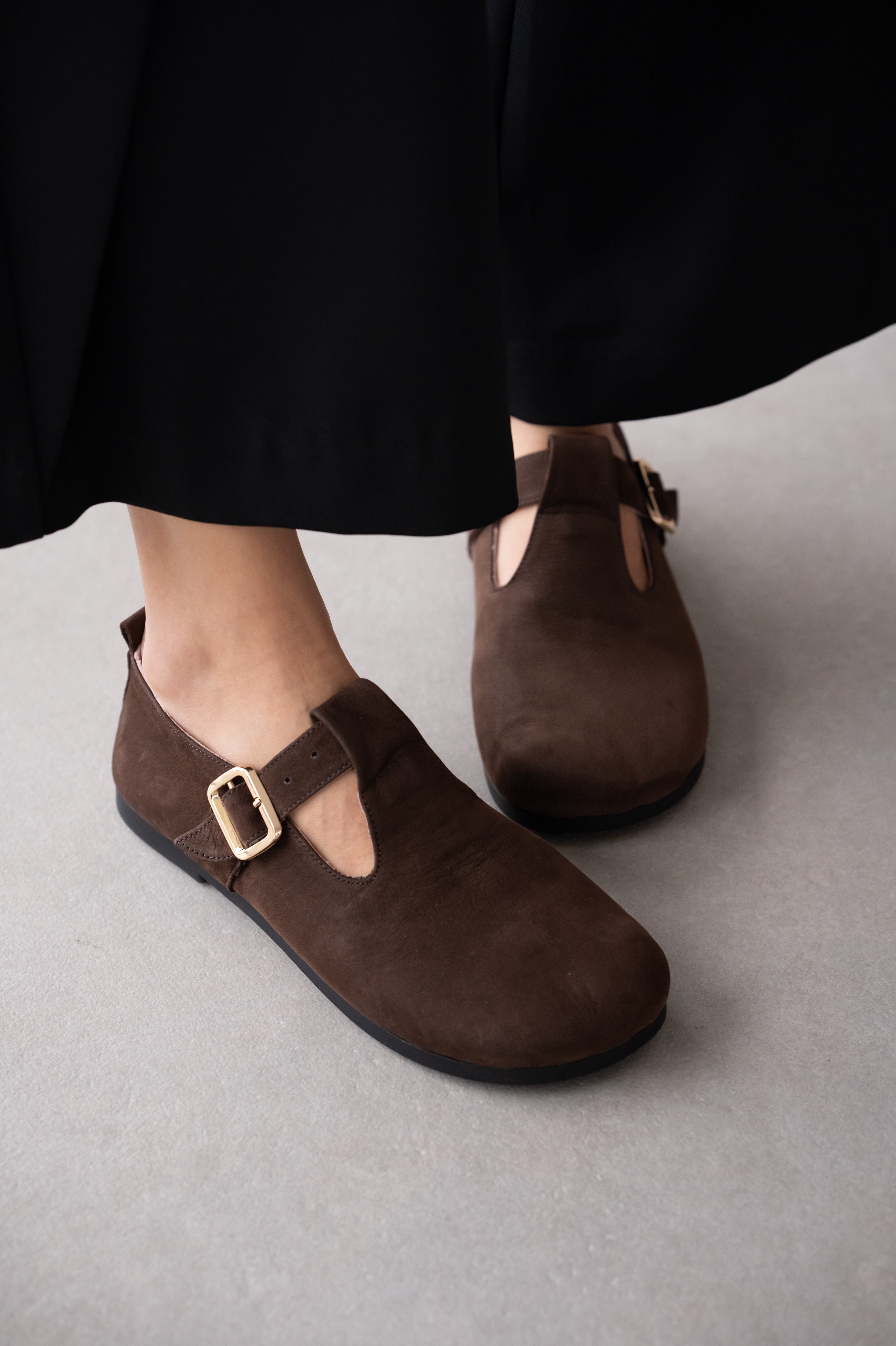 Elvior Hakiki Deri Gold Ayarlanabilir Toka Detaylı Kadın Ayakkabı- KAHVE SÜET ( 0461 )
