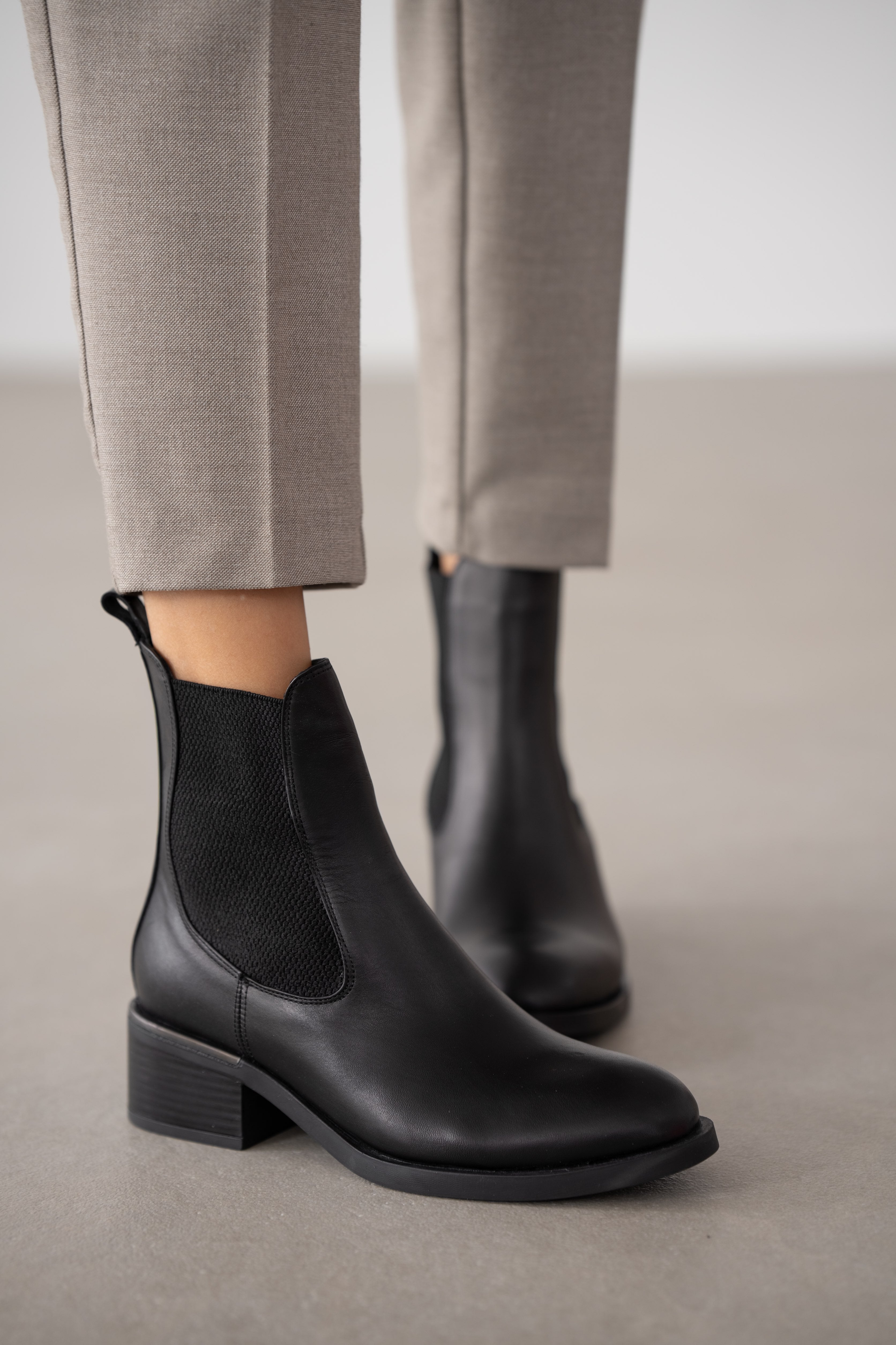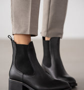 Torlin Hakiki Deri Lastikli Kadın Bot- SİYAH
