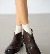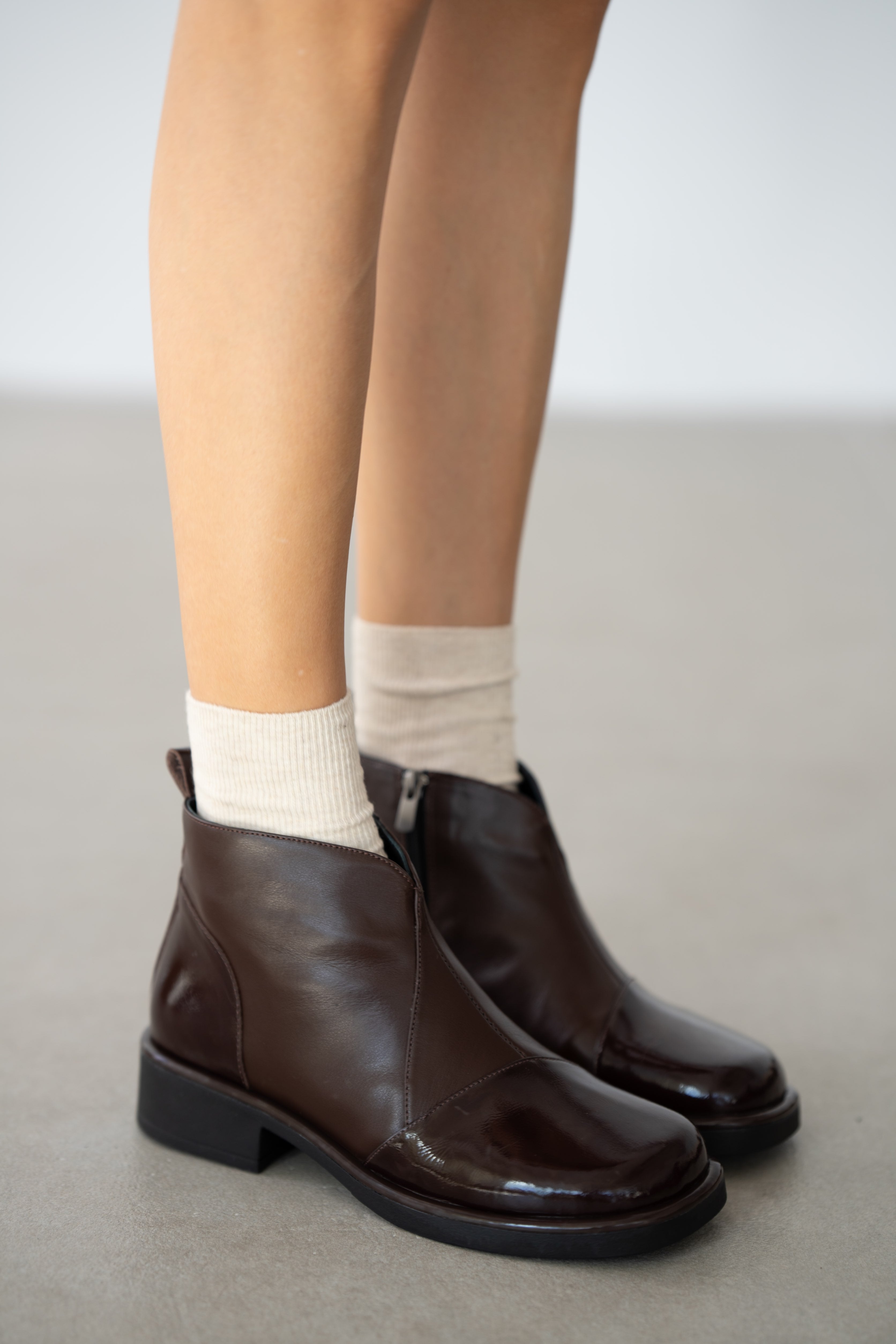 Varein Hakiki Deri Yandan Fermuarlı Küt Burun Kadın Bot