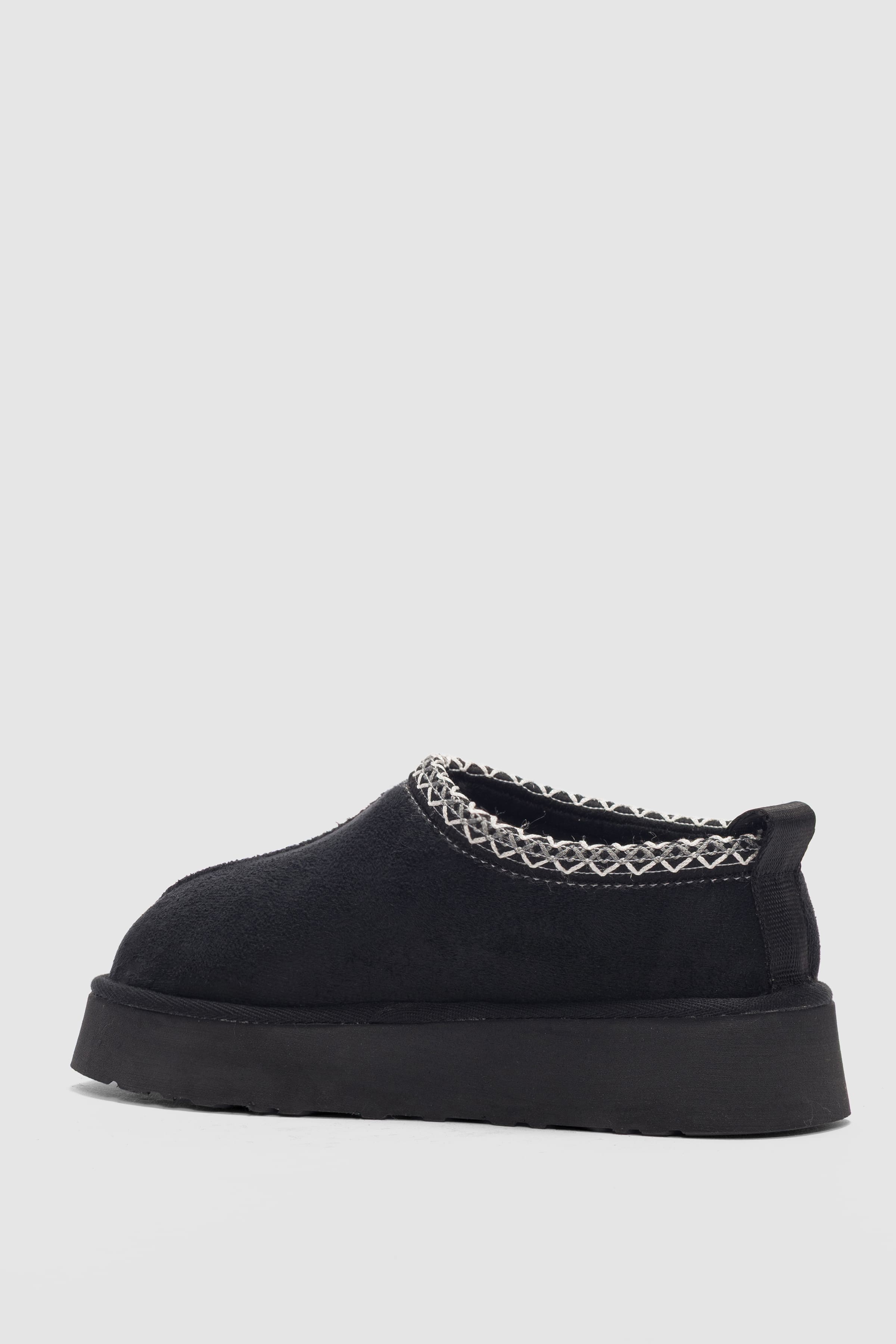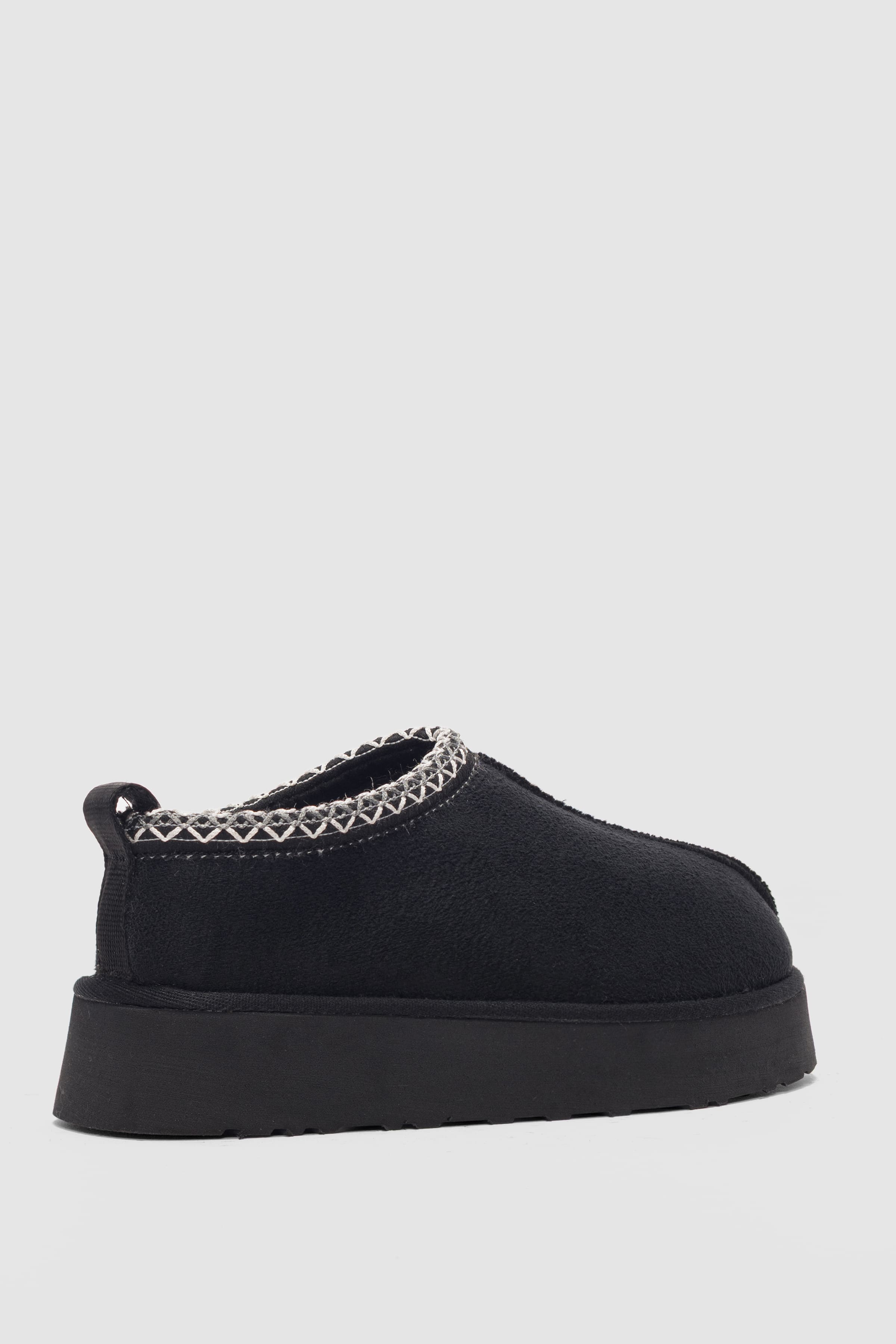 Velina İçi Kürklü Düz Taban Kadın Terlik- SİYAH SÜET