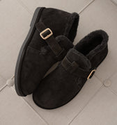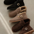 Velmora Hakiki Deri İçi Kürklü Ayarlanabilir Toka Detaylı Kadın Bot- SİYAH SÜET
