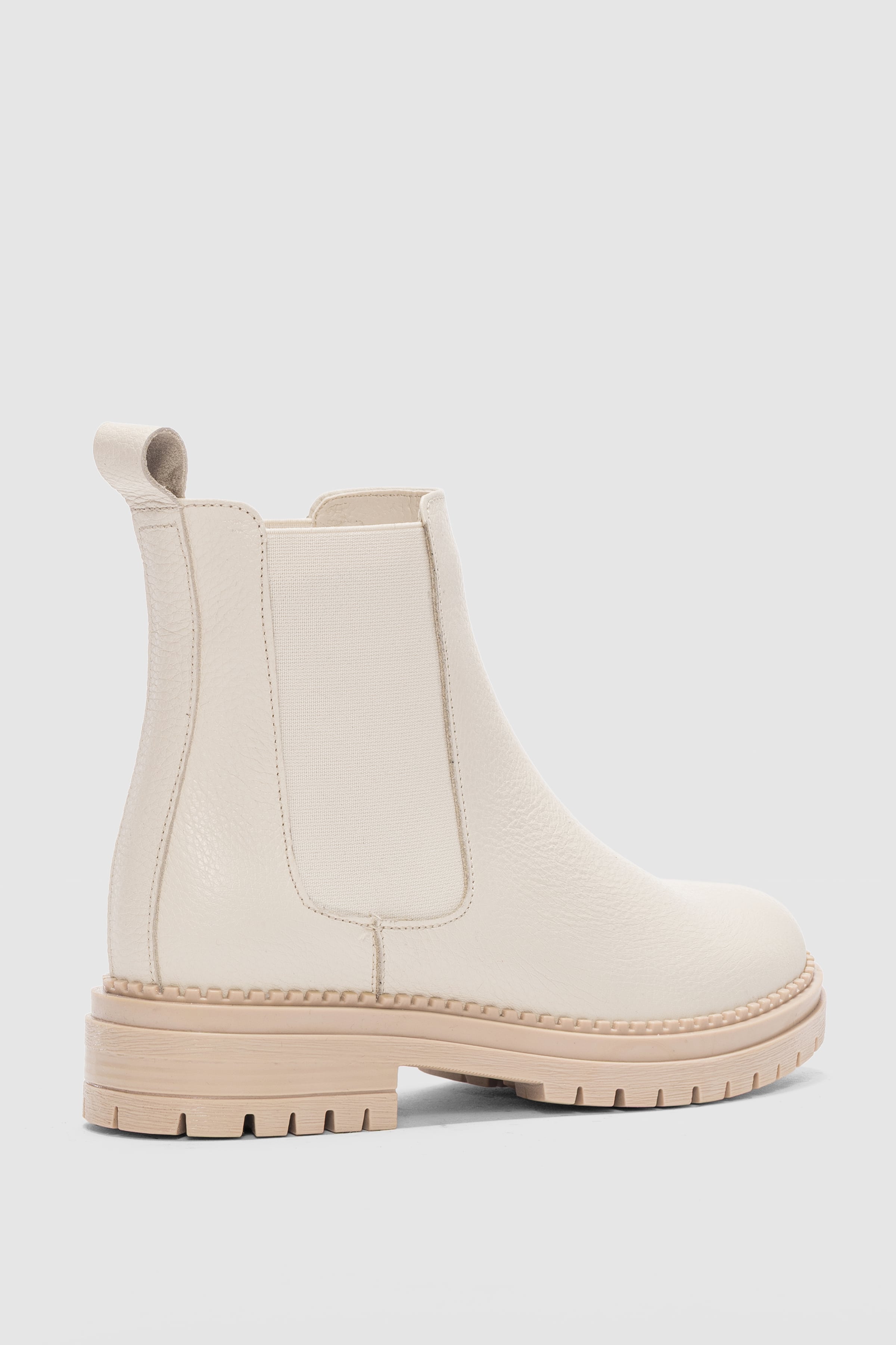 Whitney Hakiki Deri Lastikli Kadın Kısa Bot - EKRU ( Whitney )