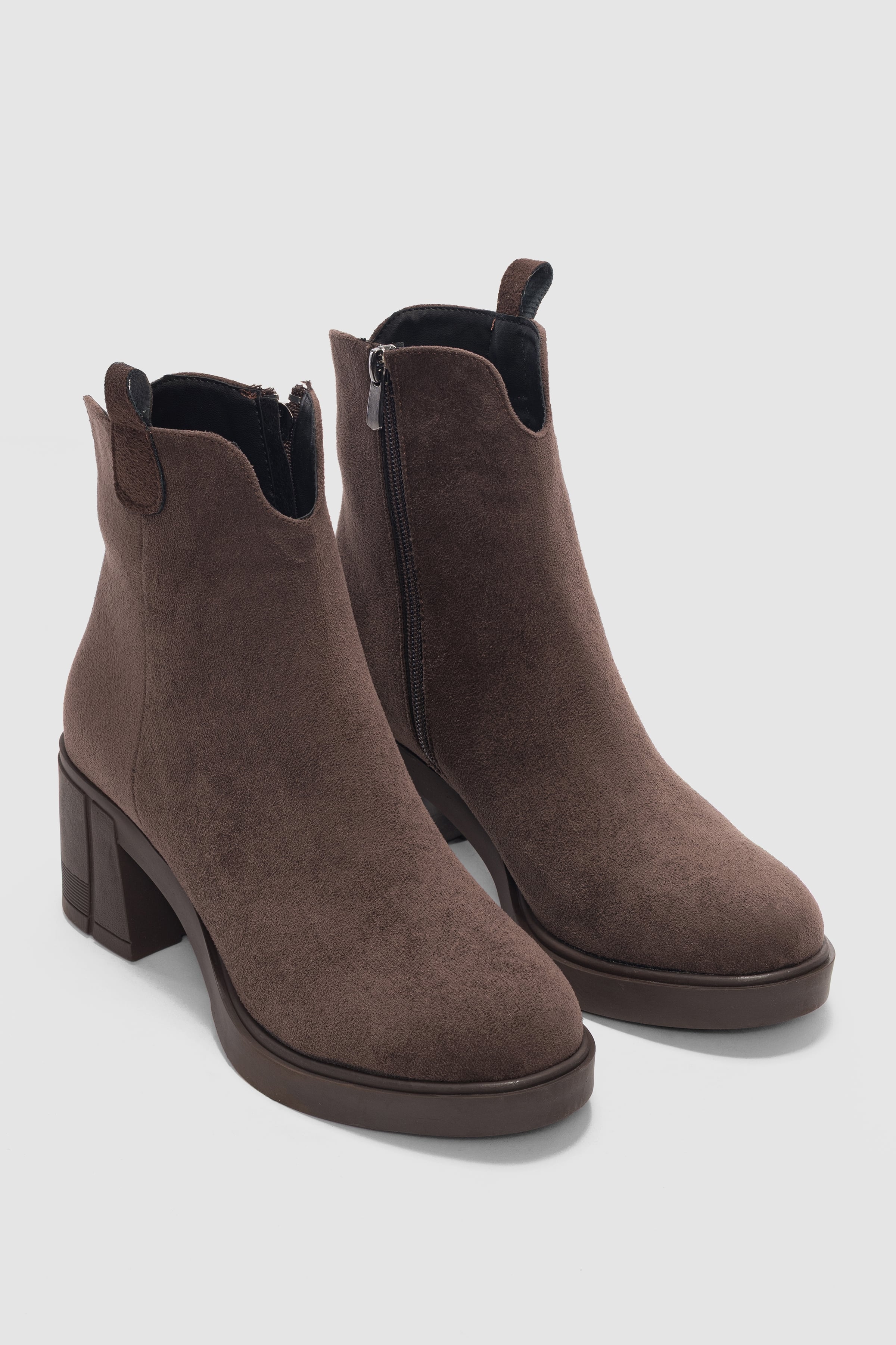 Wony Kalın Topuk Süet Kadın Bot-KAHVE SÜET ( 0367 )