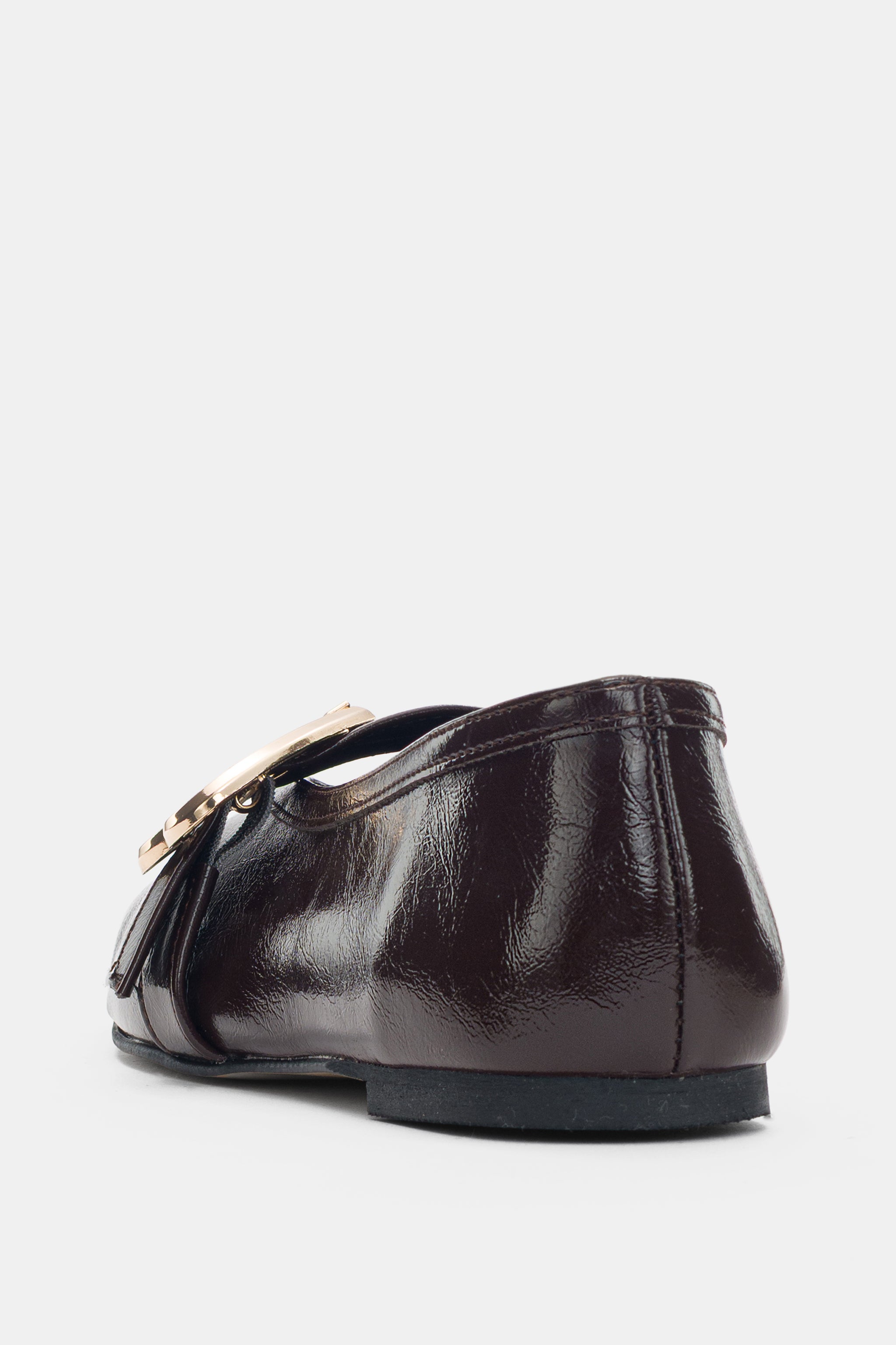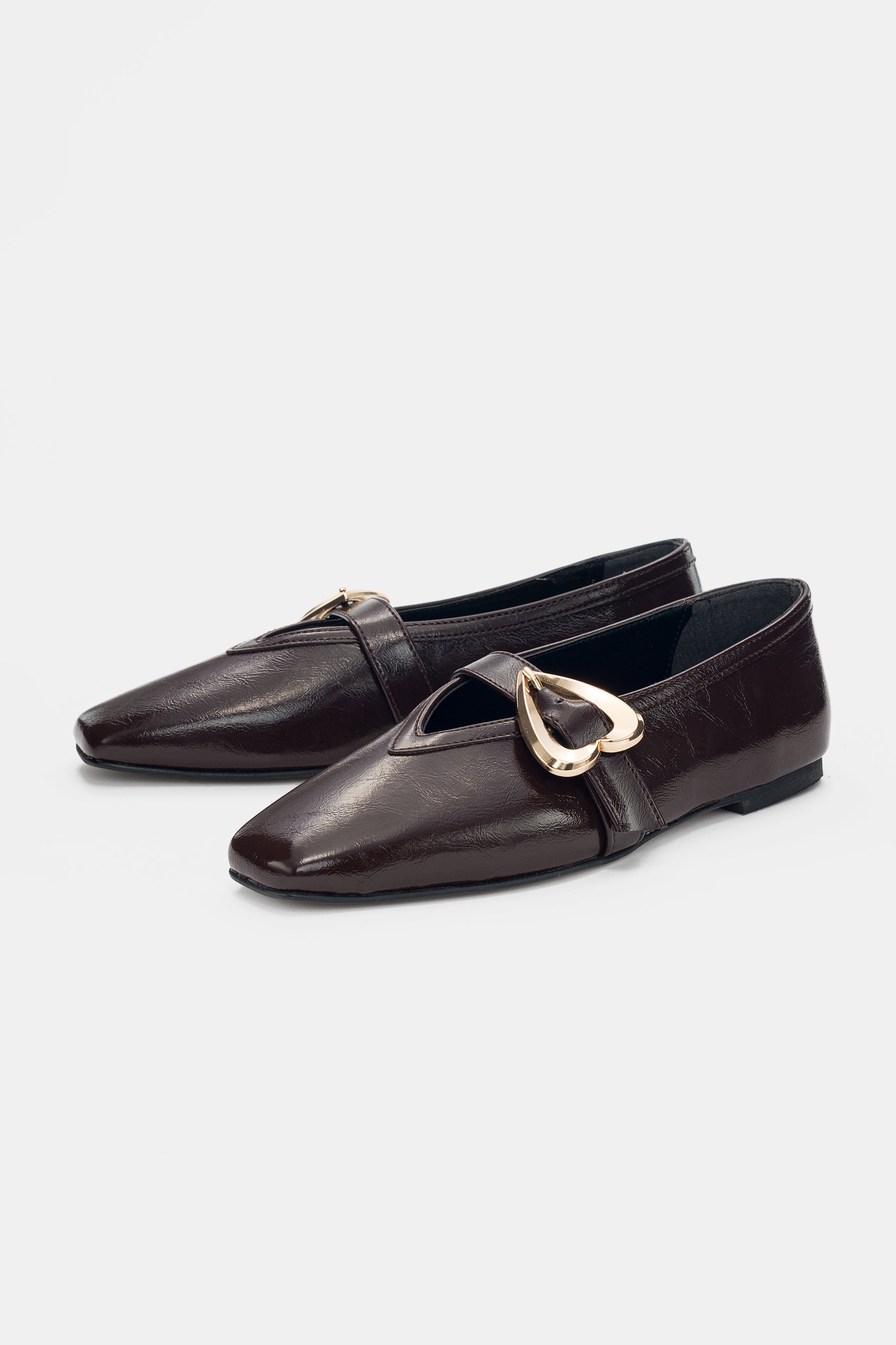 Ambrin Gold Kalp Toka Detaylı Küt Burun Kadın Babet- KAHVERENGİ ( 0460 )