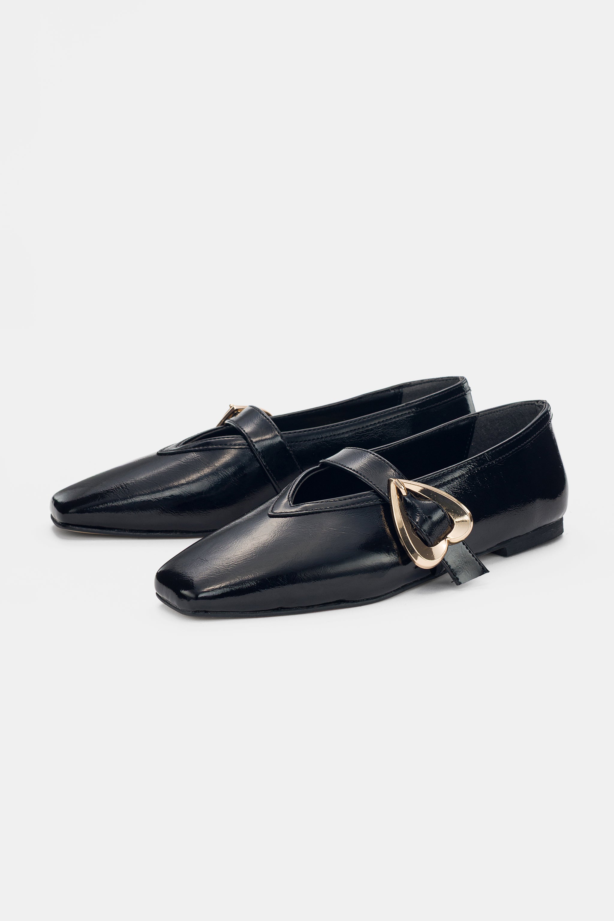 Ambrin Gold Kalp Toka Detaylı Küt Burun Kadın Babet- SİYAH ( 0460 )