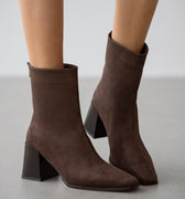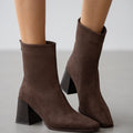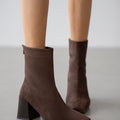 Bravine Arkadan Fermuarlı Küt Burun Kadın Bot- KAHVE SÜET