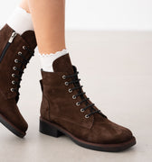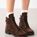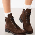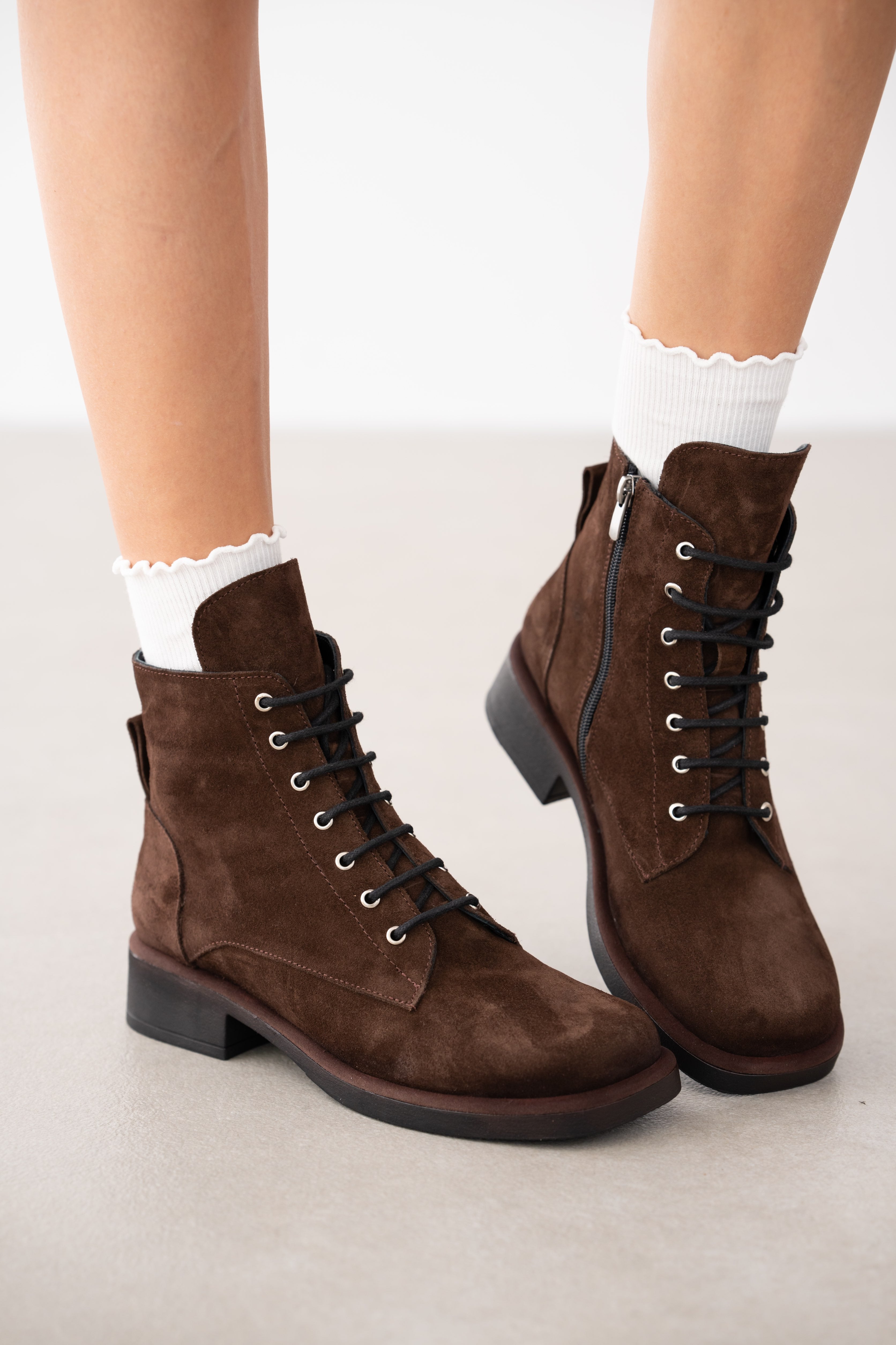 Sivora Hakiki Deri Bağcıklı ve Yandan Fermuarlı Küt Burun Kadın Bot
