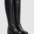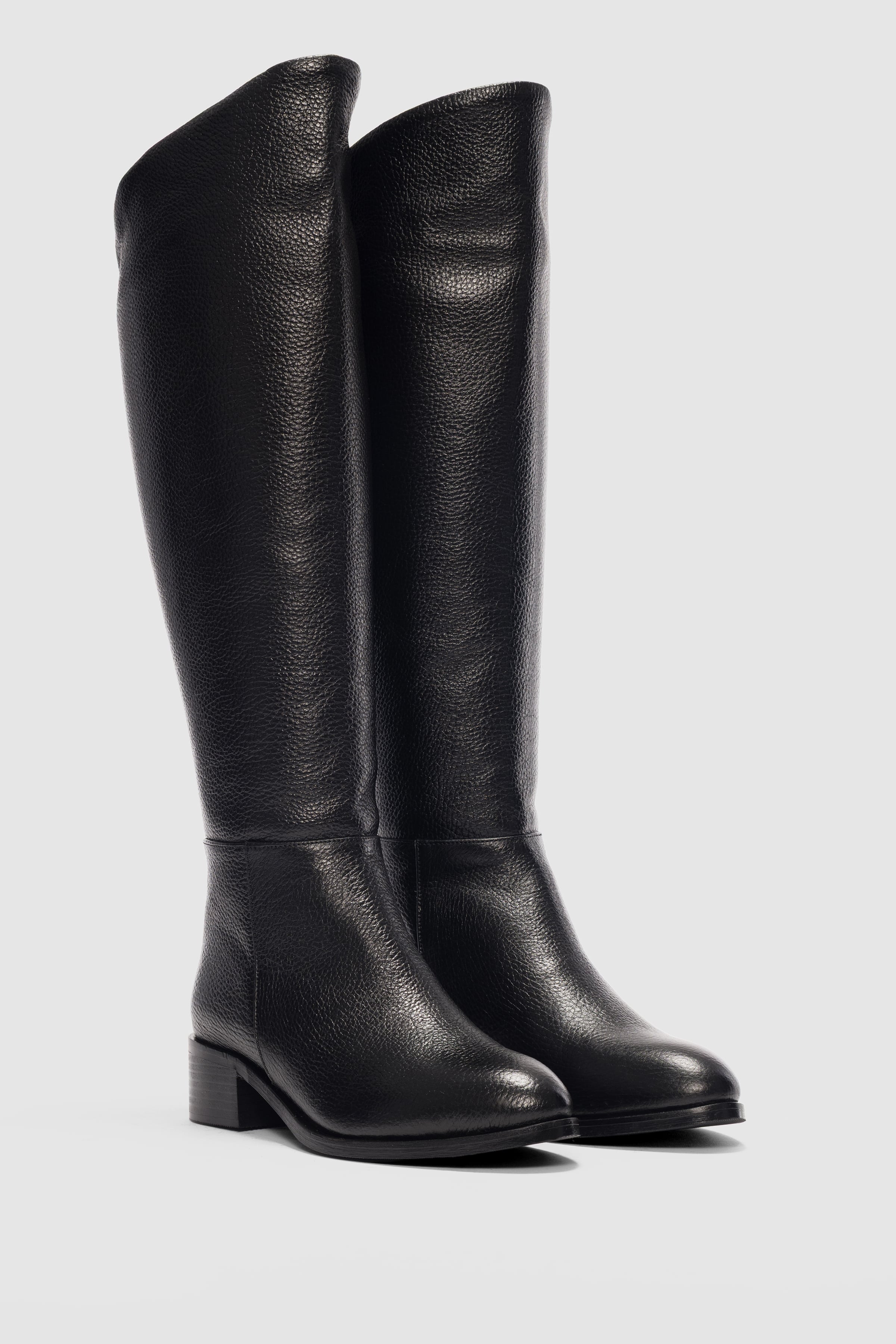 Talisman Gerçek Deri Kısa Topuk Fermuar Detaylı Uzun Kadın Çizme- SİYAH