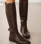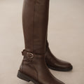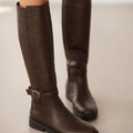 Zevon Hakiki Deri Yandan Fermuarlı Bilekten Ayarlanabilir Toka Detaylı Kadın Çizme- KAHVERENGİ