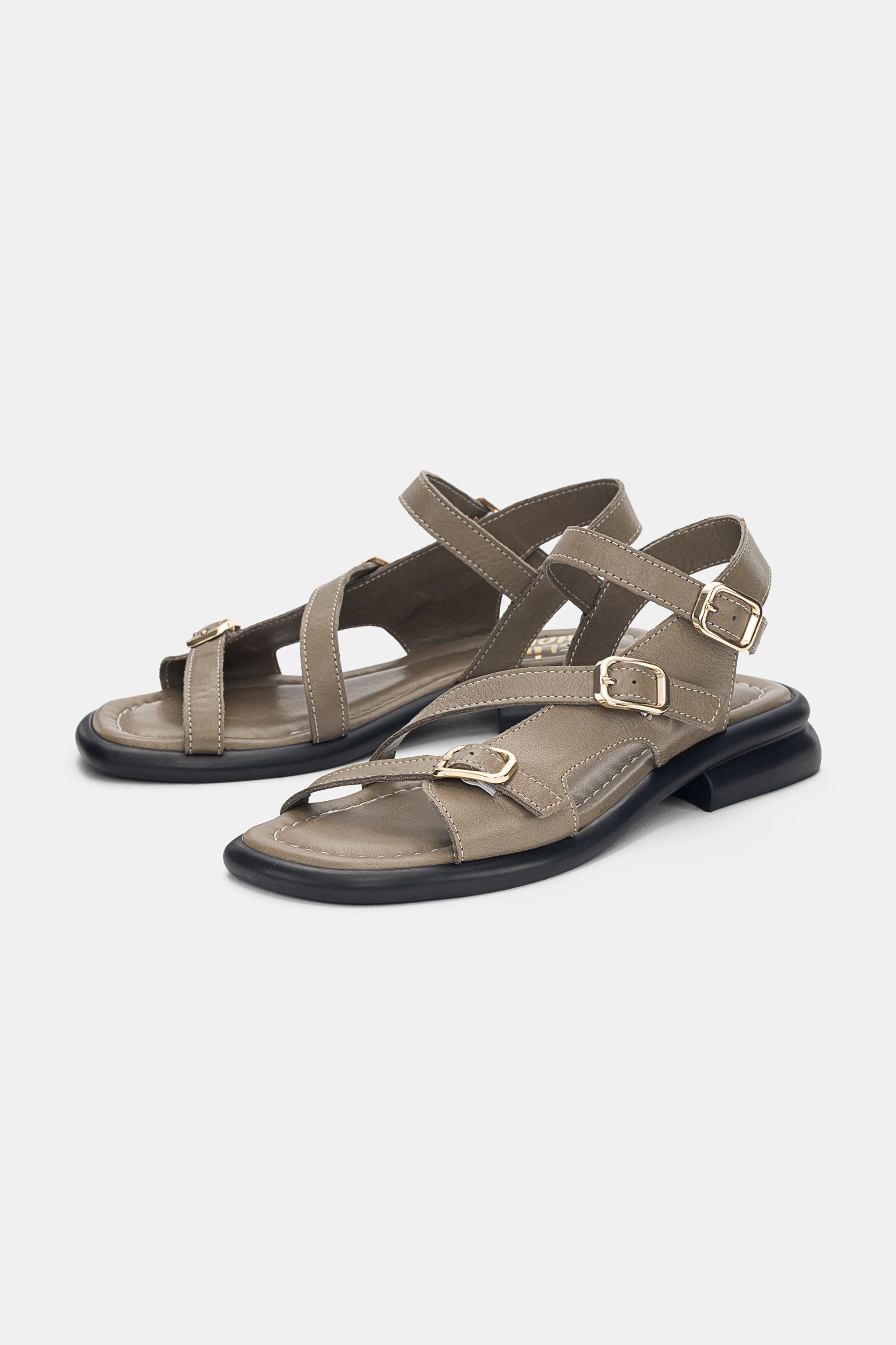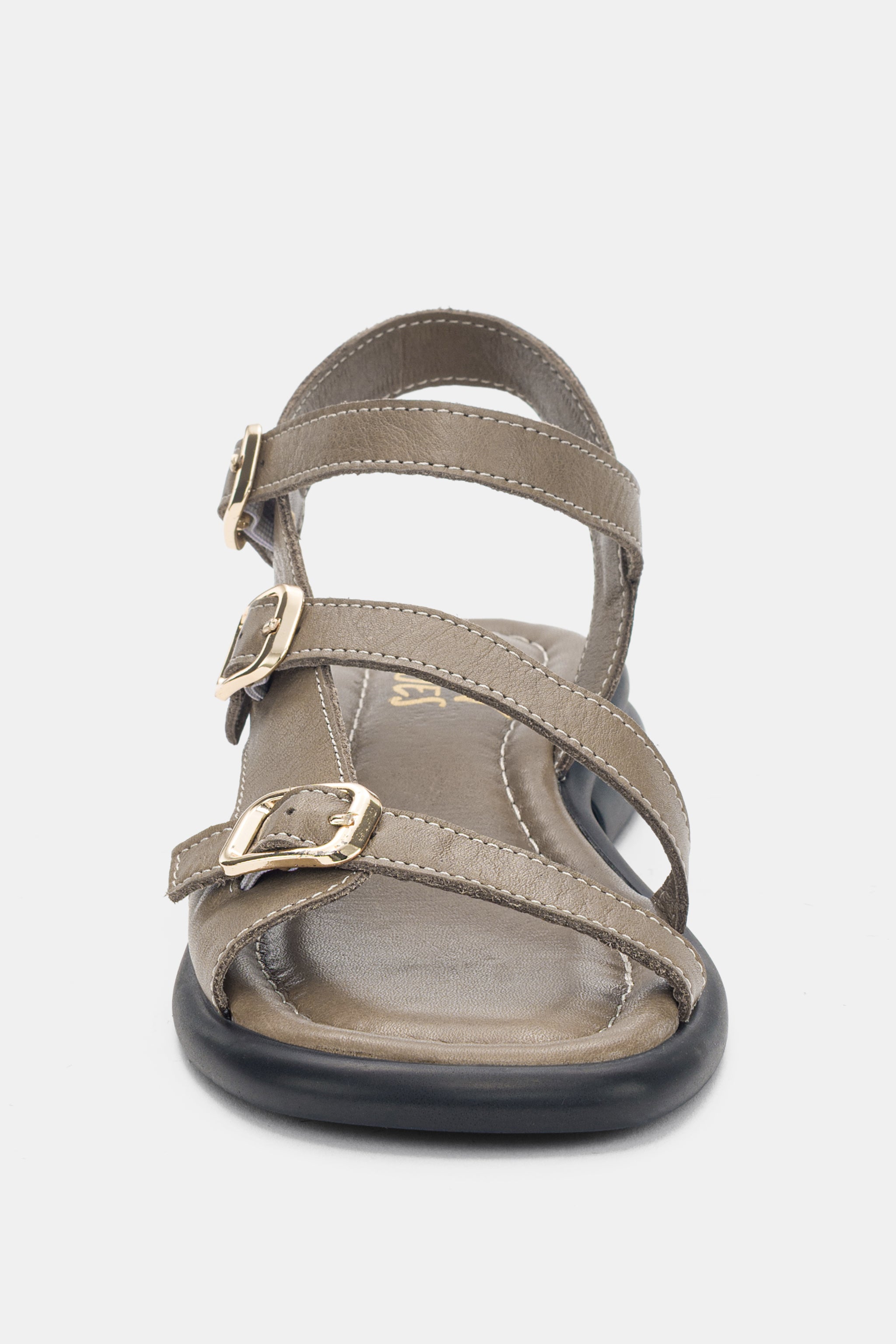 Bloss 3'lü Lastik Toka Detaylı Hakiki Deri Kadın Sandalet- HAKİ ( 0281 )