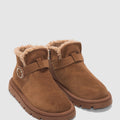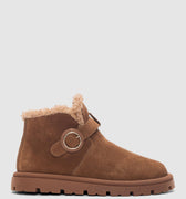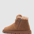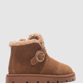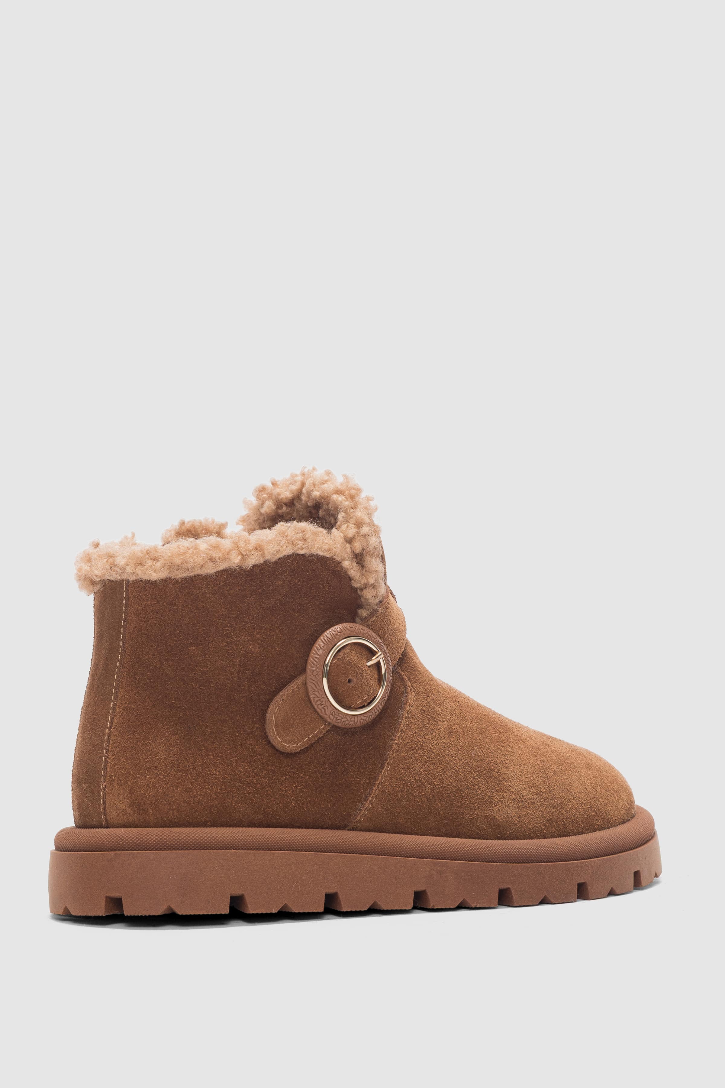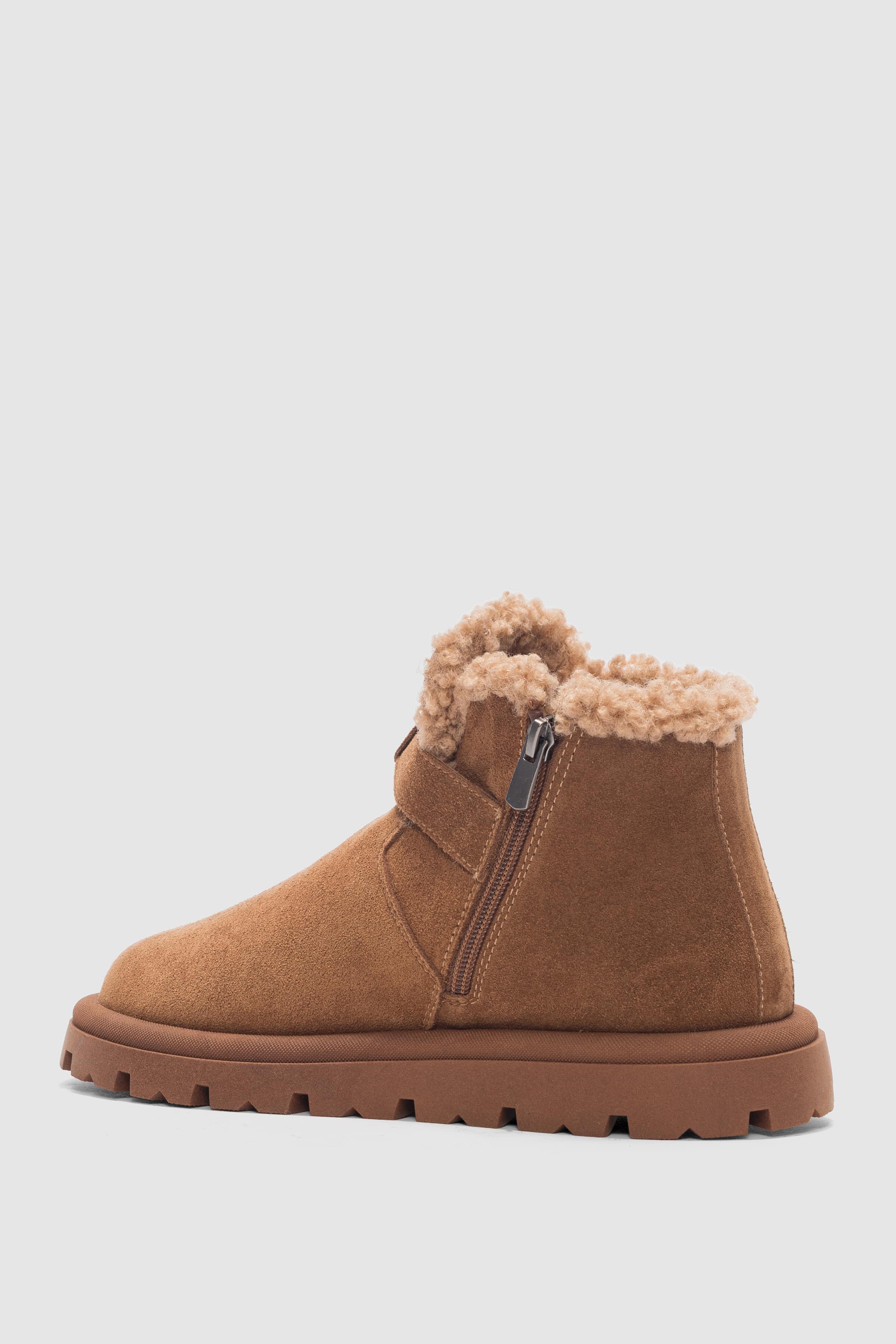 Luva Hakiki Deri Ayarlanabilir Toka Detaylı Yandan Fermuarlı Kadın Bot- TABA SÜET