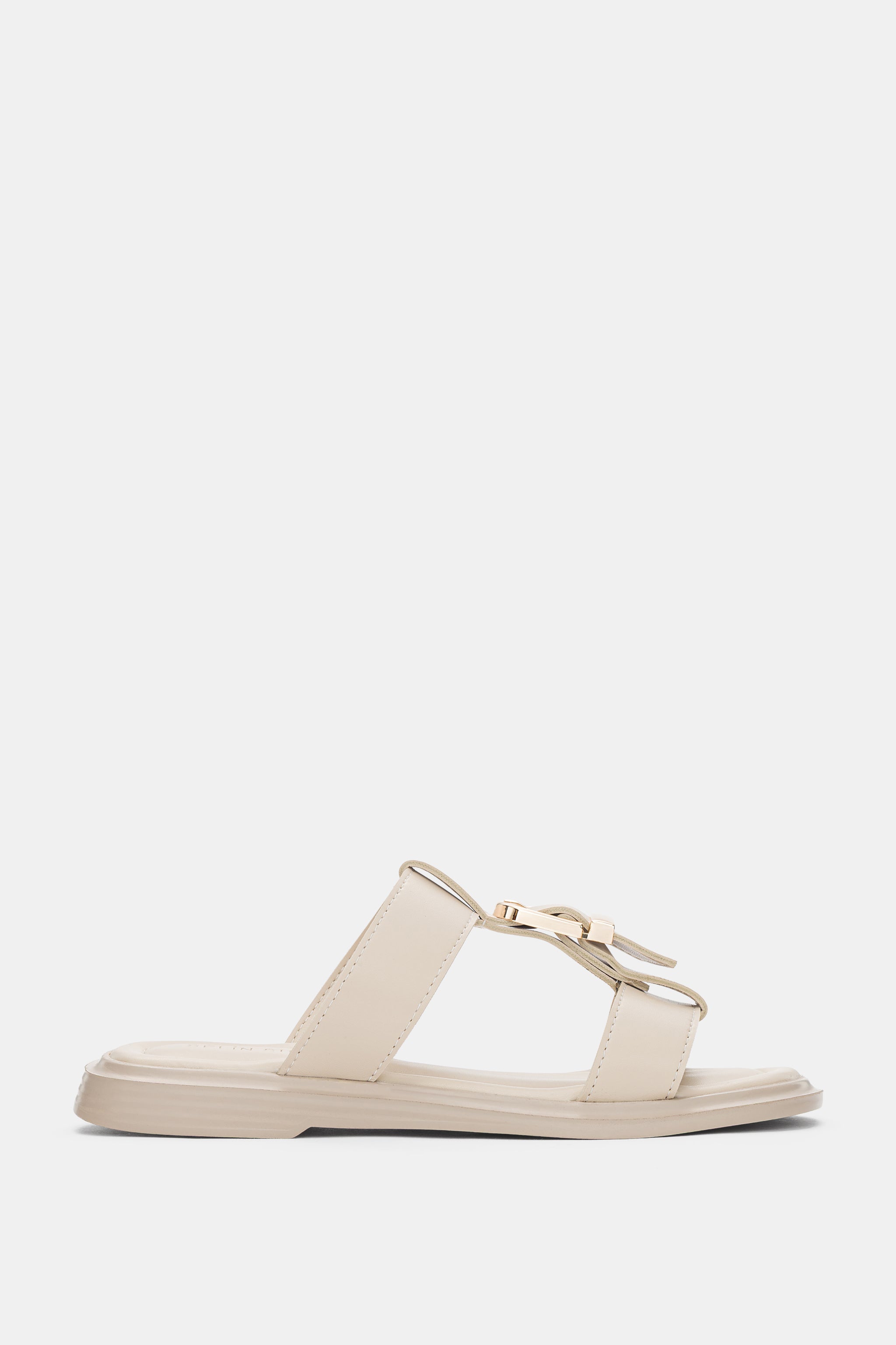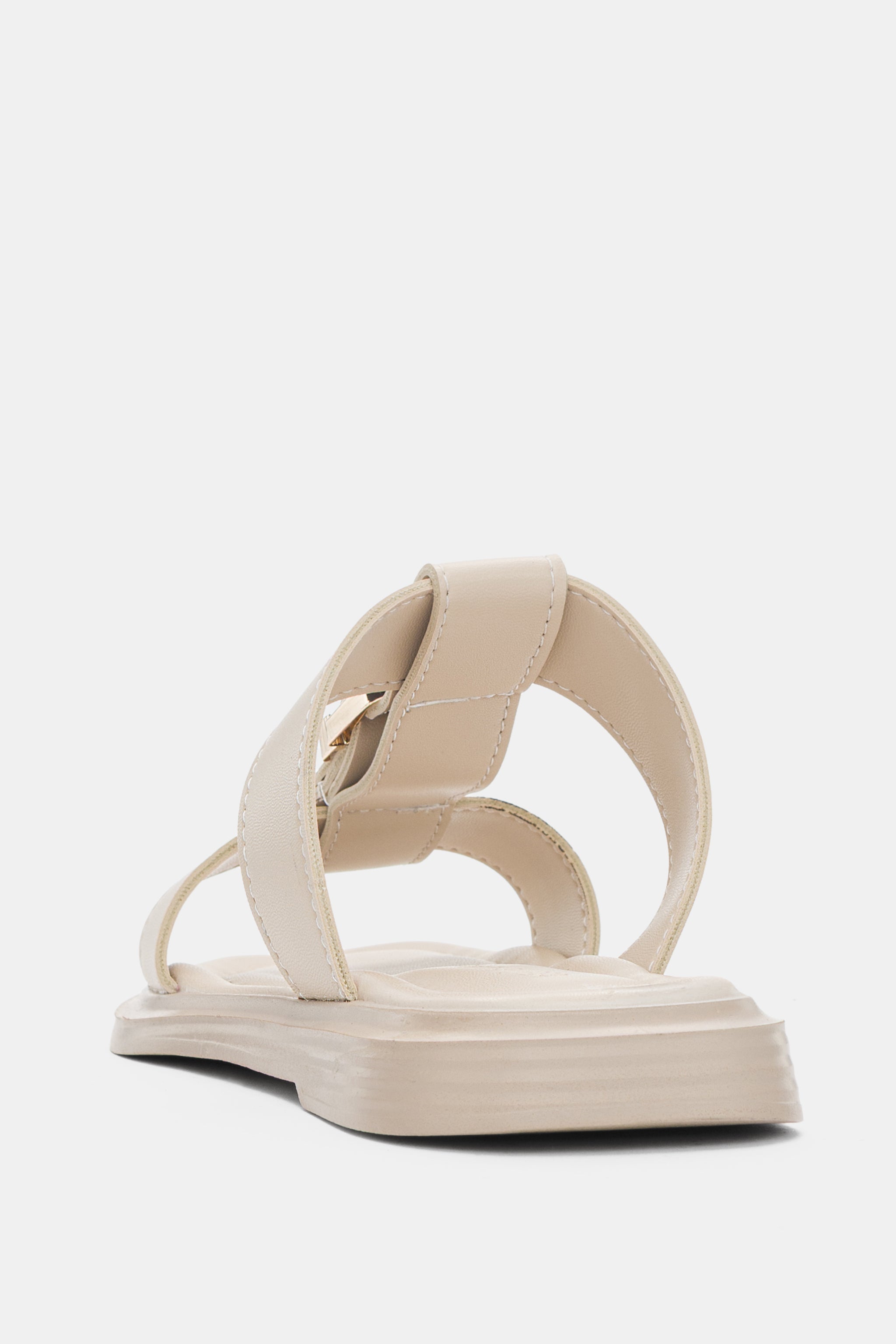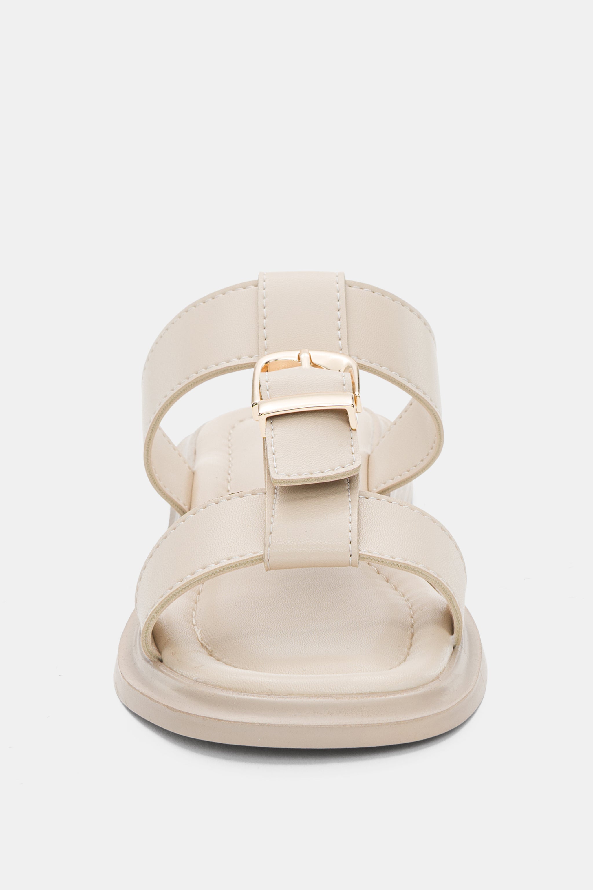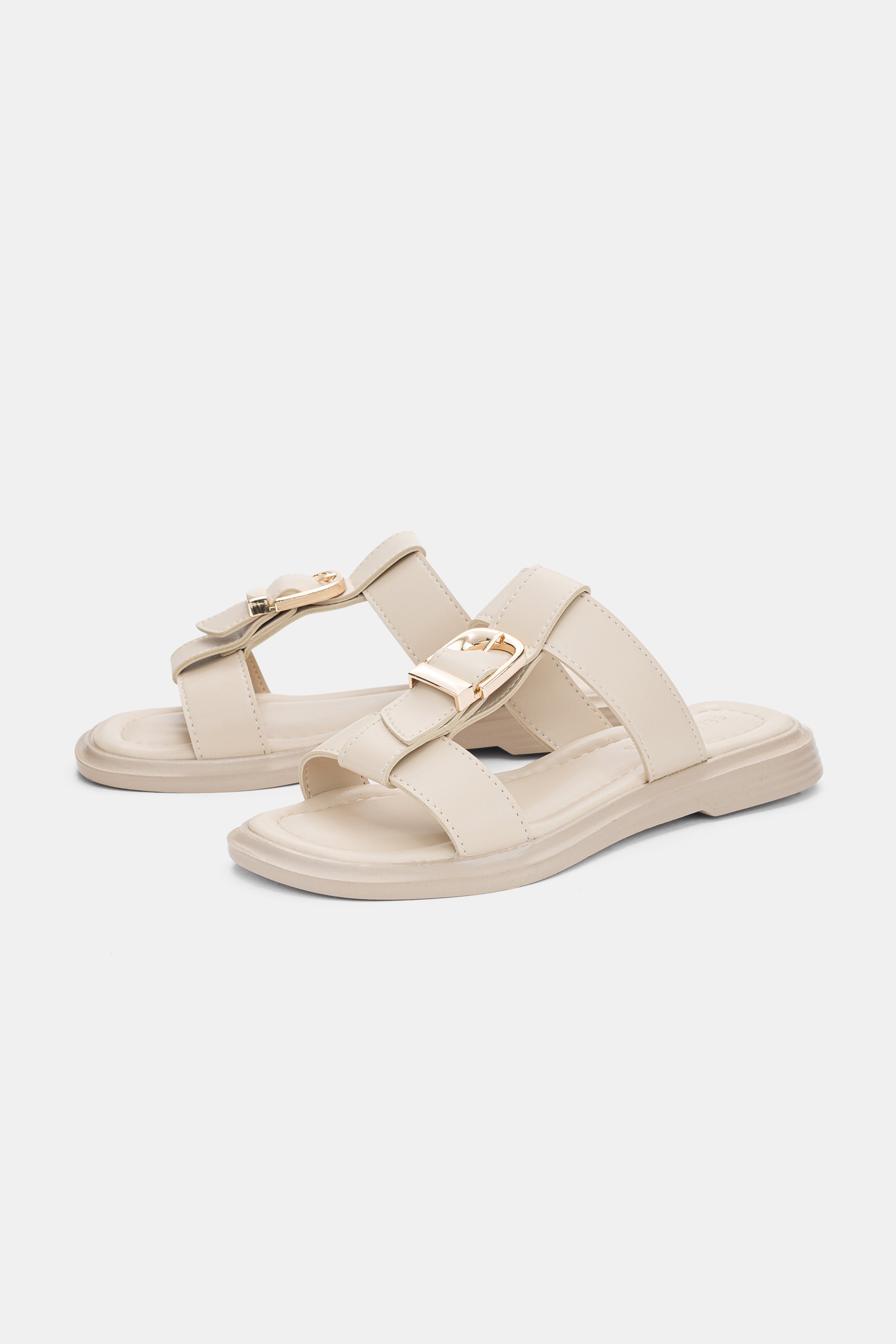 Celvain Ayarlanabilir Gold Toka Detaylı Çift Bant Kadın Sandalet- EKRU ( 0484 )