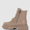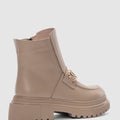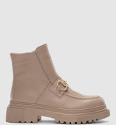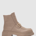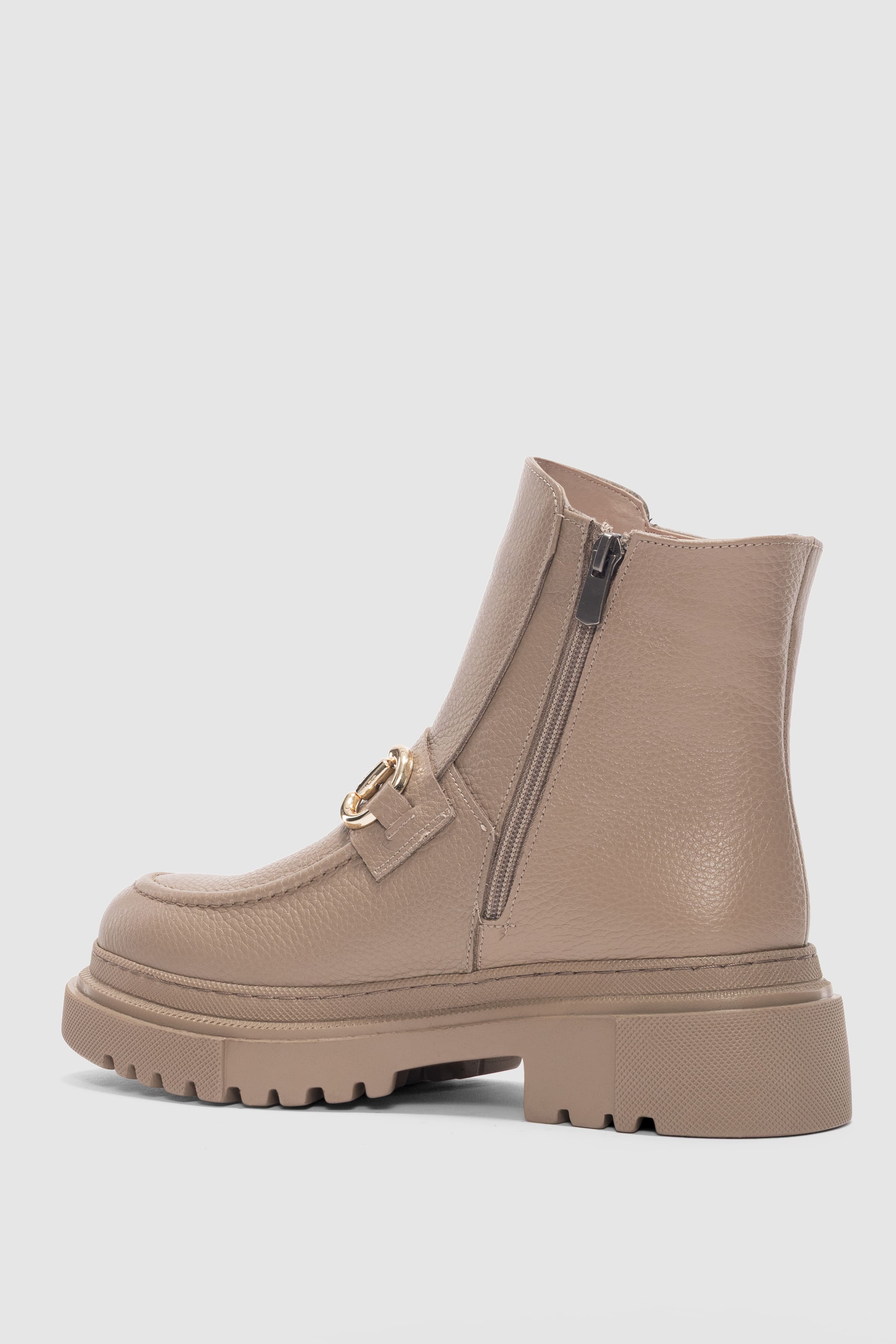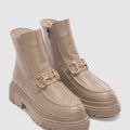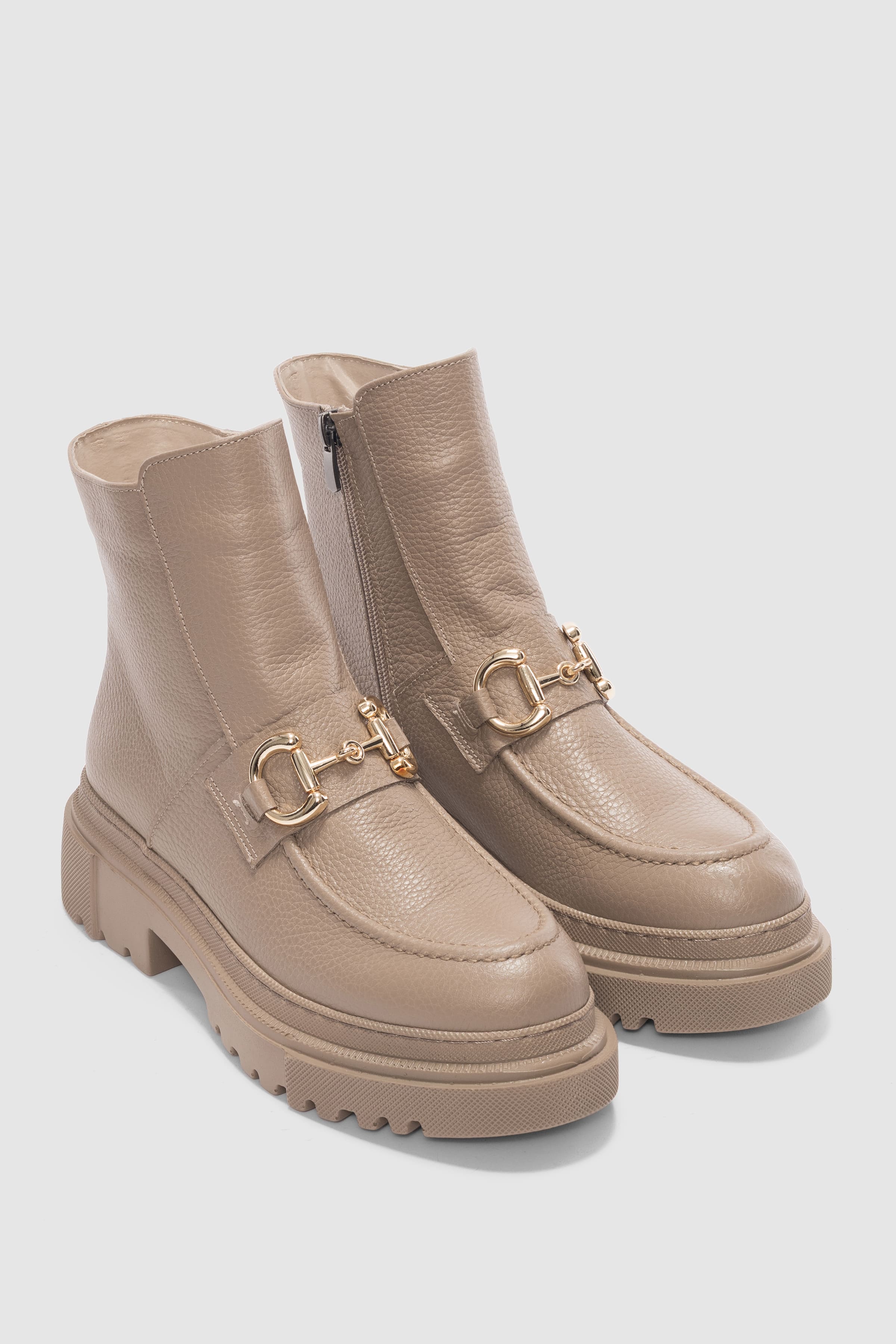 Melodi Hakiki Deri Önden Toka Detaylı Fermuarlı Bot- BEJ DERİ
