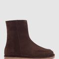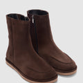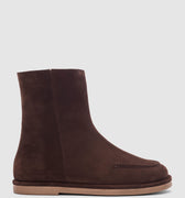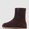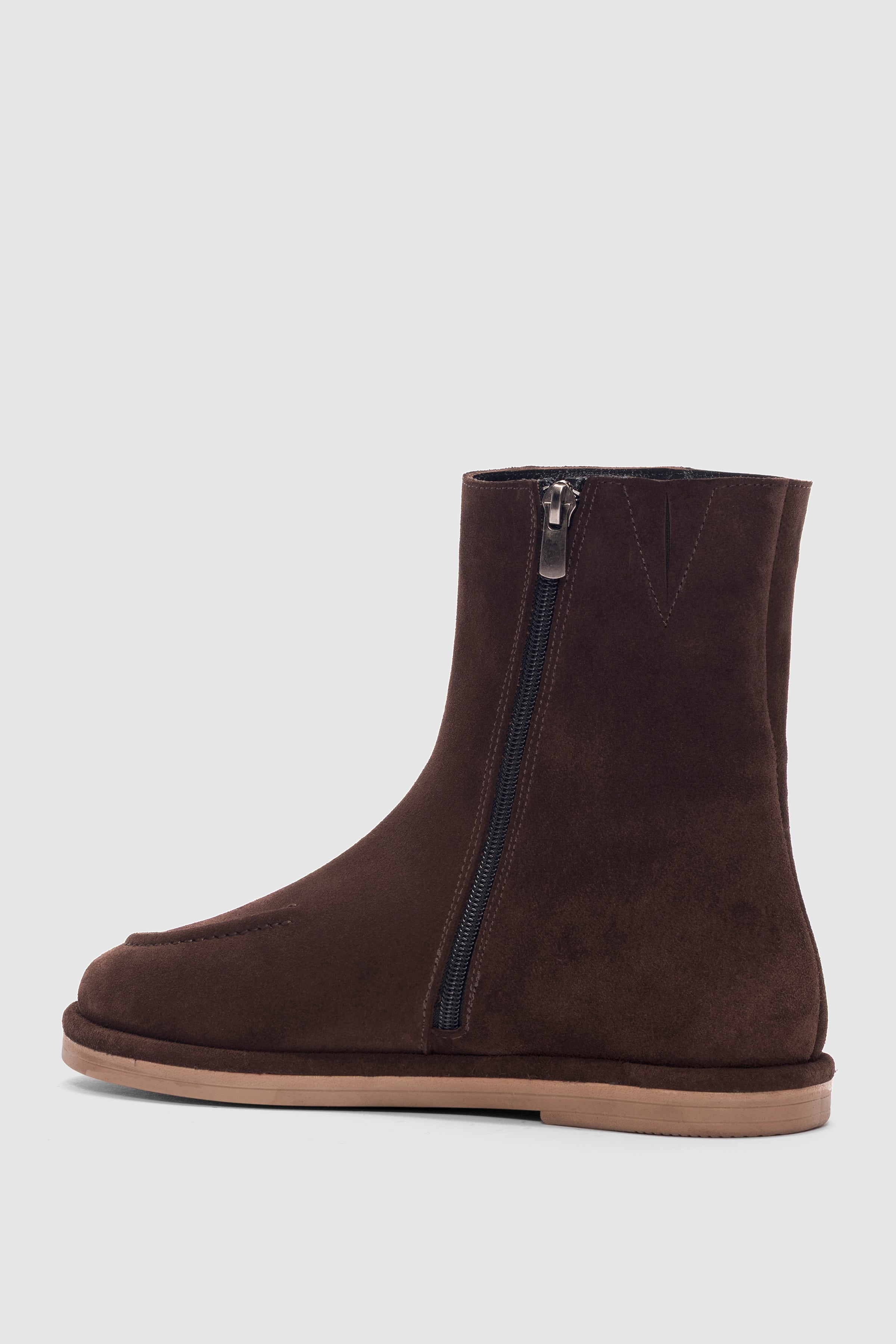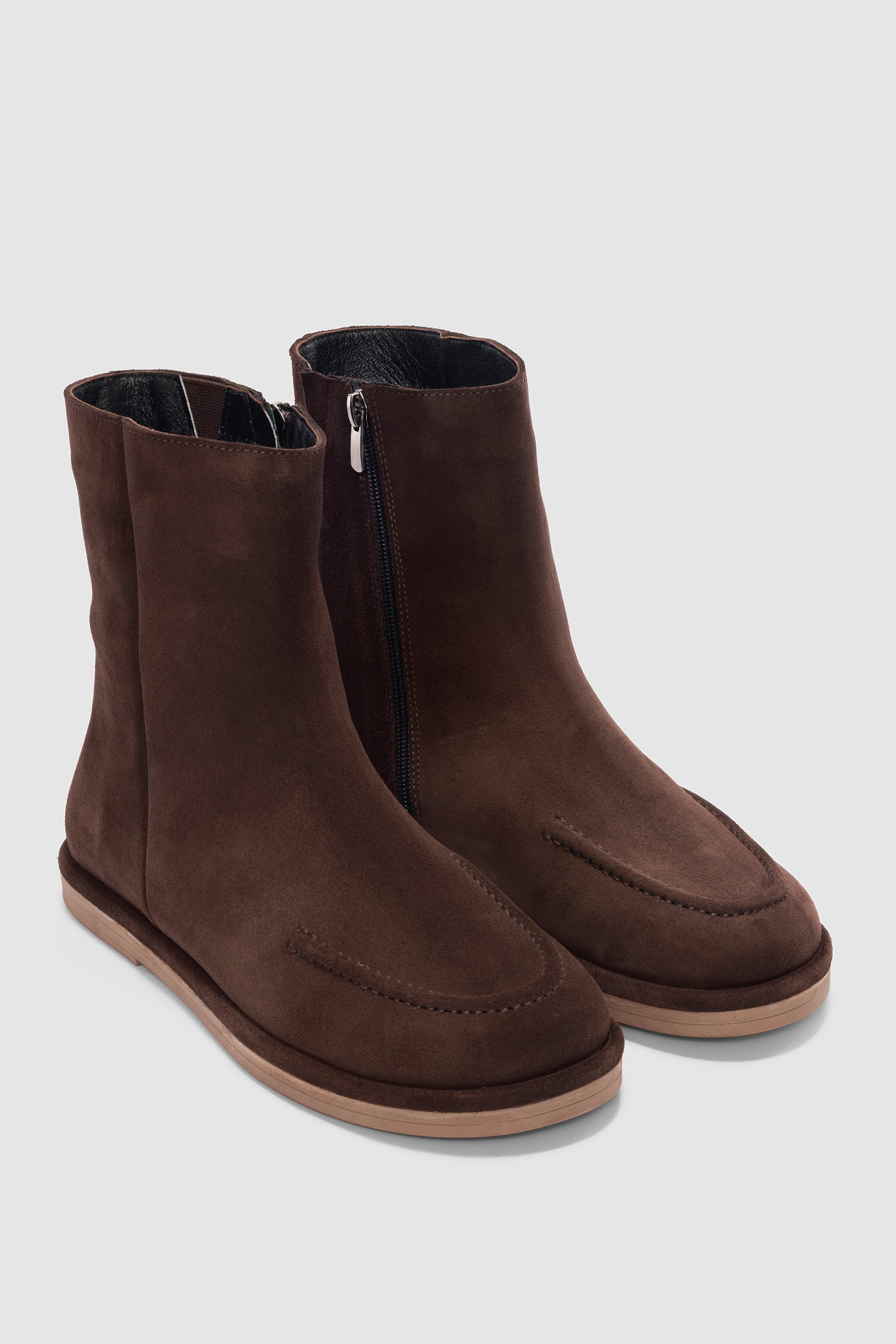 Aure Ön Oval Çizgi Detaylı Fermuarlı Kadın Bot-KAHVERENGİ SÜET