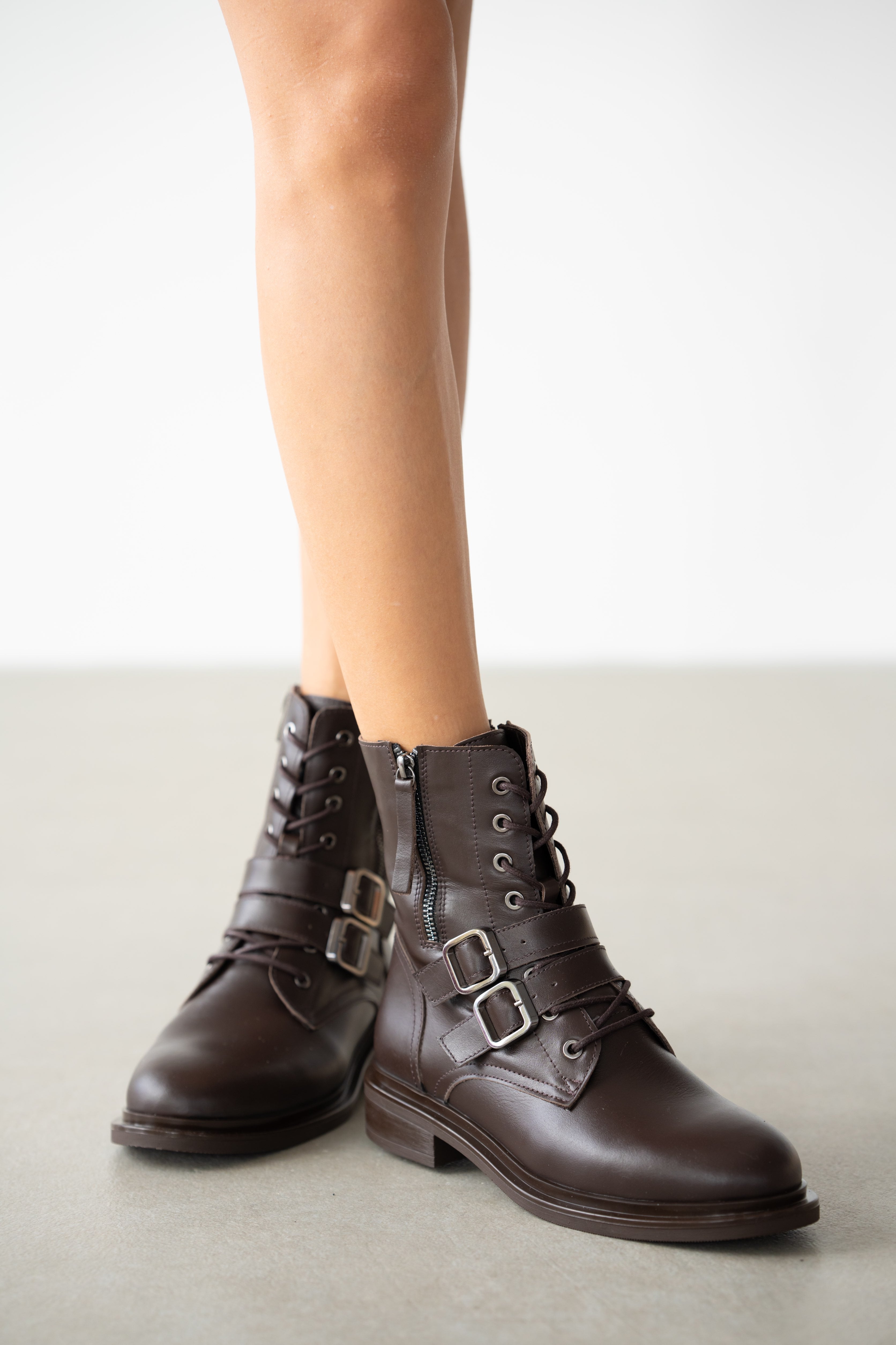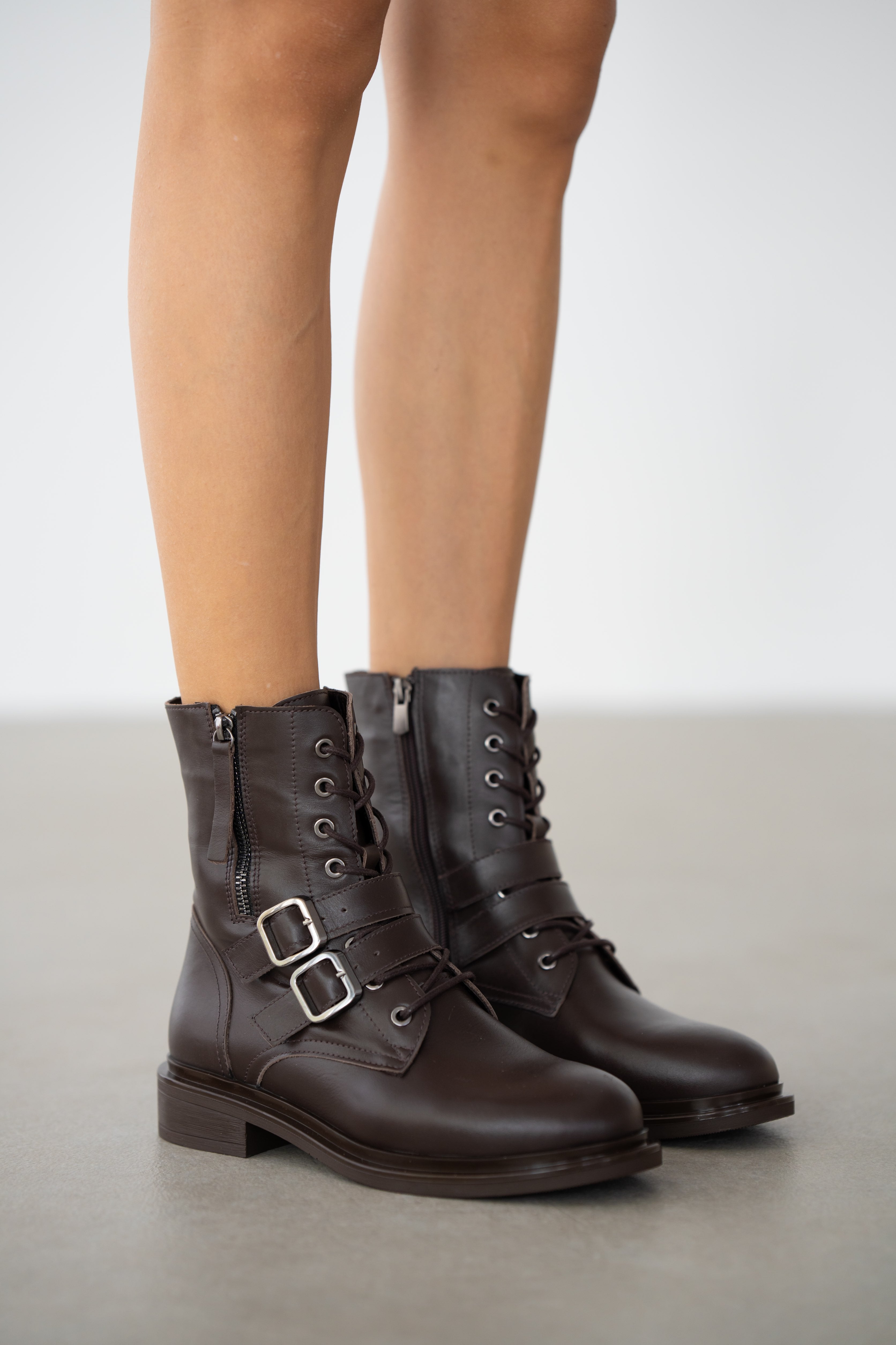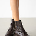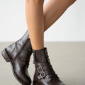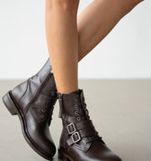 Davine Hakiki Deri Bağcık ve Toka Detaylı Yandan Fermuarlı Kadın Bot