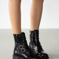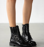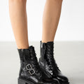 Davine Hakiki Deri Bağcık ve Toka Detaylı Yandan Fermuarlı Kadın Bot