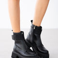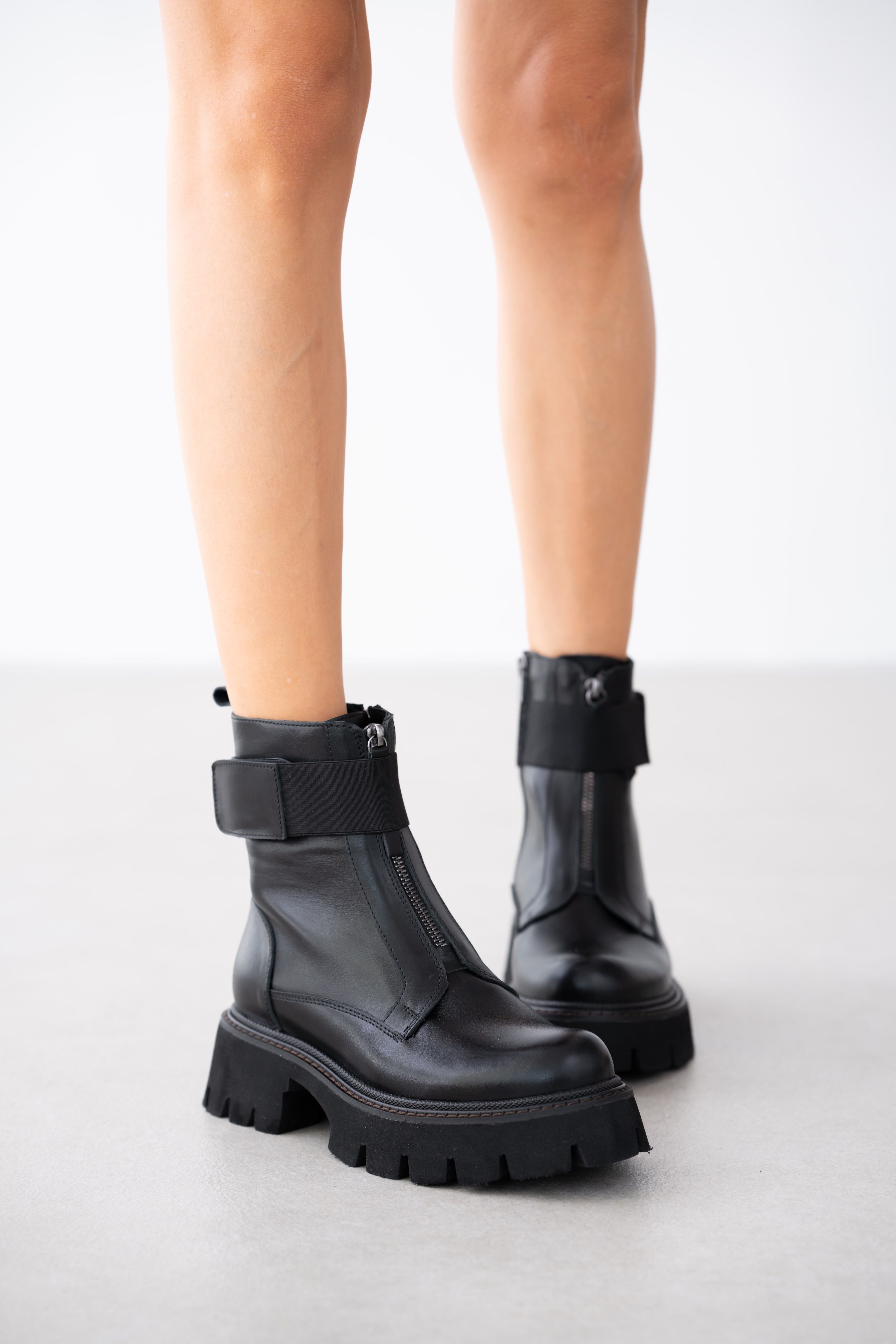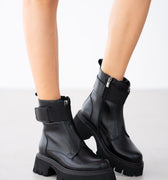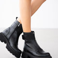 Dorelle Hakiki Deri Cırt Detaylı Çift Fermuarlı Kadın Bot- SİYAH