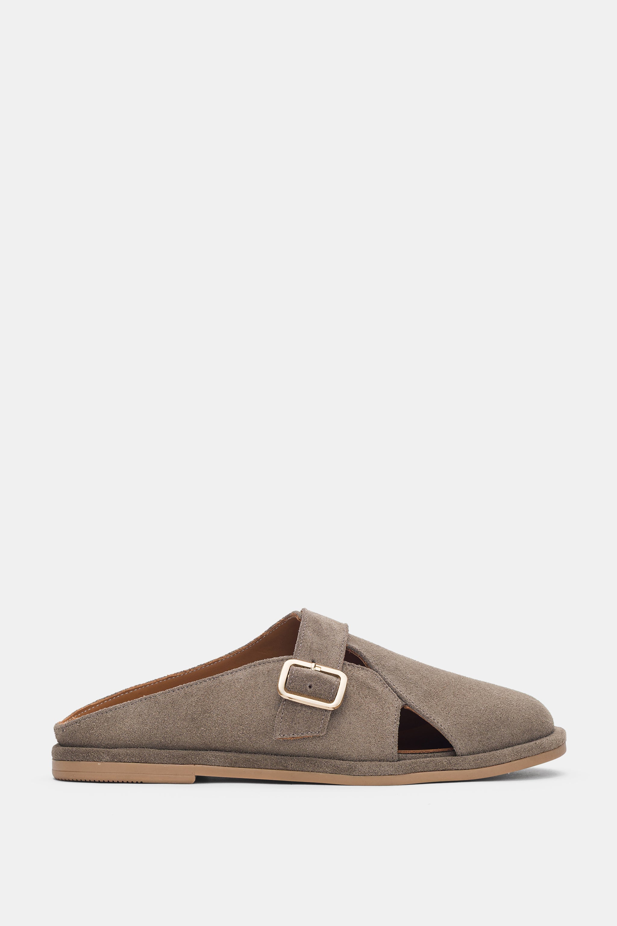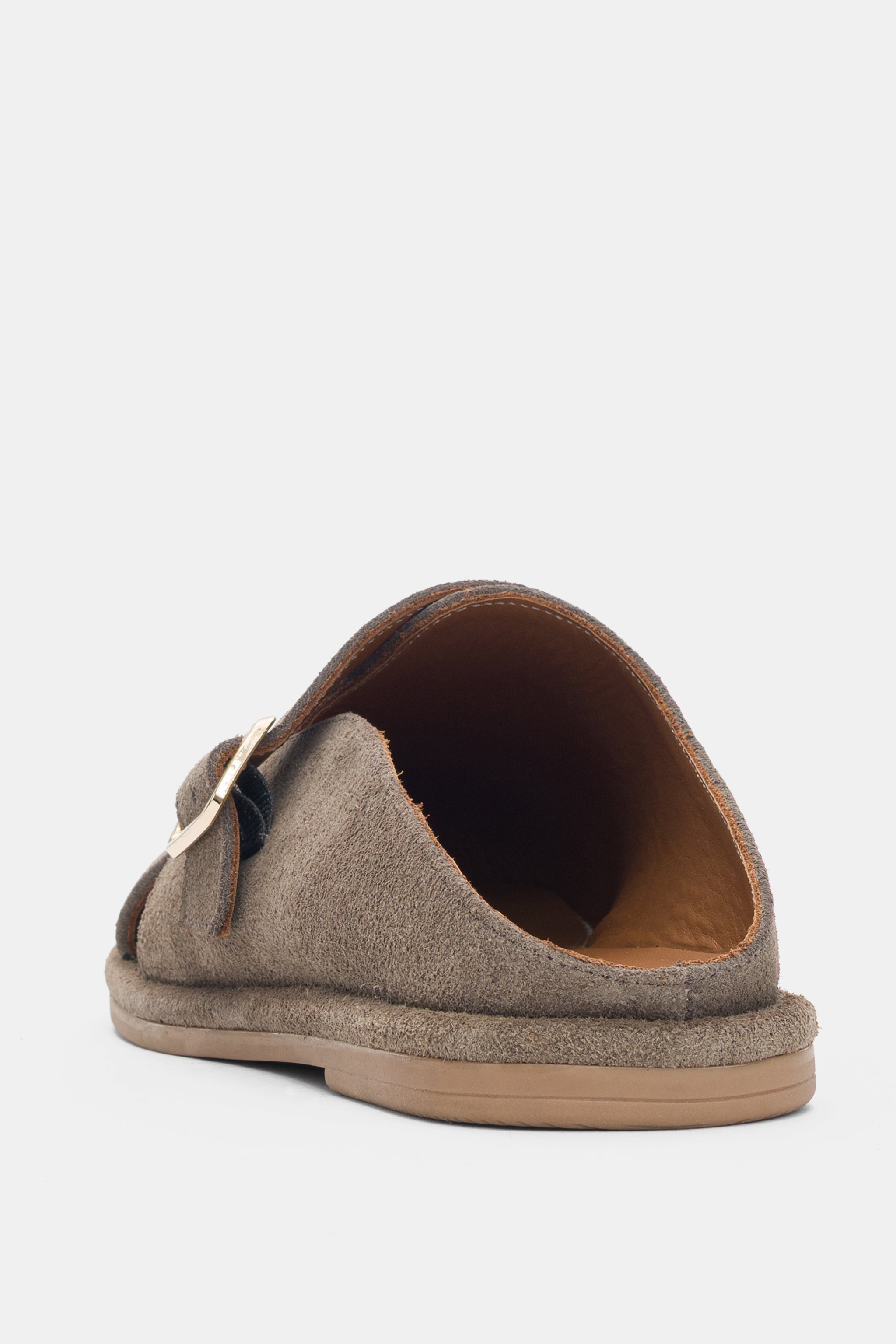 Liorix Hakiki Deri Asimetrik Kesim Gold Ayarlanabilir Toka Detaylı Kadın Terlik- VİZON SÜET ( 0465 )