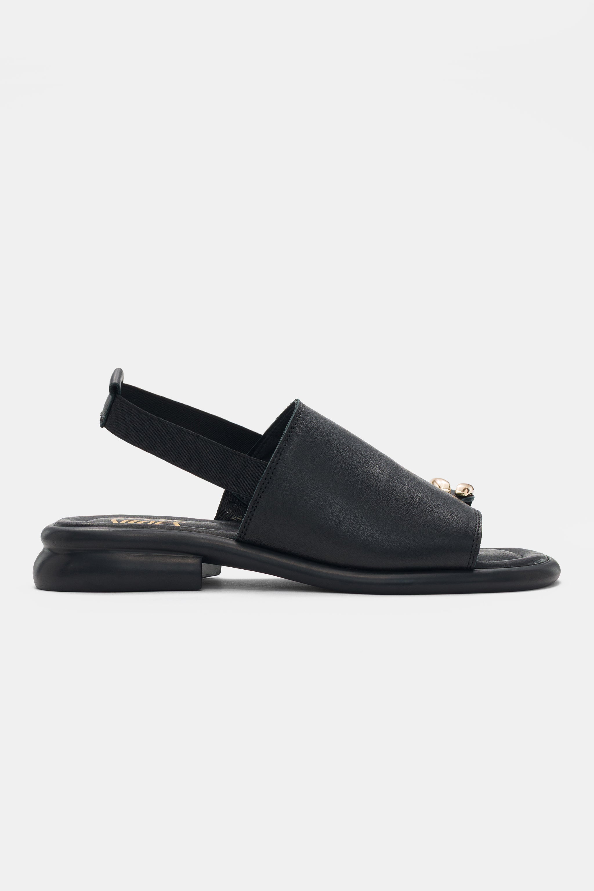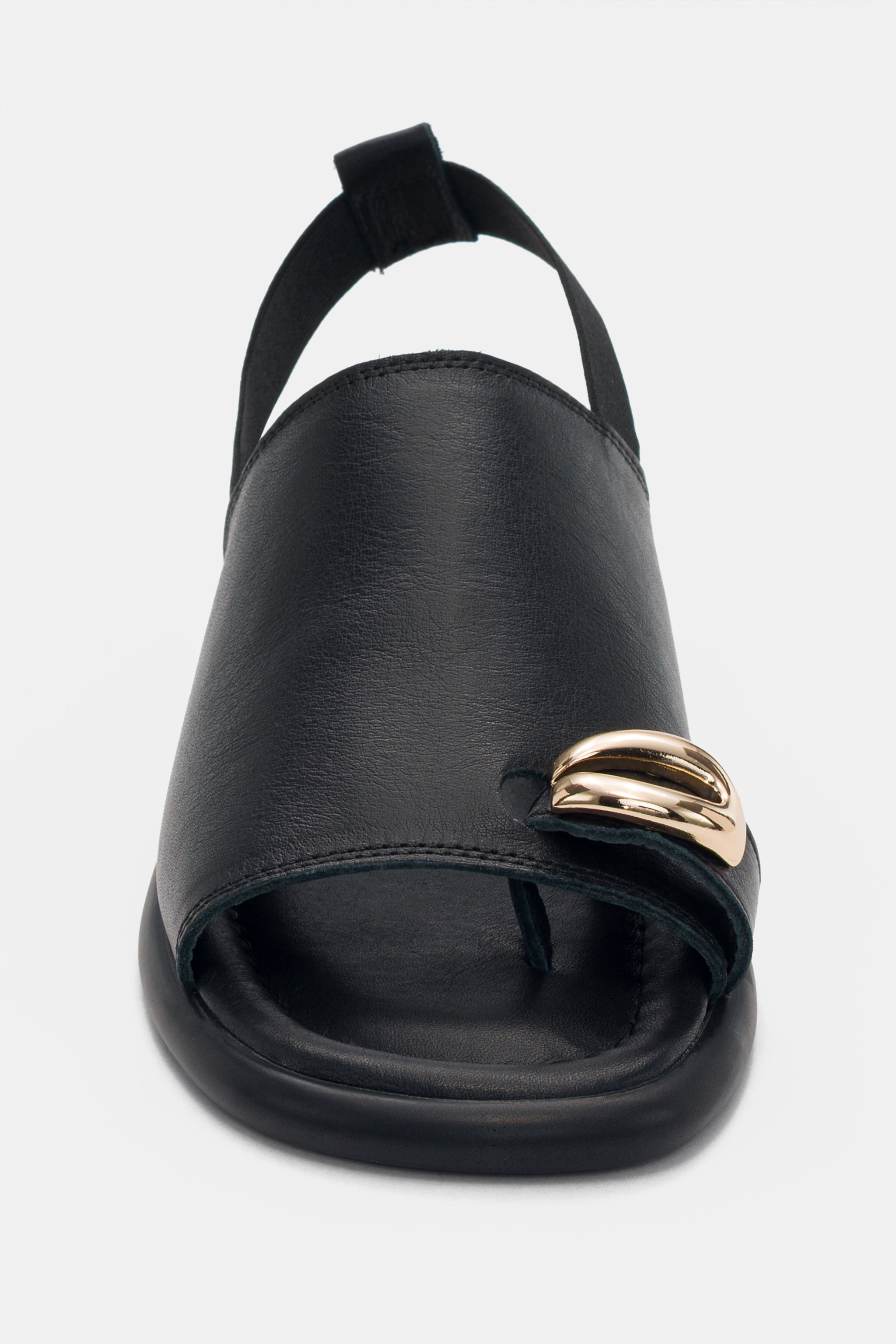 Savelle Hakiki Deri Arkadan Lastik Detaylı Parmak Arası Kadın Sandalet- SİYAH ( 0542 )
