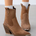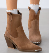 Veona Hakiki Deri Burun Kısmı Aksesuar Detaylı Sivri Burun Kadın Bot- TABA SÜET