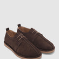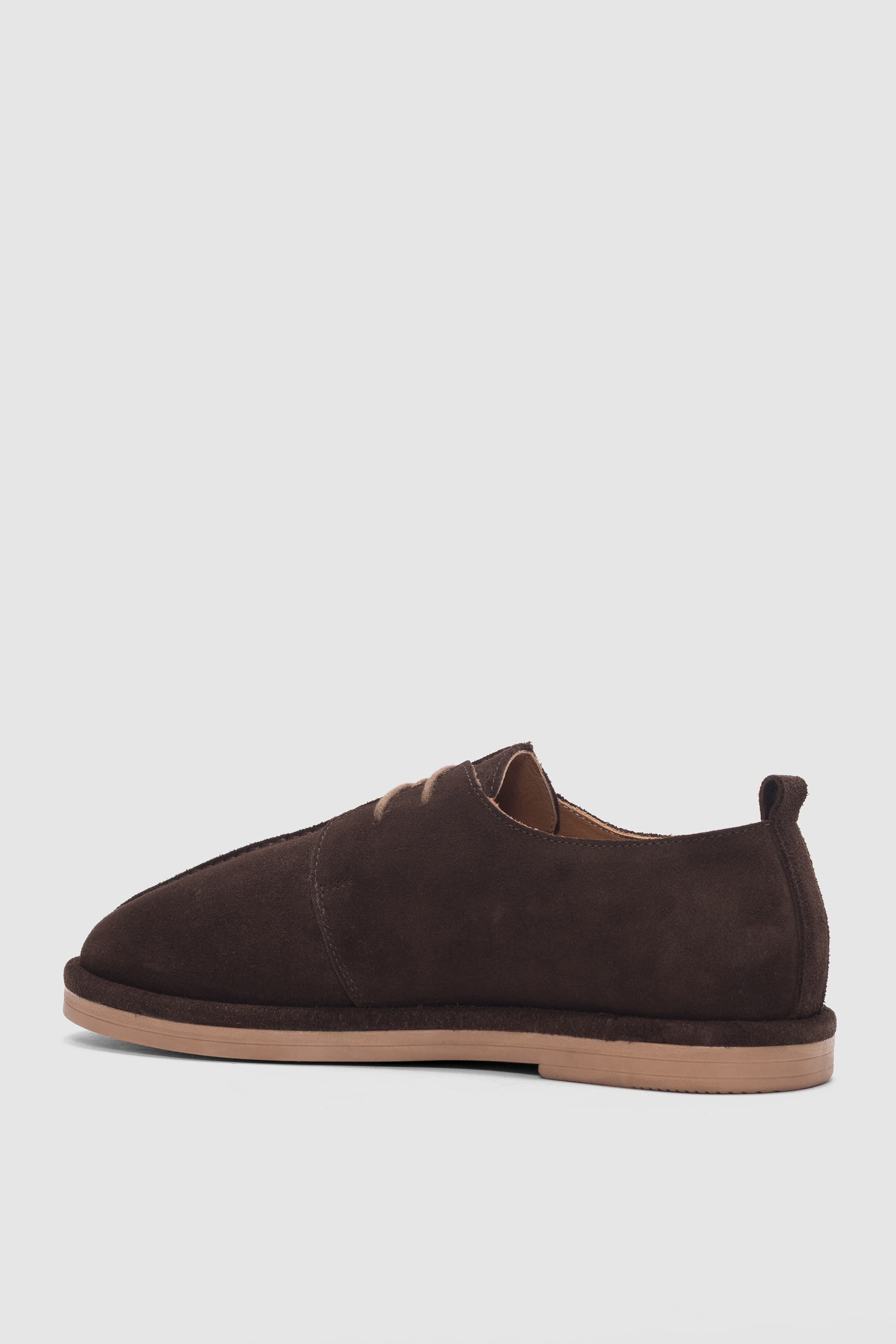Viore Hakiki Deri Ön Çizgi Detaylı Bağcıklı Kadın Ayakkabı- KAHVE SÜET